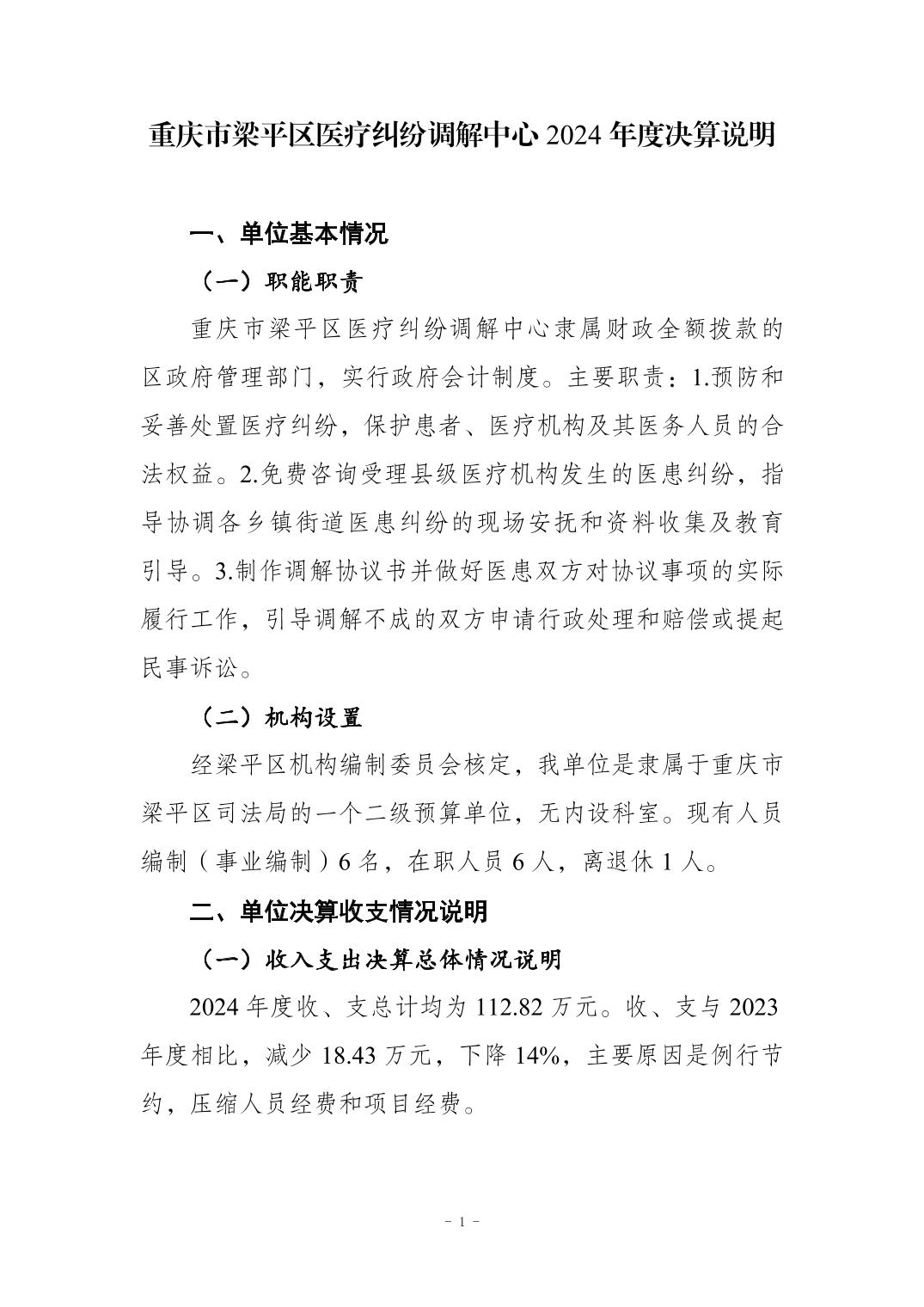 标题 | 重庆市梁平区医疗纠纷调解中心2024年度决算公开 |