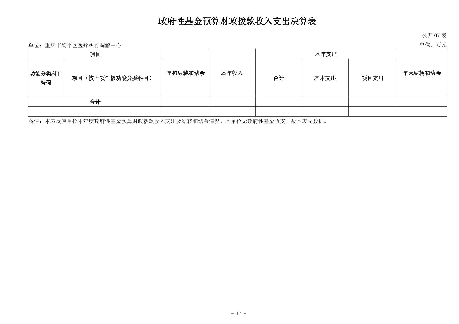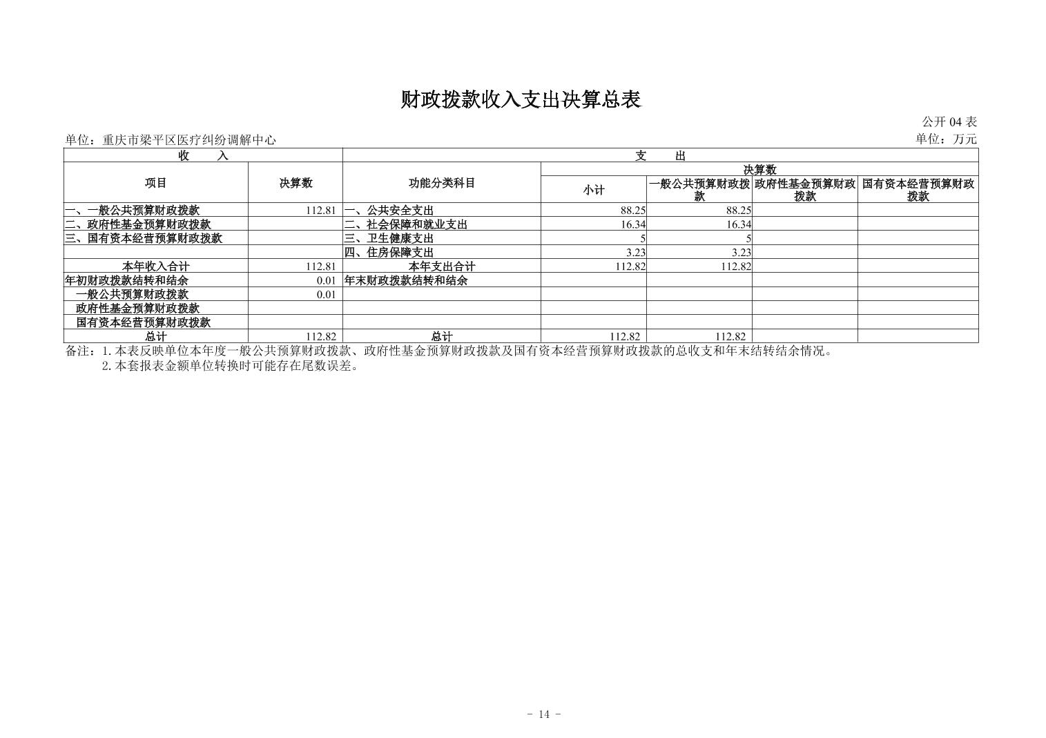标题 | 重庆市梁平区医疗纠纷调解中心2024年度决算公开 | ||