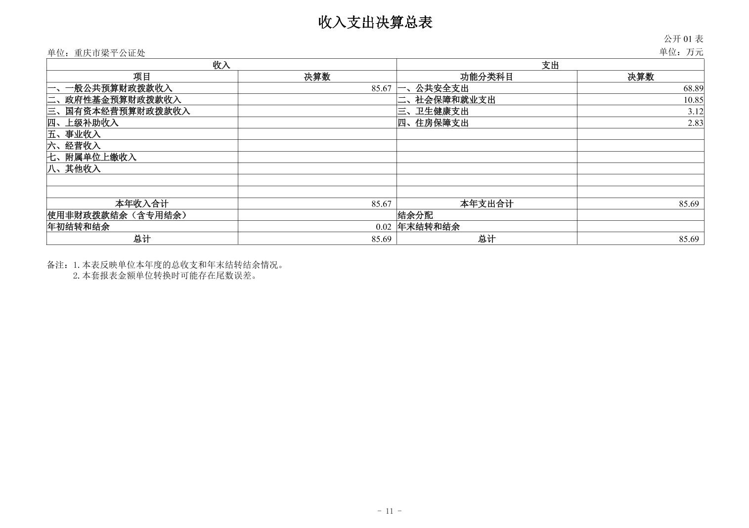 标题 | 重庆市梁平公证处2024年度决算公开 | ||