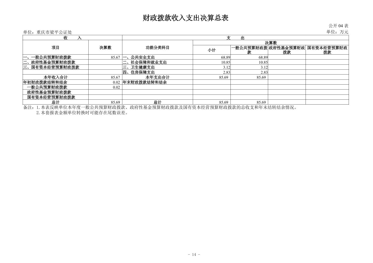 标题 | 重庆市梁平公证处2024年度决算公开 |