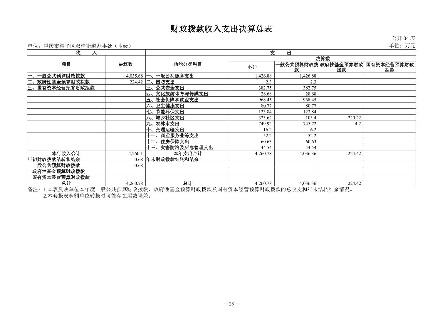 | 标题 | 重庆市梁平区双桂街道办事处(本级)2024年度决算公开说明 |