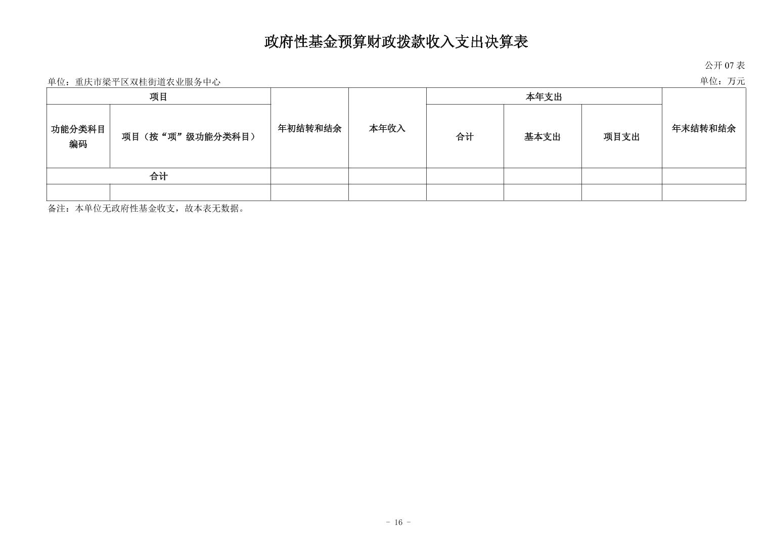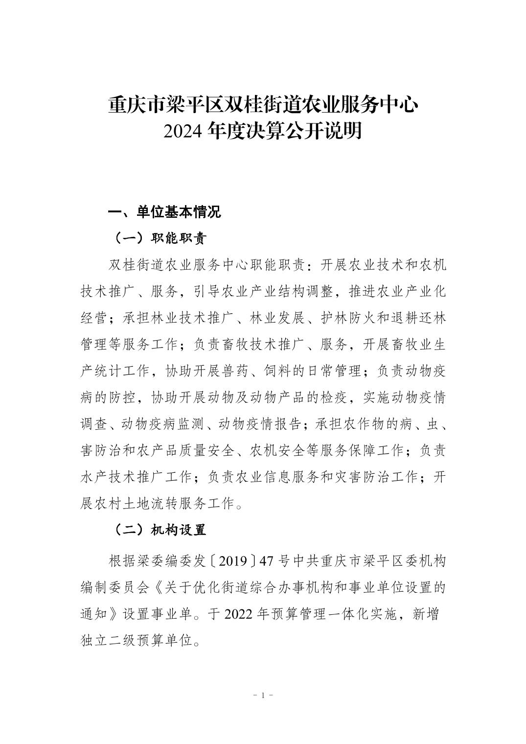 | 标题 | 重庆市梁平区双桂街道农业服务中心2024年度决算公开说明 |