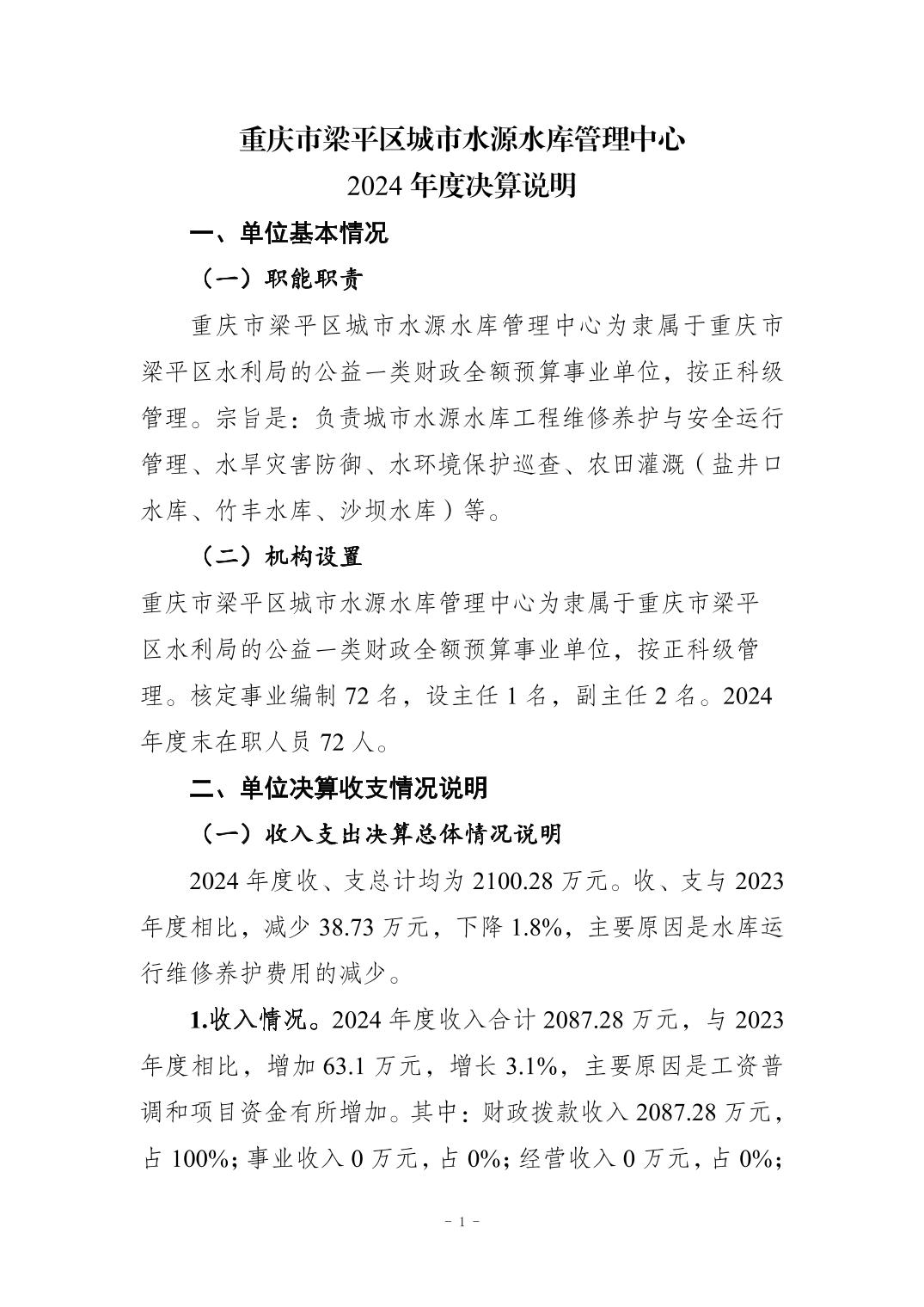 标题 | 重庆市梁平区城市水源水库中心2024年度决算公开说明及报表 |
