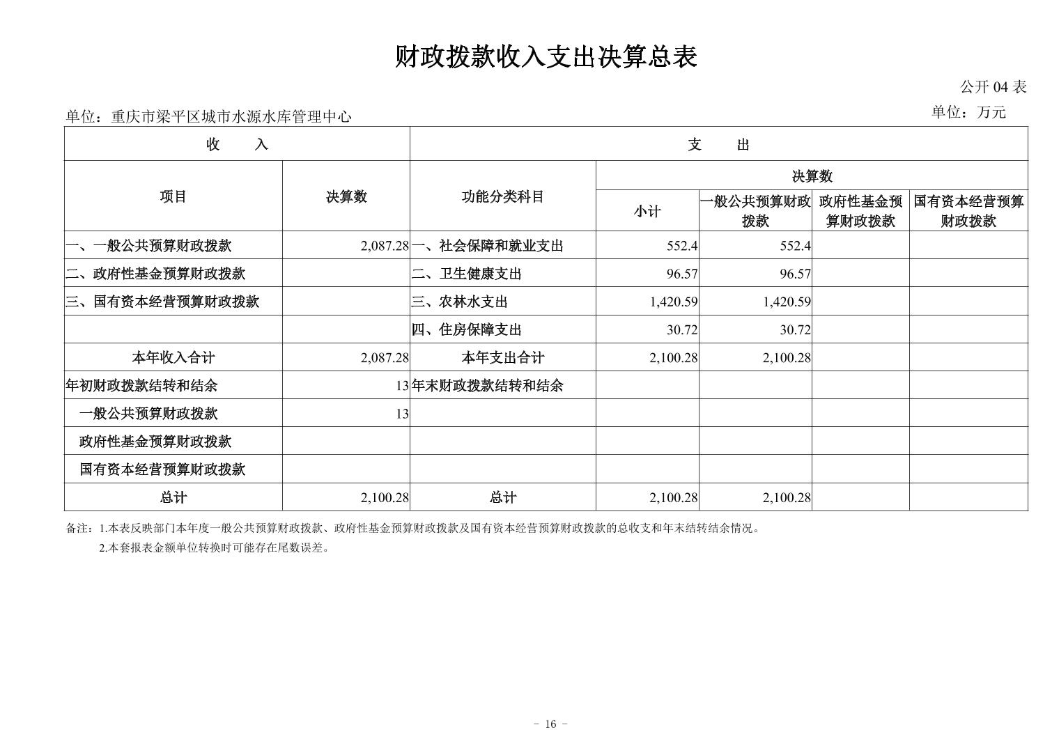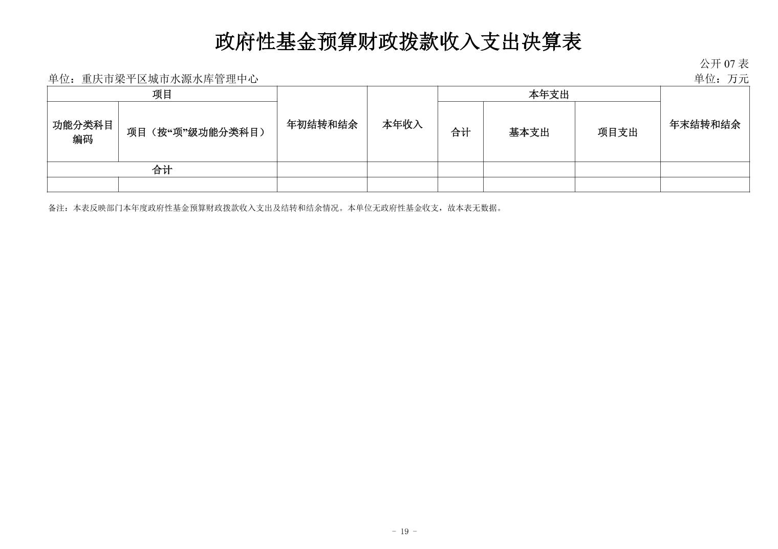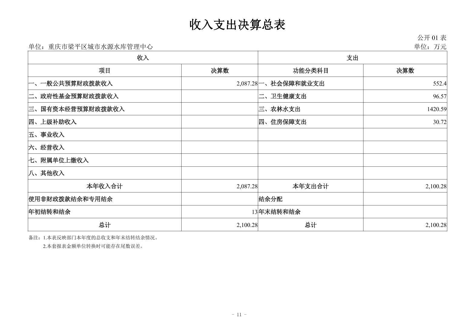 标题 | 重庆市梁平区城市水源水库中心2024年度决算公开说明及报表 | ||