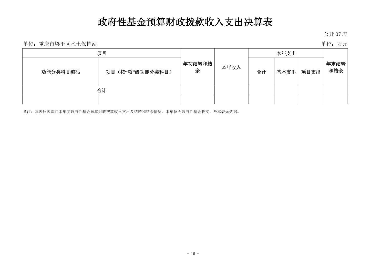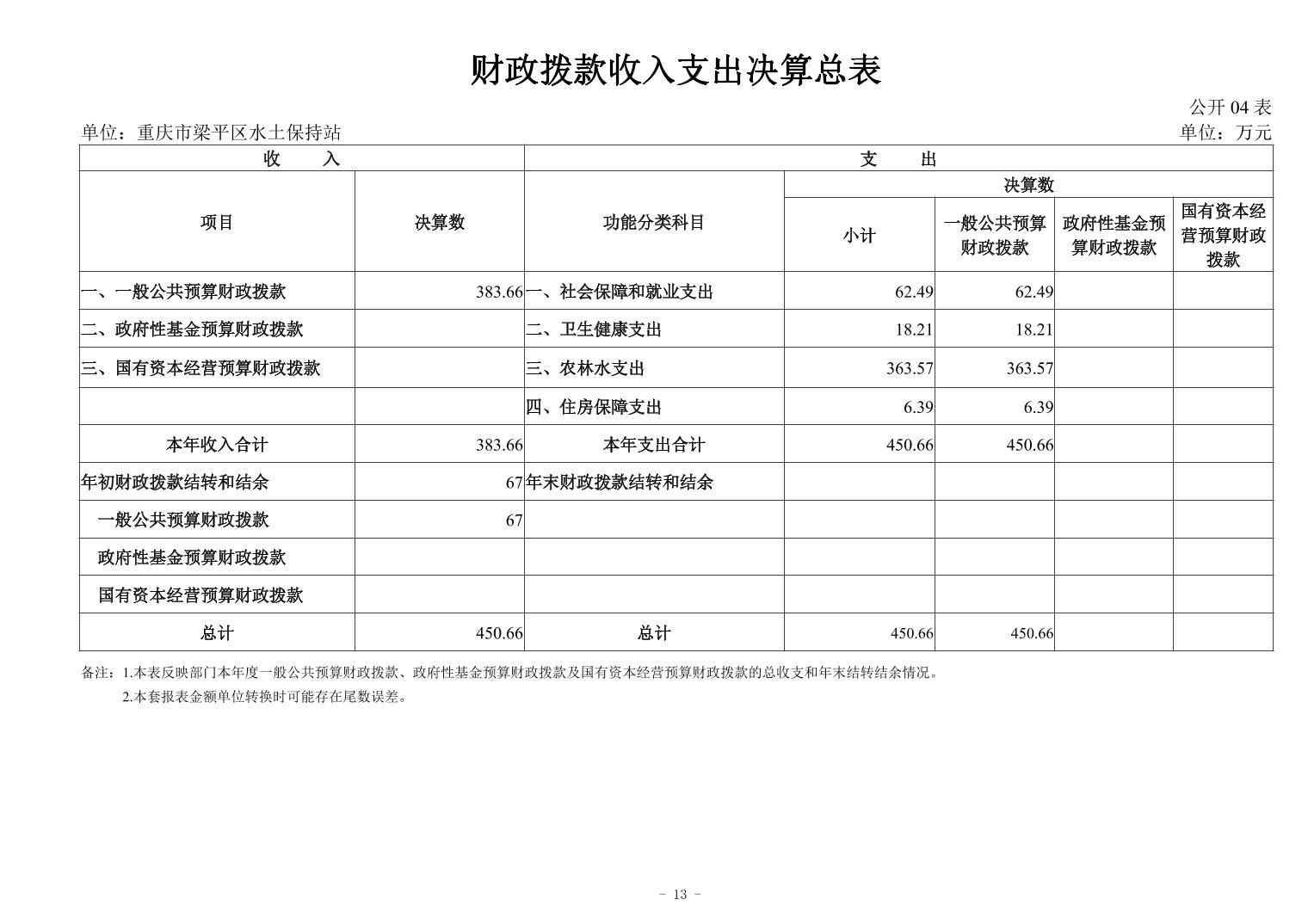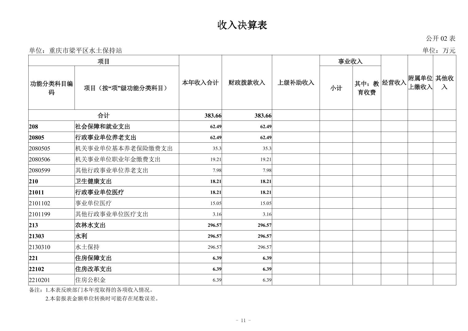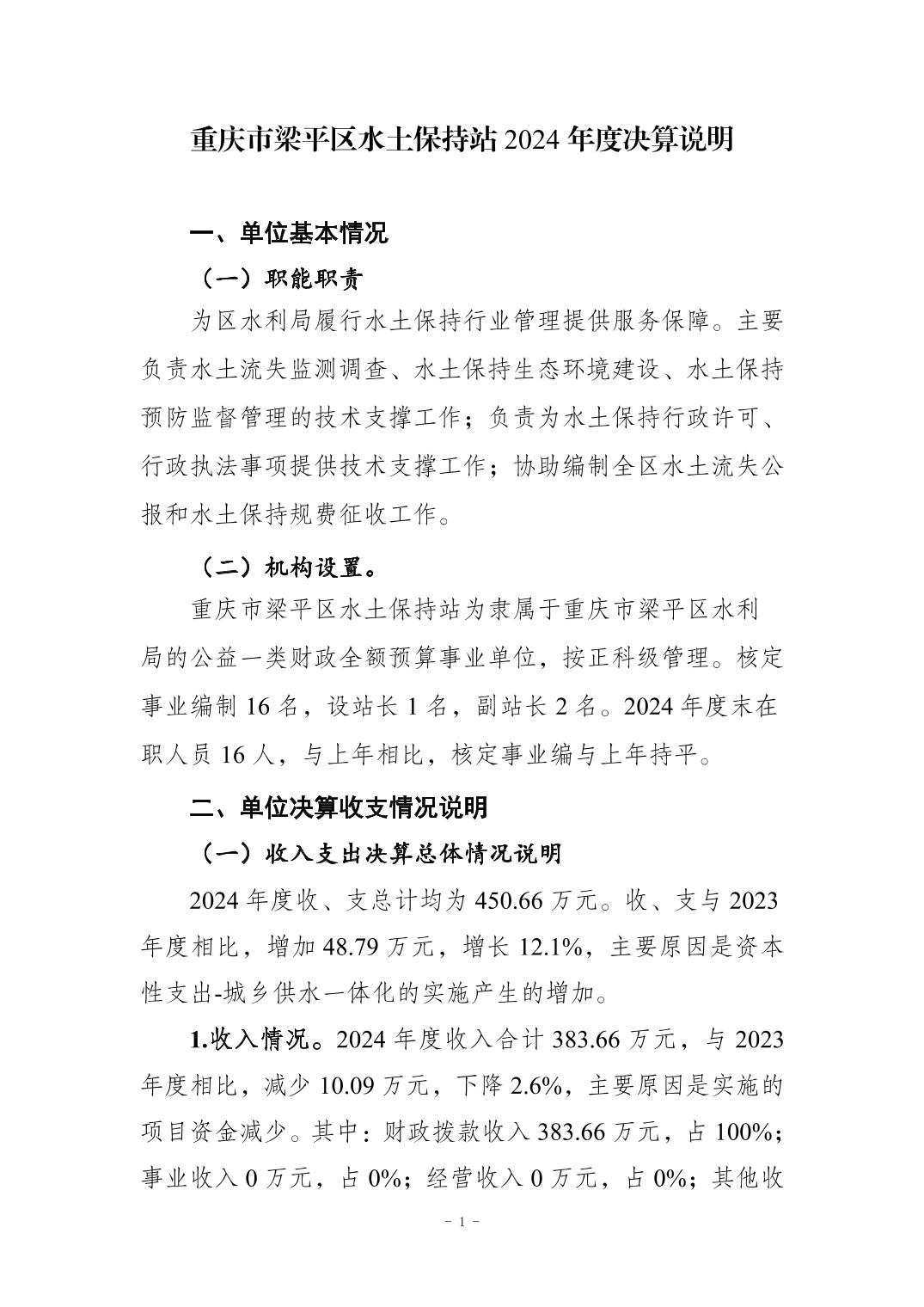 标题 | 重庆市梁平区水土保持站2024年度决算公开说明及报表 |