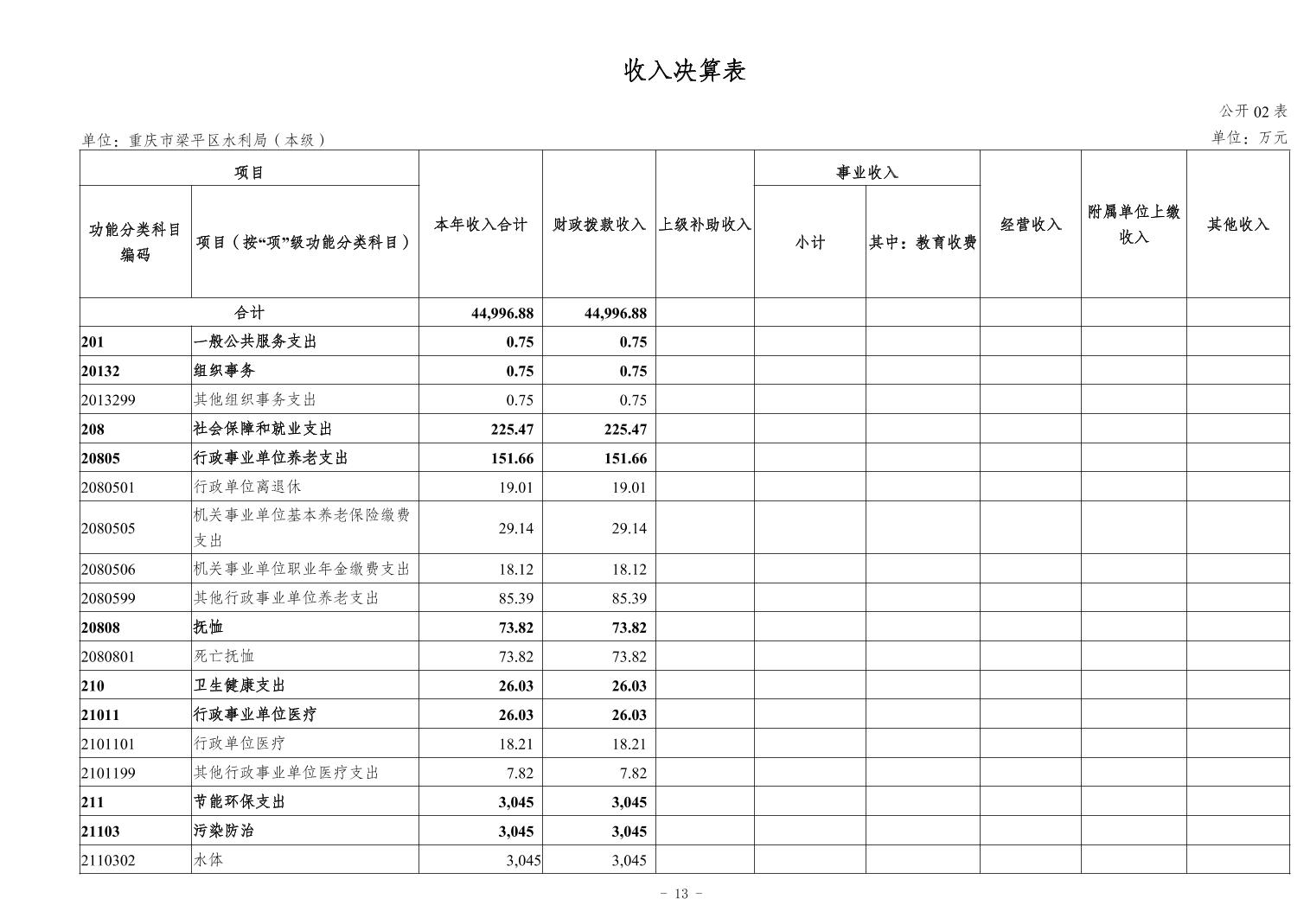 主题分类 | 水利、水务 | 体裁分类 | 财政预算、决算 |