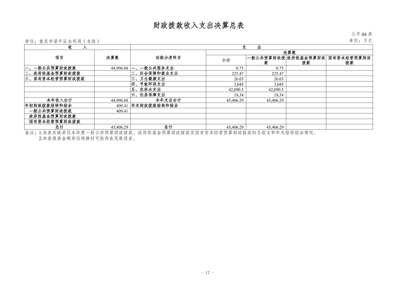 标题 | 重庆市梁平区水利局(本级)2024年度决算公开说明及报表 |