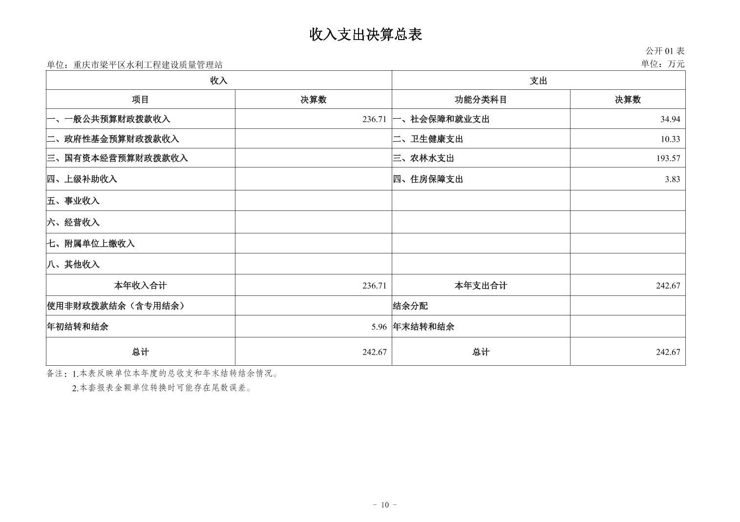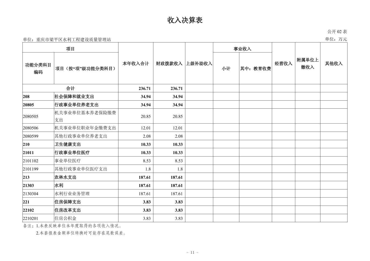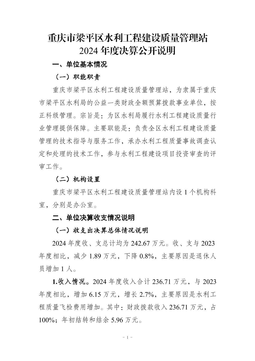 标题 | 重庆市梁平区水利工程建设质量管理站2024年度决算公开说明及报表 |