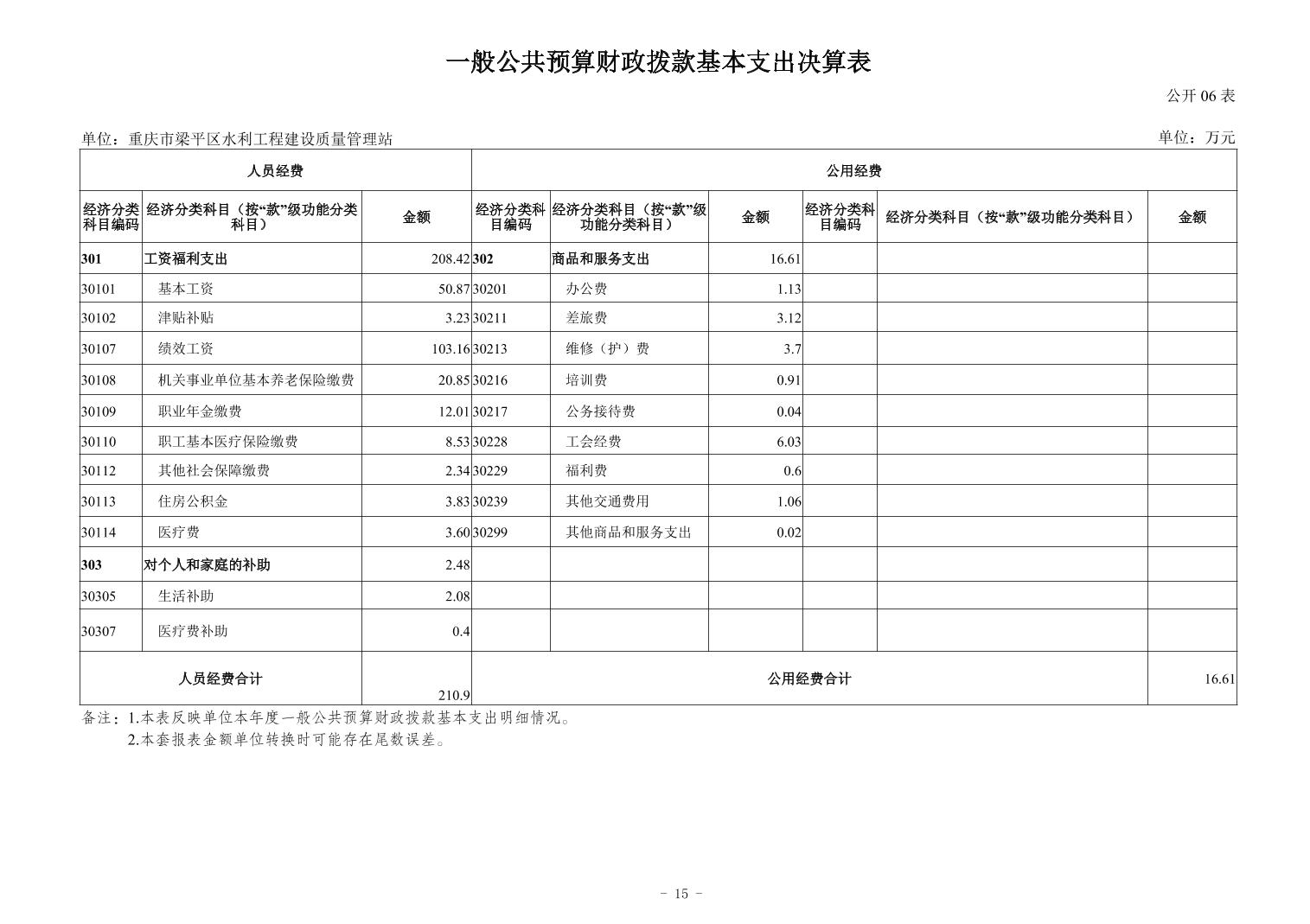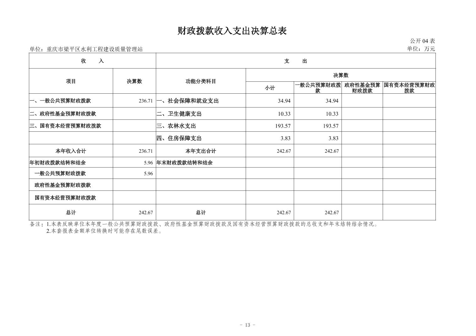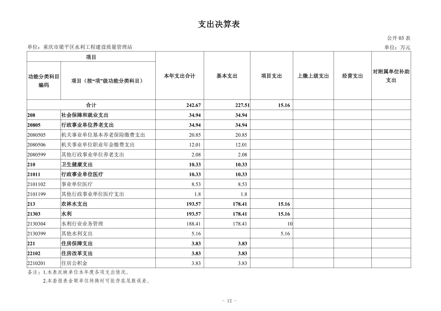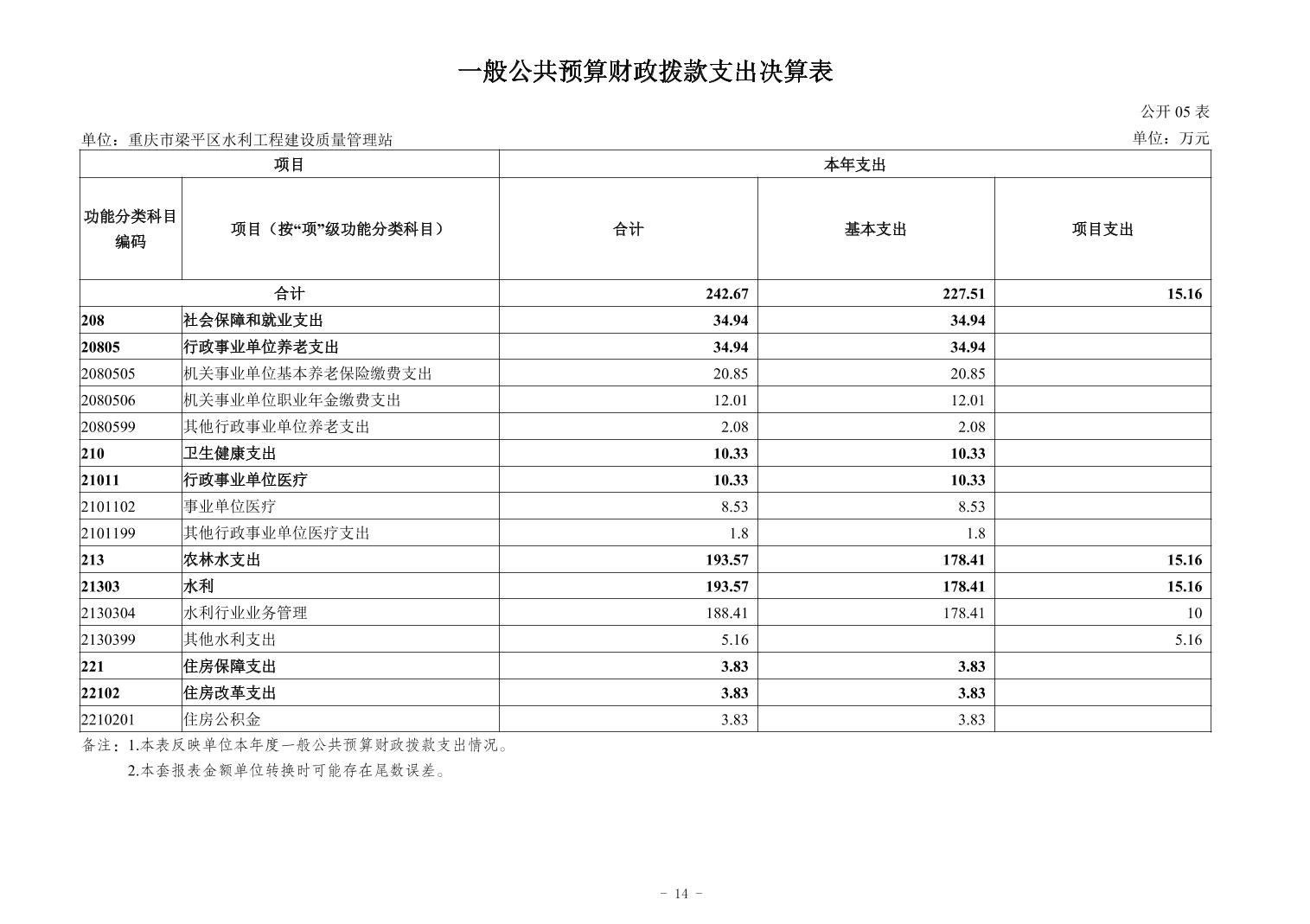 标题 | 重庆市梁平区水利工程建设质量管理站2024年度决算公开说明及报表 |