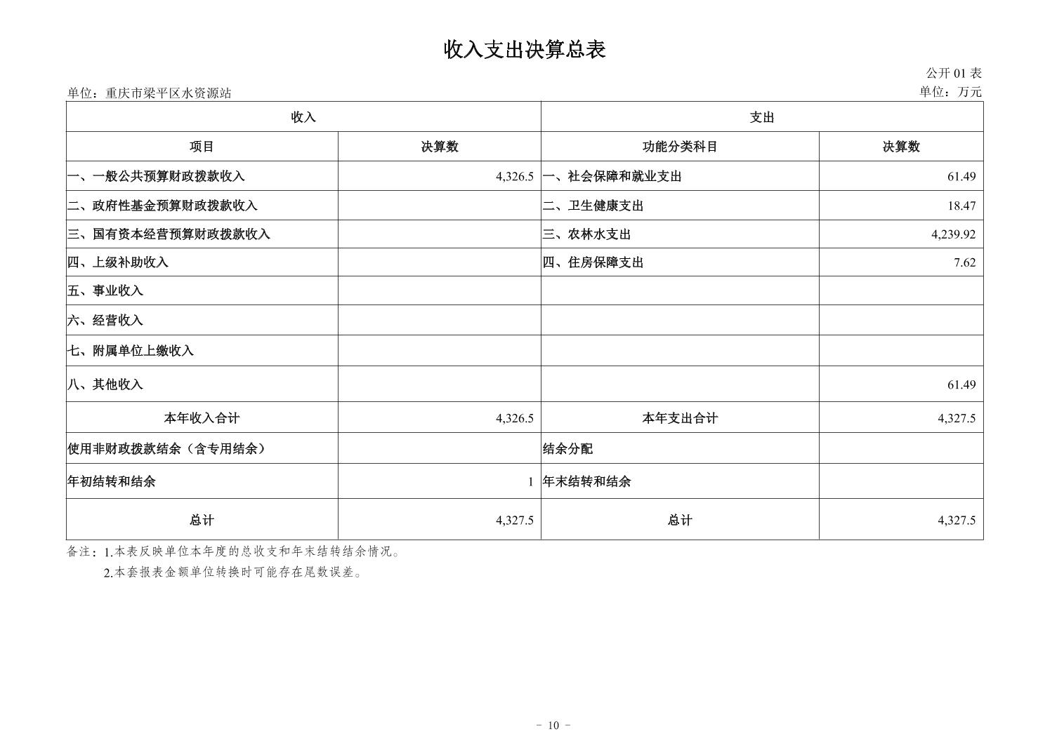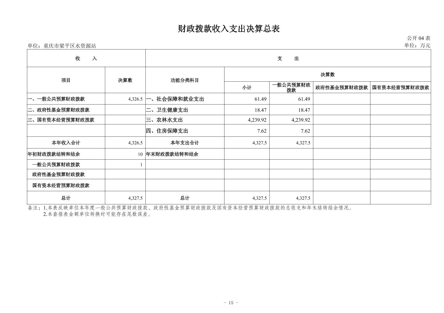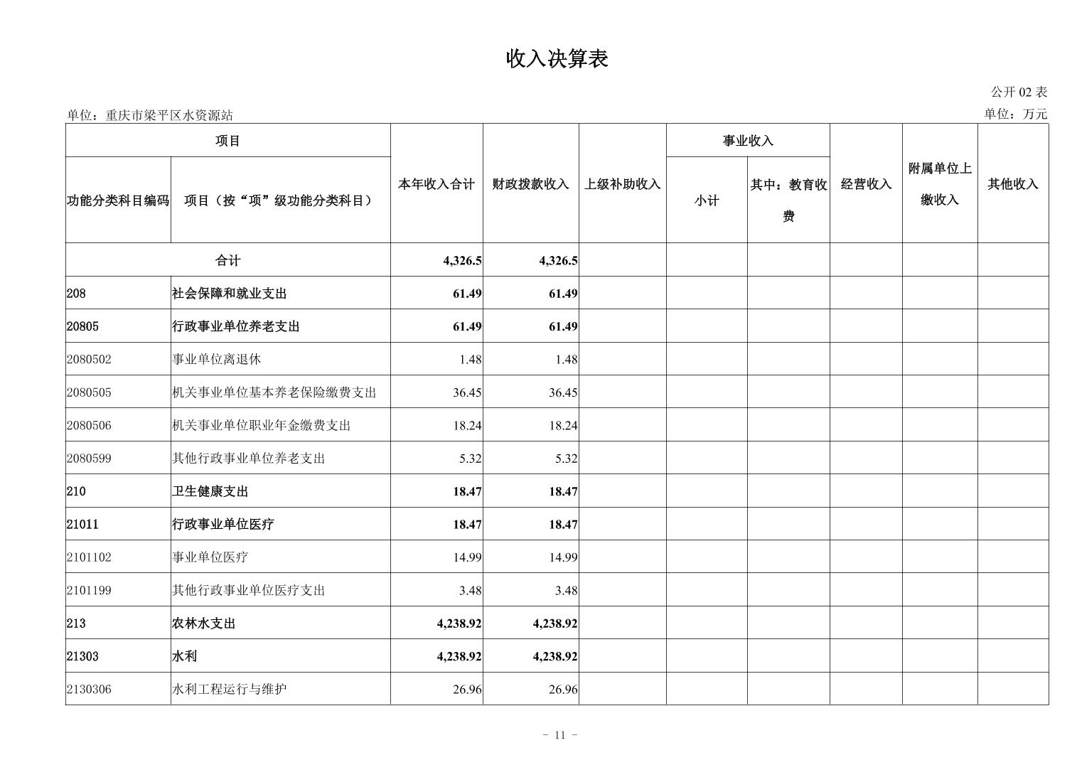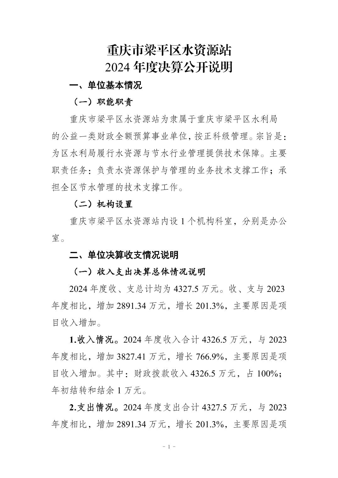 标题 | 重庆市梁平区水资源站2024年度决算公开说明及报表 |