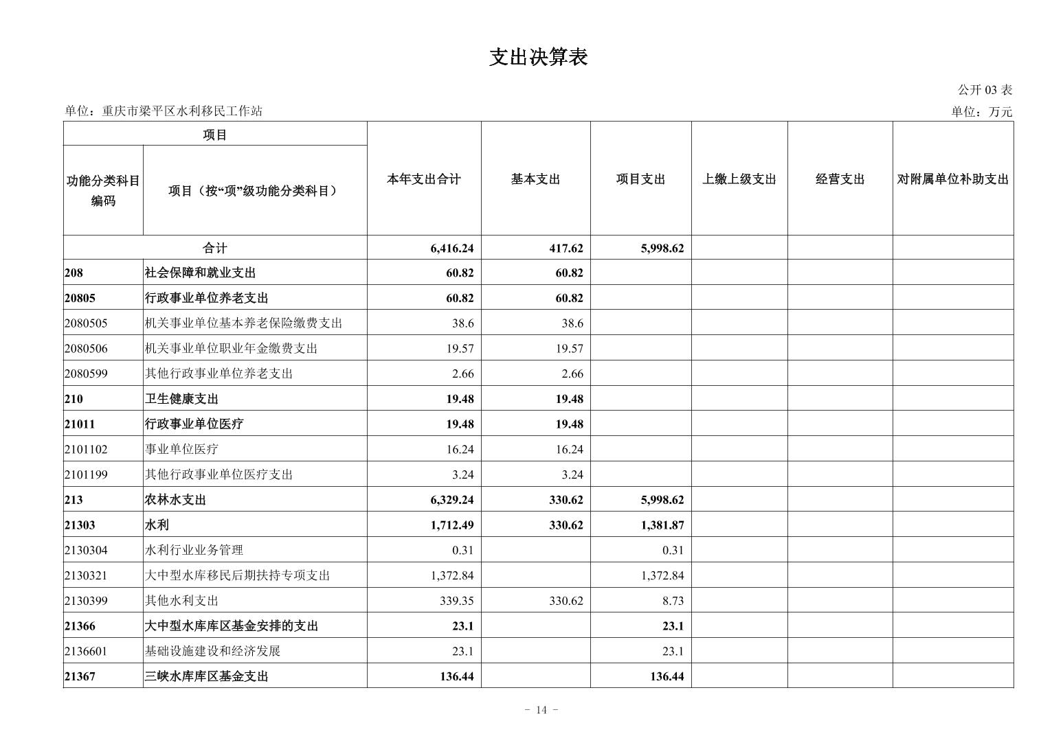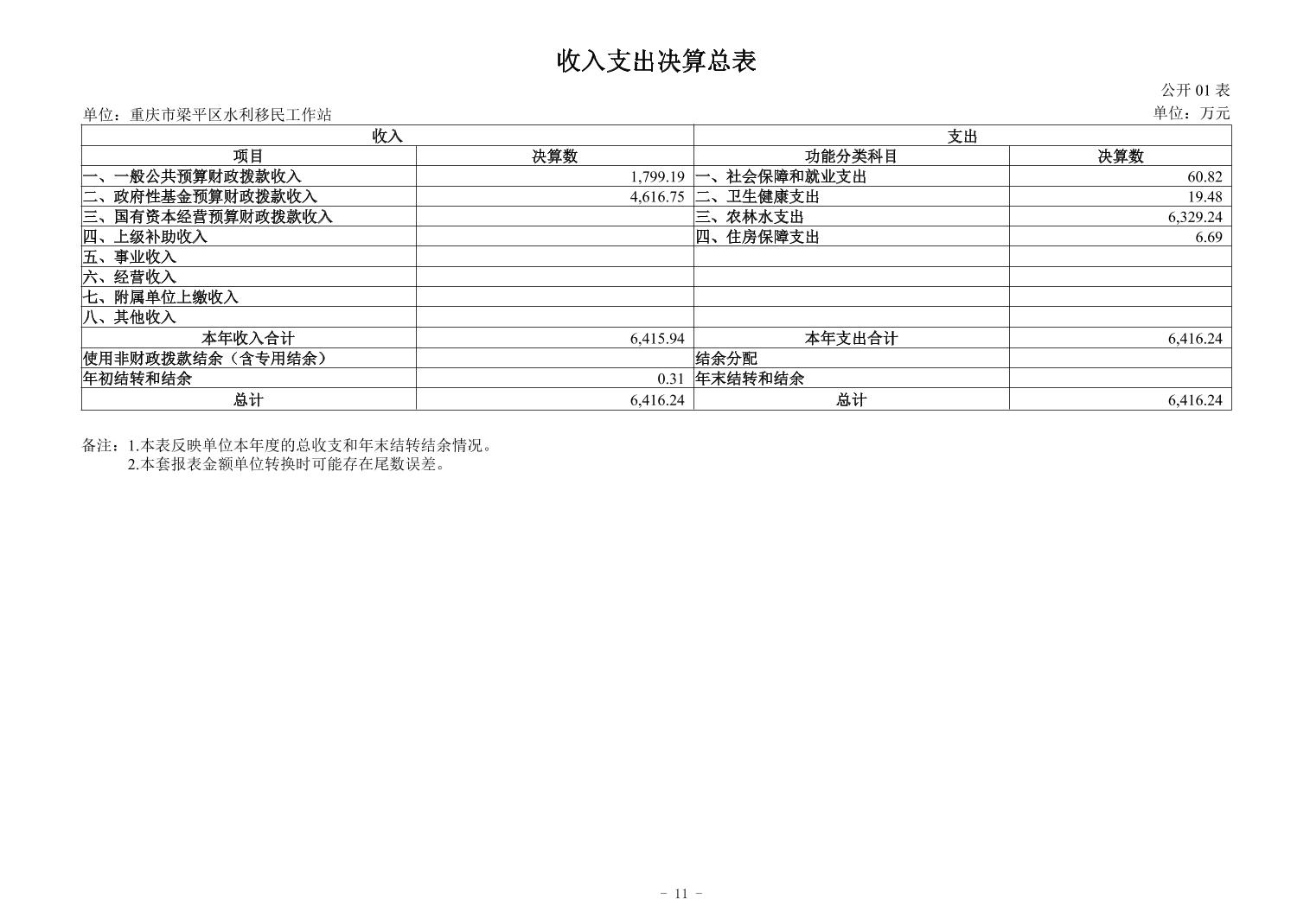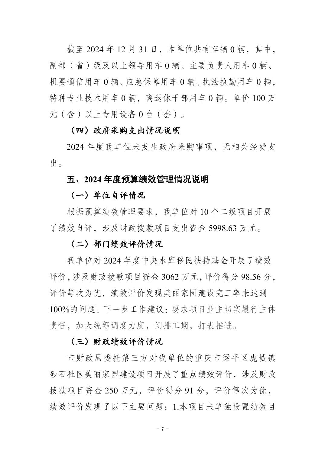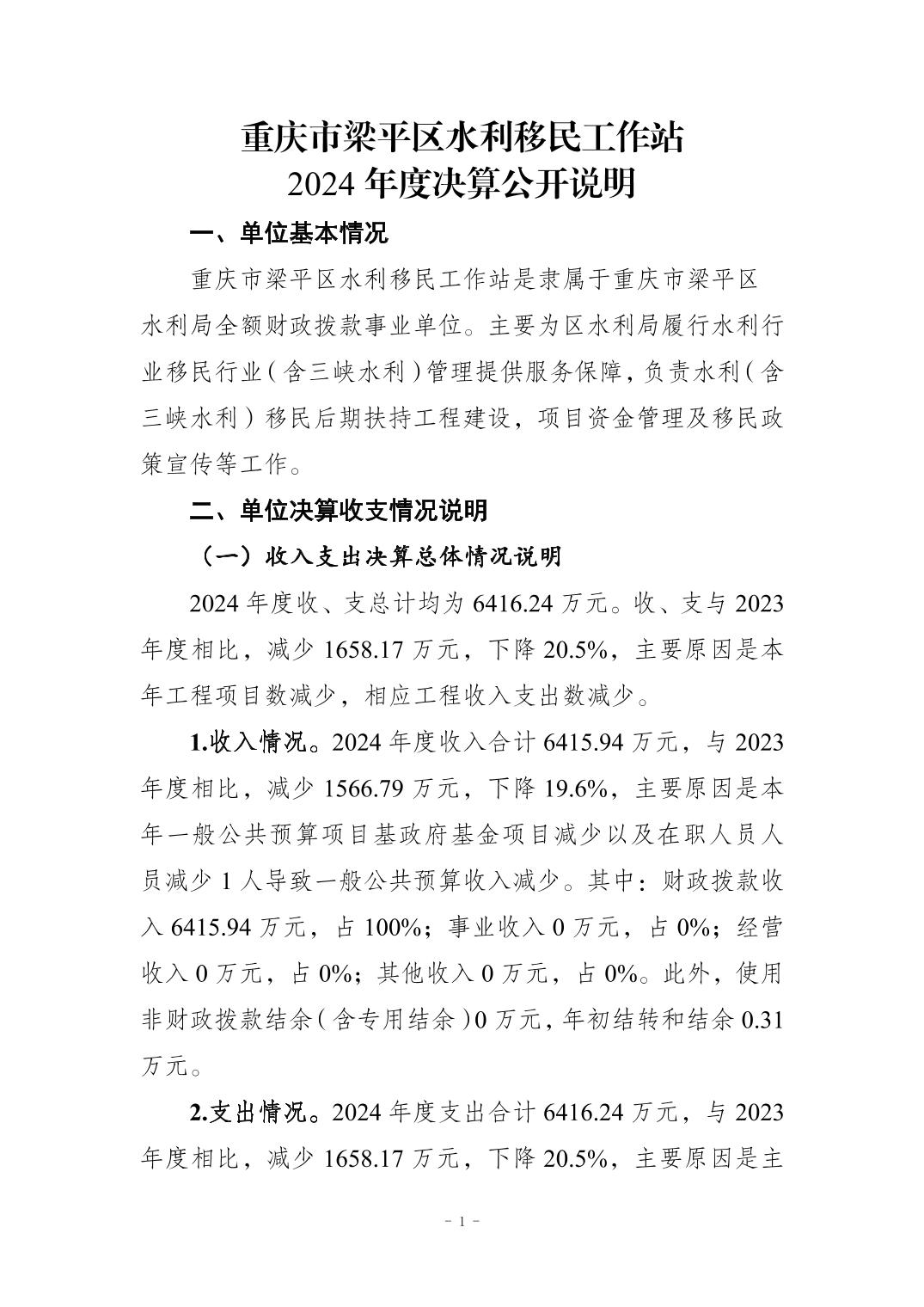 标题 | 重庆市梁平区水利移民工作站2024年度决算公开说明及报表 |
