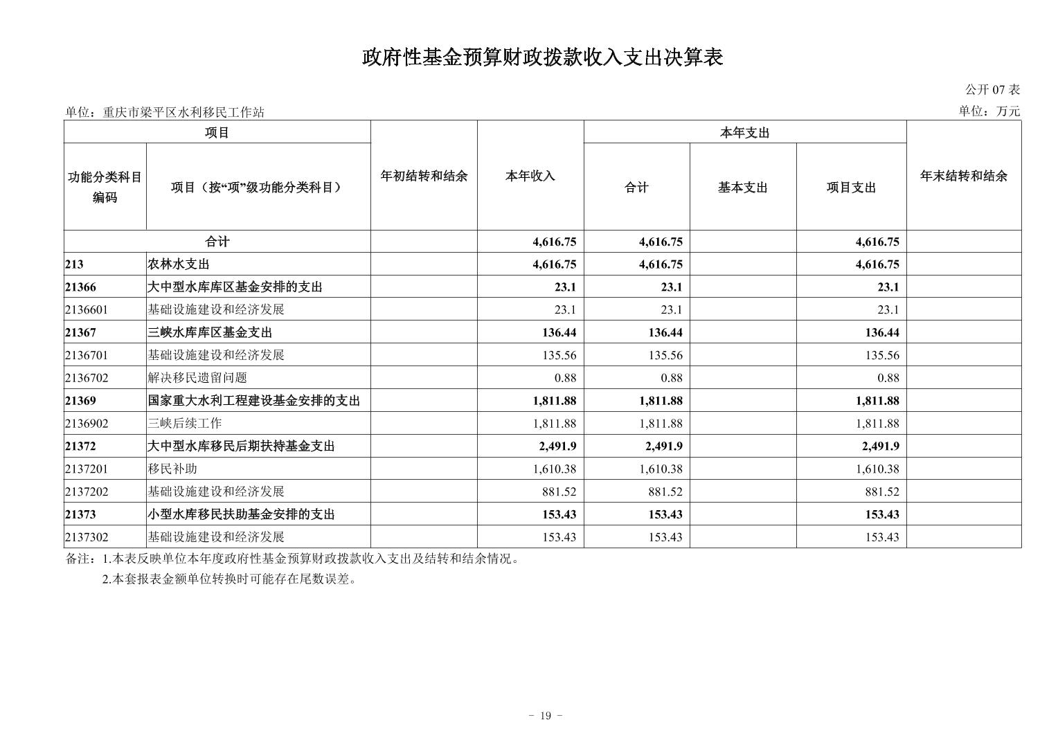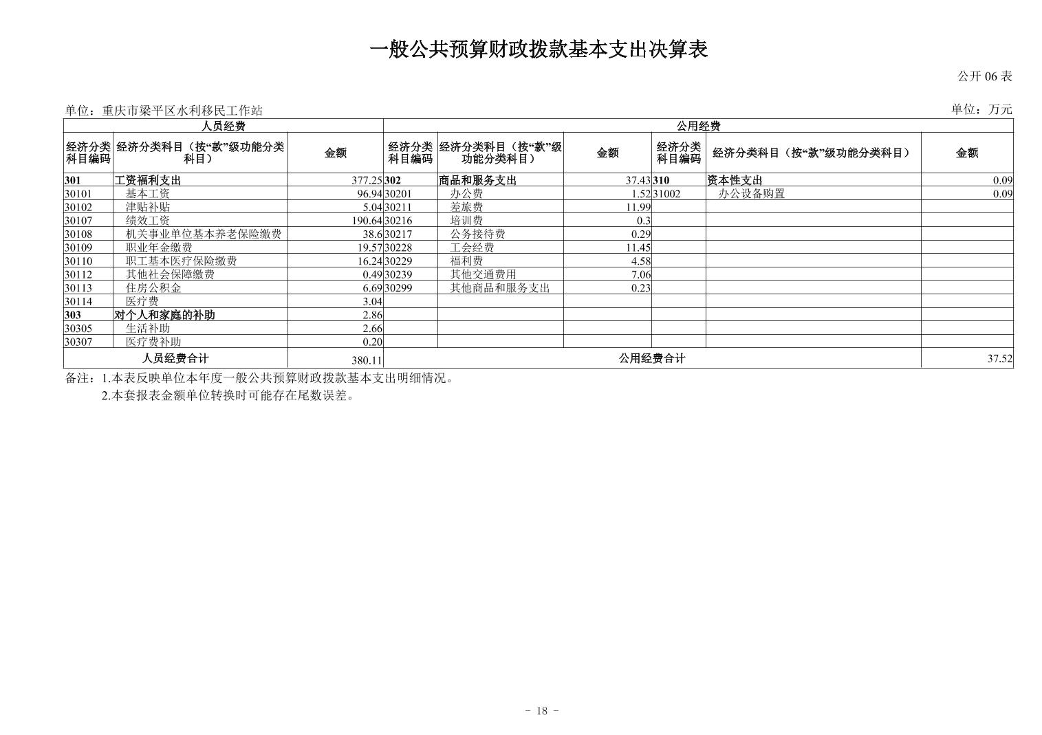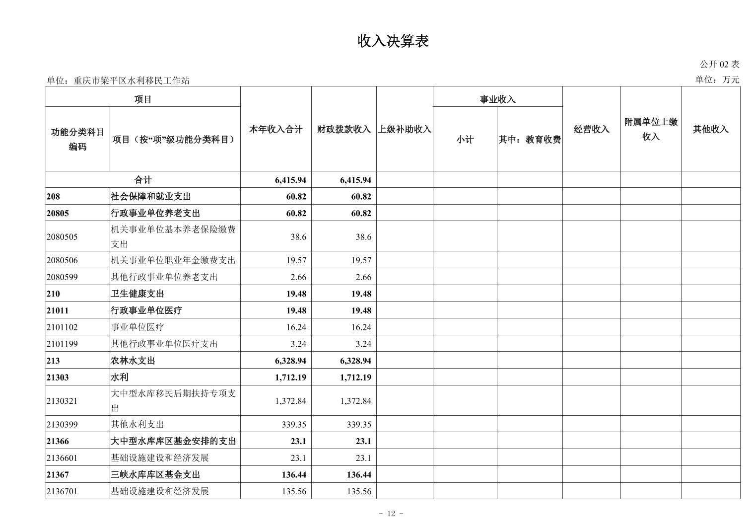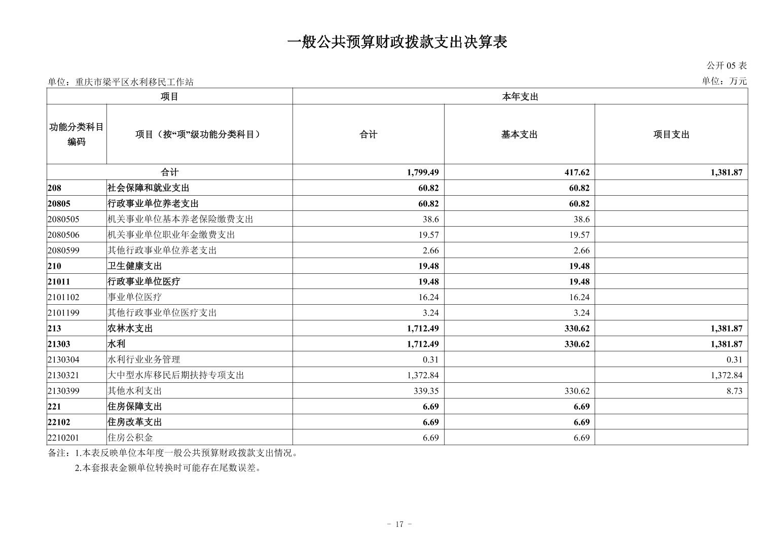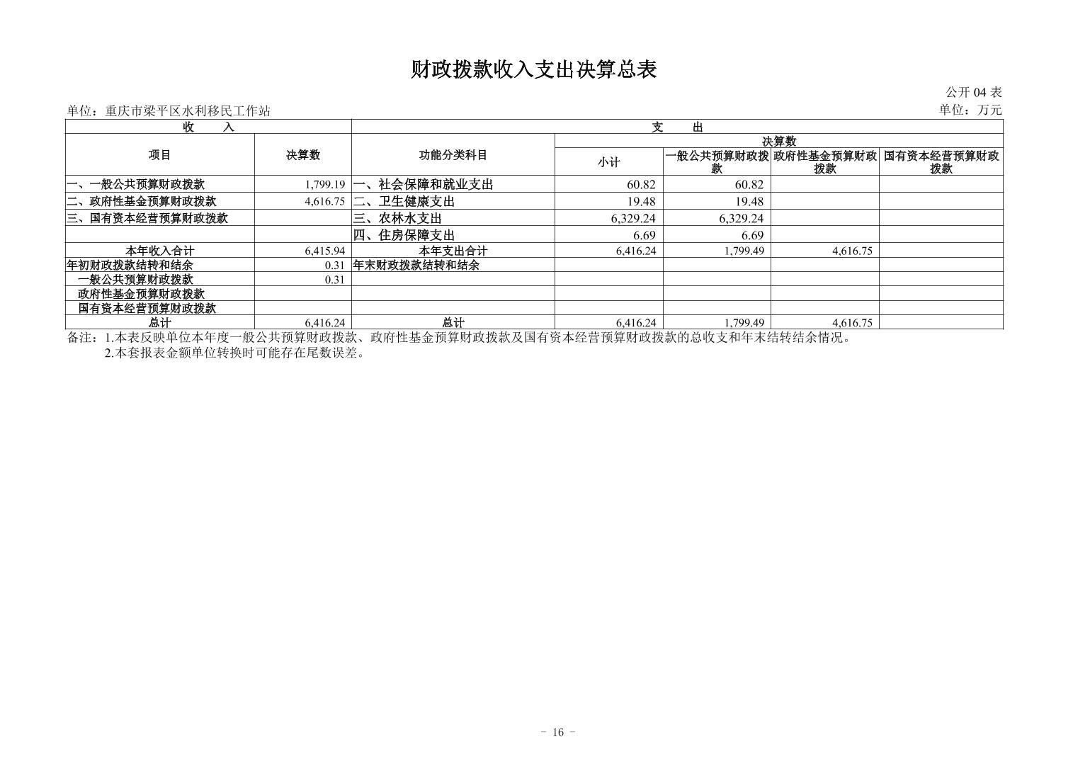 标题 | 重庆市梁平区水利移民工作站2024年度决算公开说明及报表 |