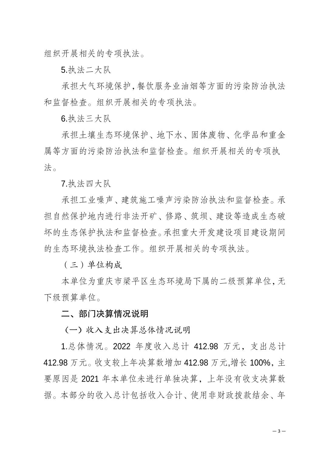 | 标题 | 重庆市梁平区生态环境保护综合行政执法支队2022年度单位决算公开说明 |