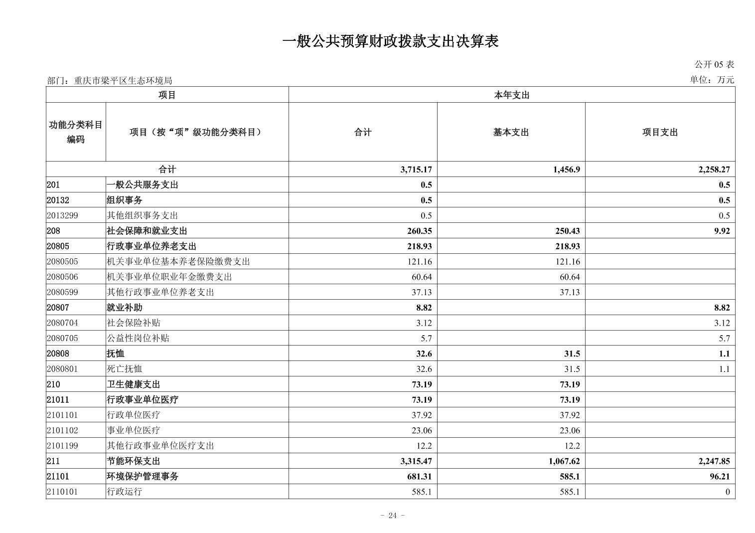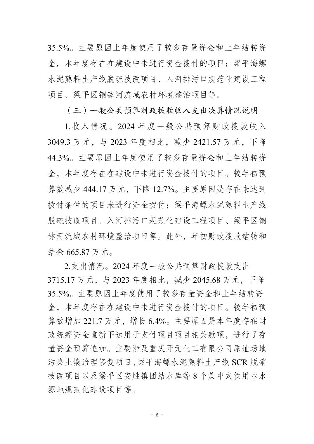 标题 | 重庆市梁平区生态环境局2024年度决算公开说明 | ||