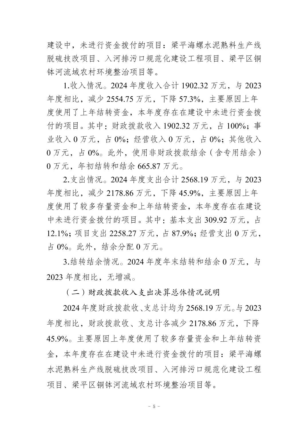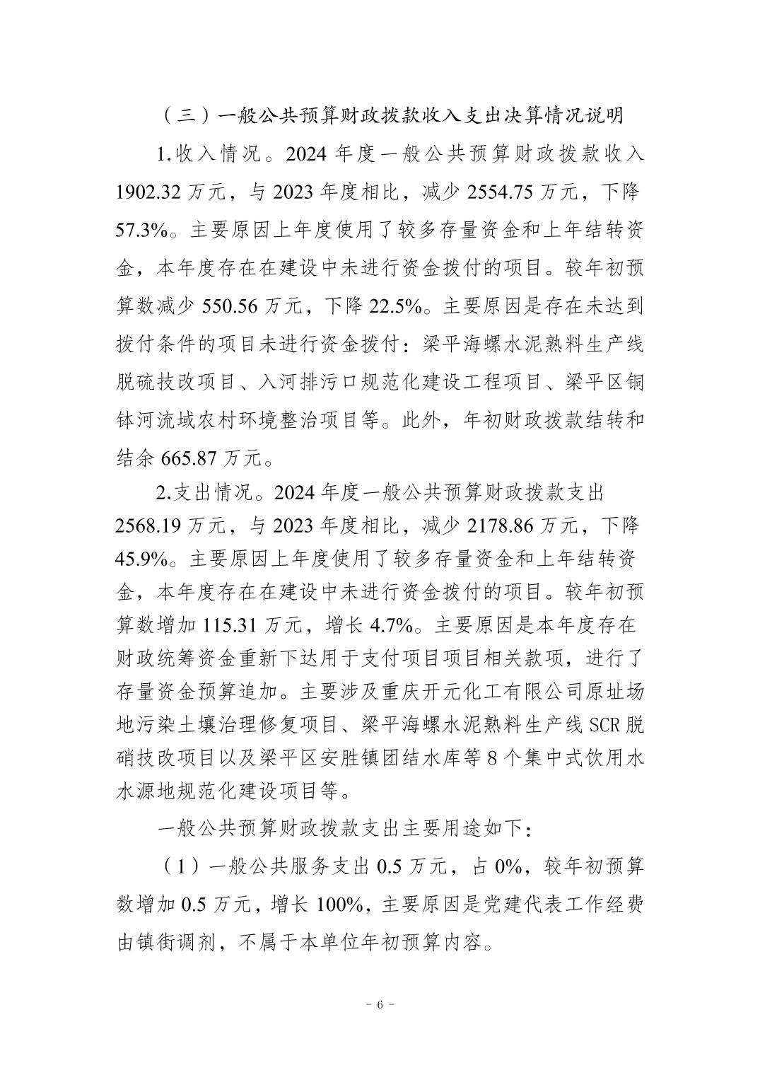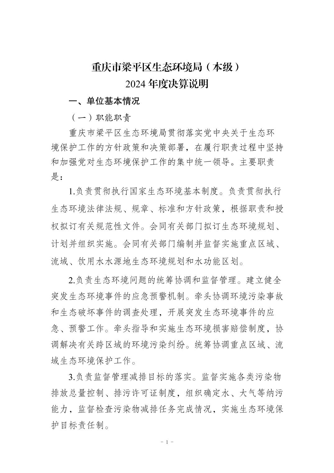 标题 | 重庆市梁平区生态环境局(本级)2024年度决算公开说明 |