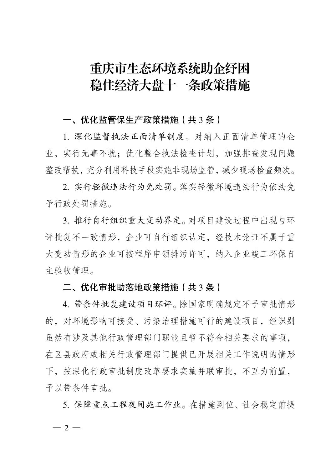 | 标题 | 重庆市生态环境局稳住经济大盘政策文件(2023版) | ||