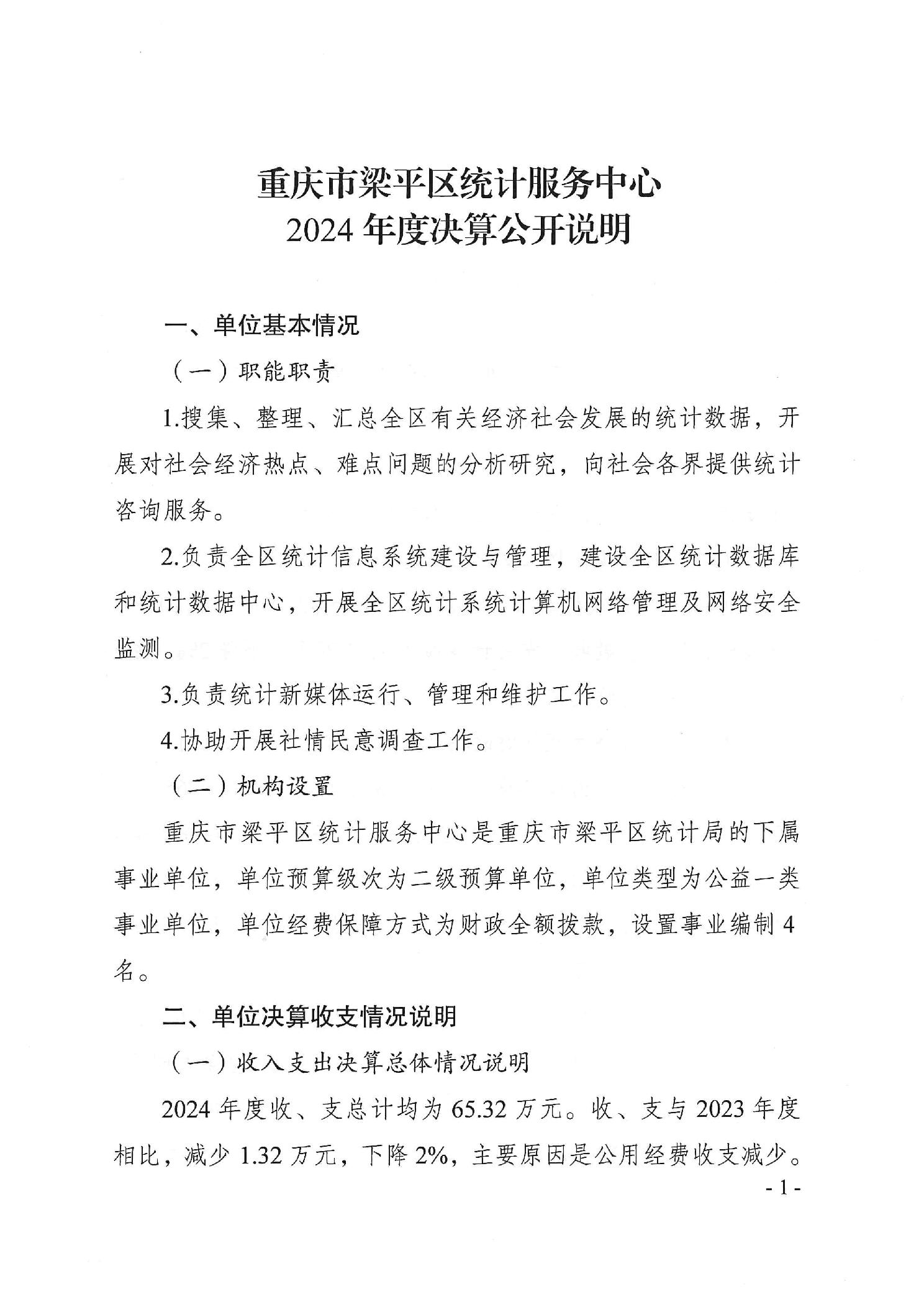 标题 | 重庆市梁平区统计服务中心2024年度决算公开说明 |