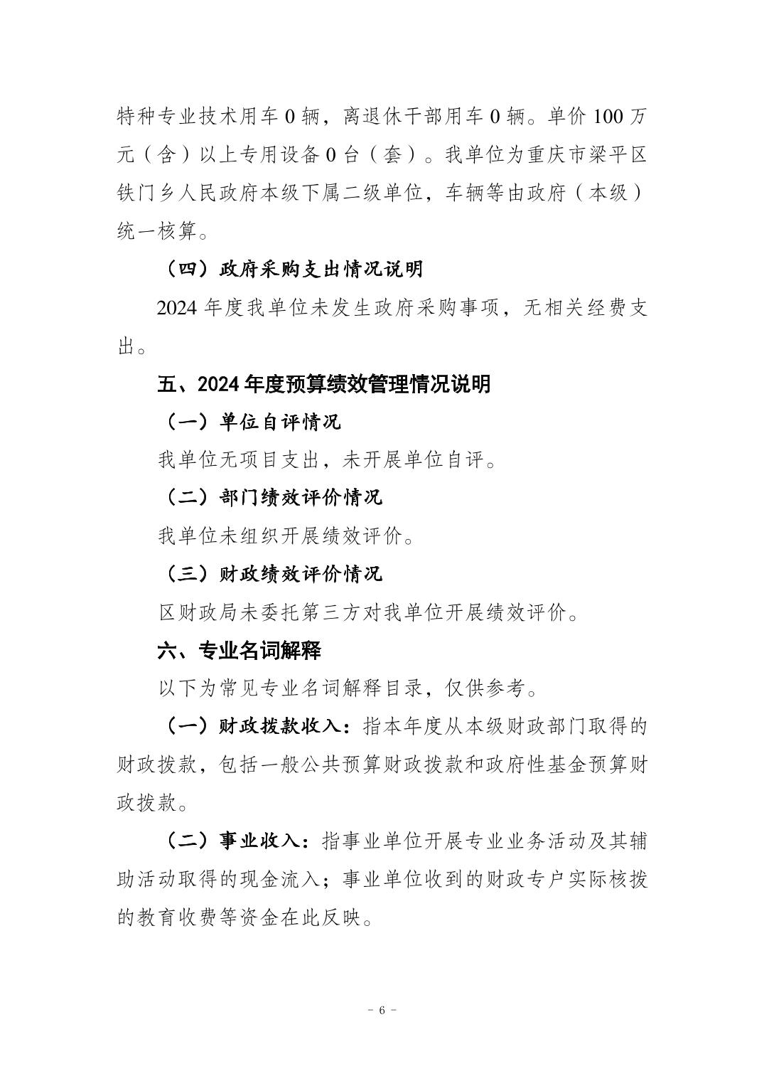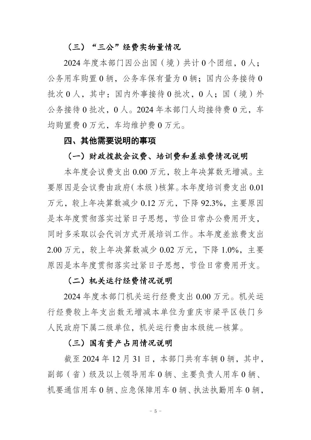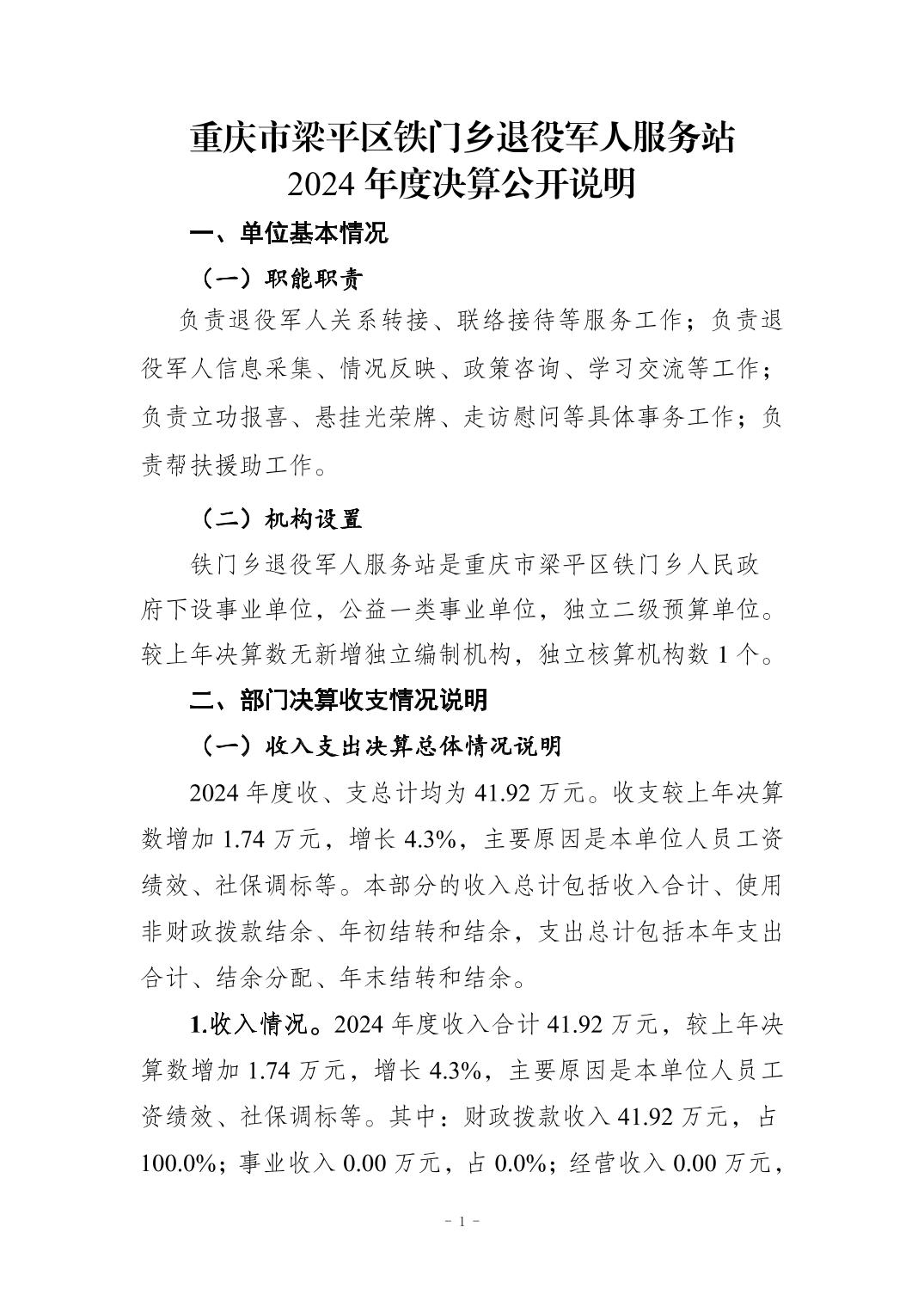 | 标题 | 重庆市梁平区铁门乡退役军人服务站 2024 年度决算公开说明 |