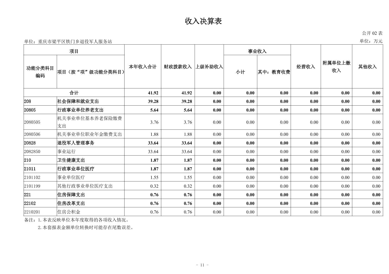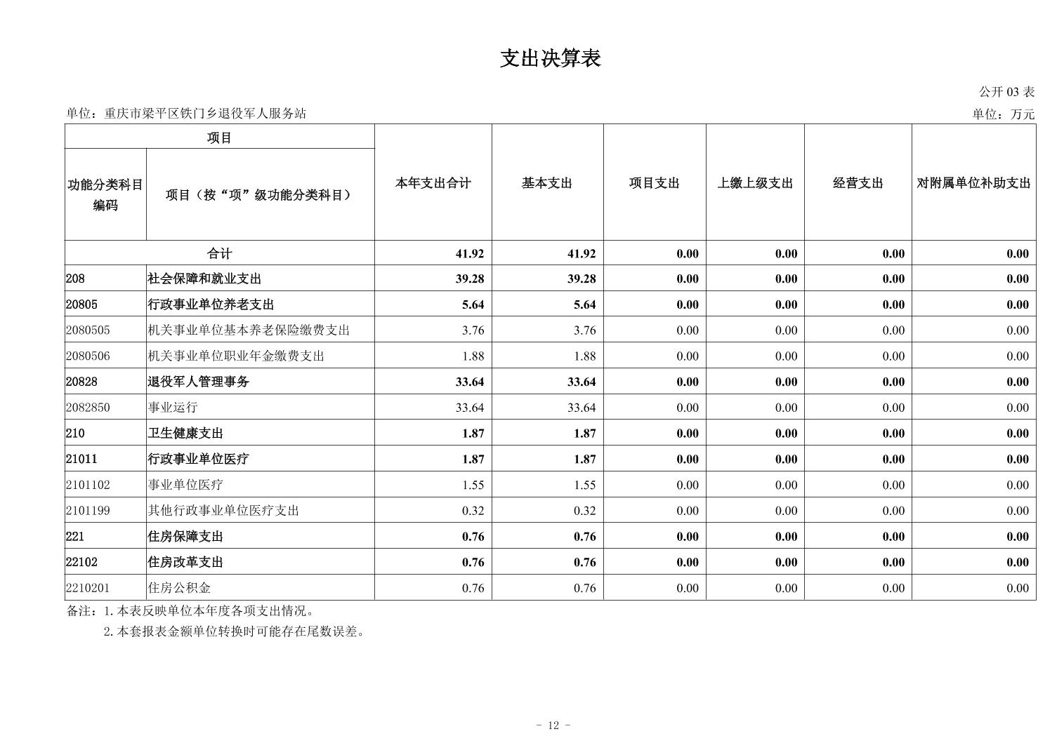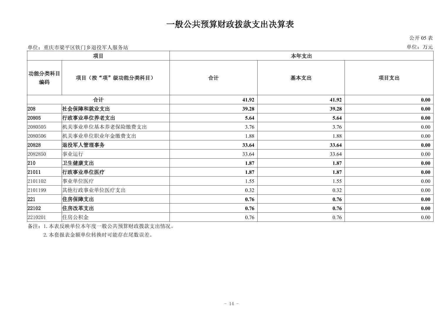 | 标题 | 重庆市梁平区铁门乡退役军人服务站 2024 年度决算公开说明 |