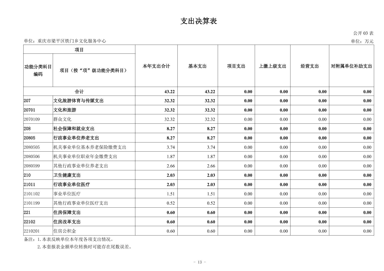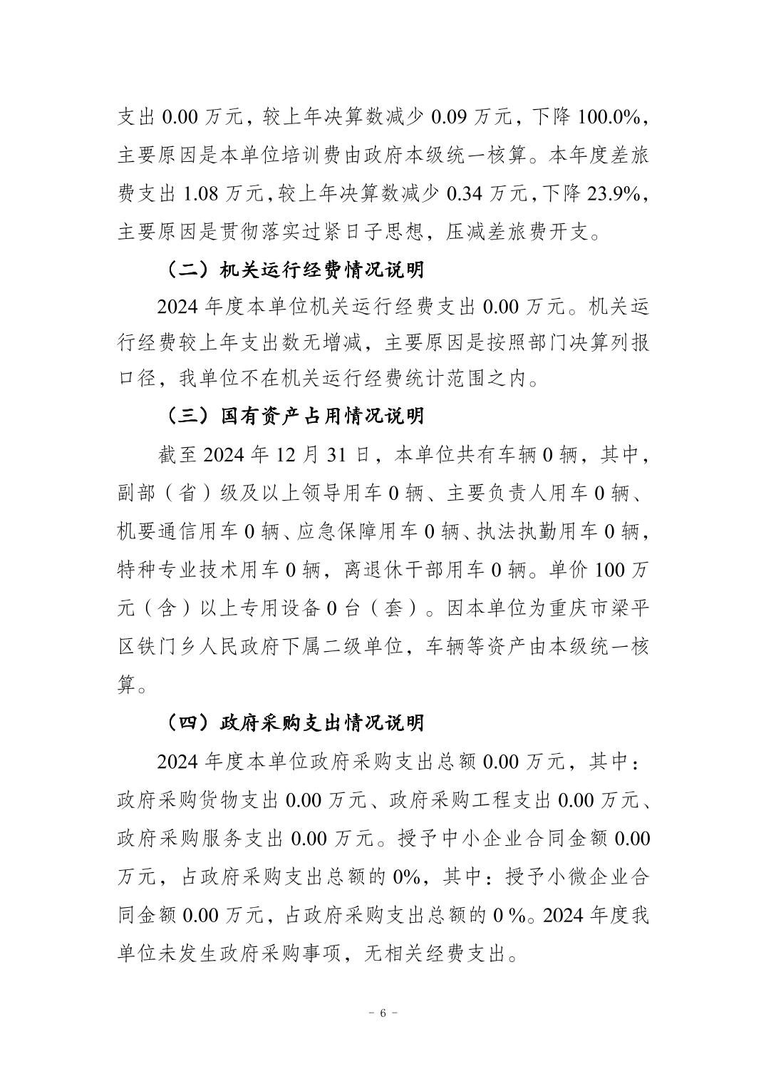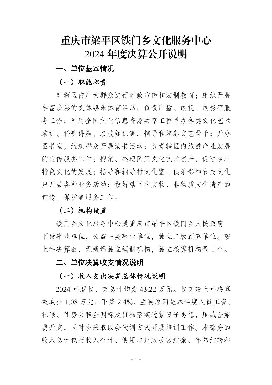 | 标题 | 重庆市梁平区铁门乡文化服务中心 2024 年度决算公开说明 |