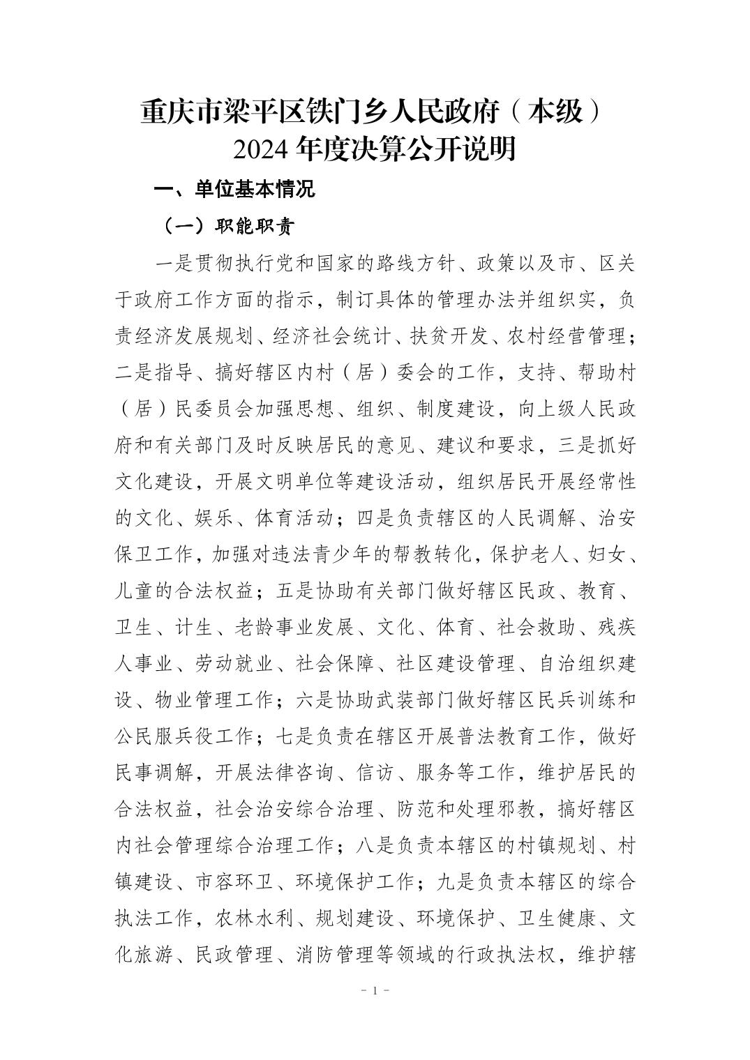 | 标题 | 重庆市梁平区铁门乡人民政府(本级) 2024 年度决算公开说明 |