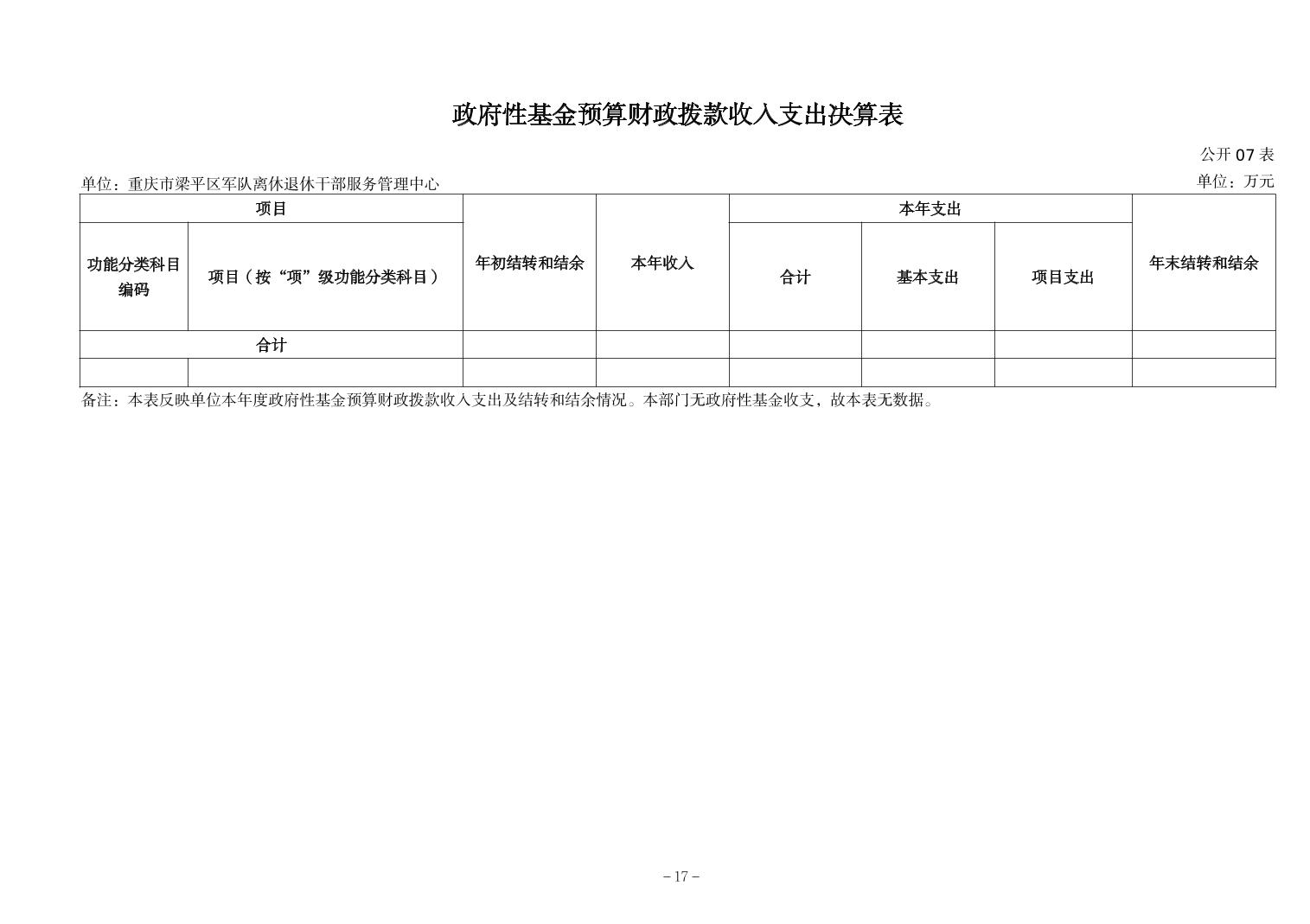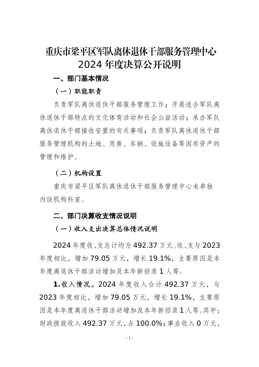 标题 | 重庆市梁平区军队离休退休干部服务管理中心2024年度决算公开说明 | ||