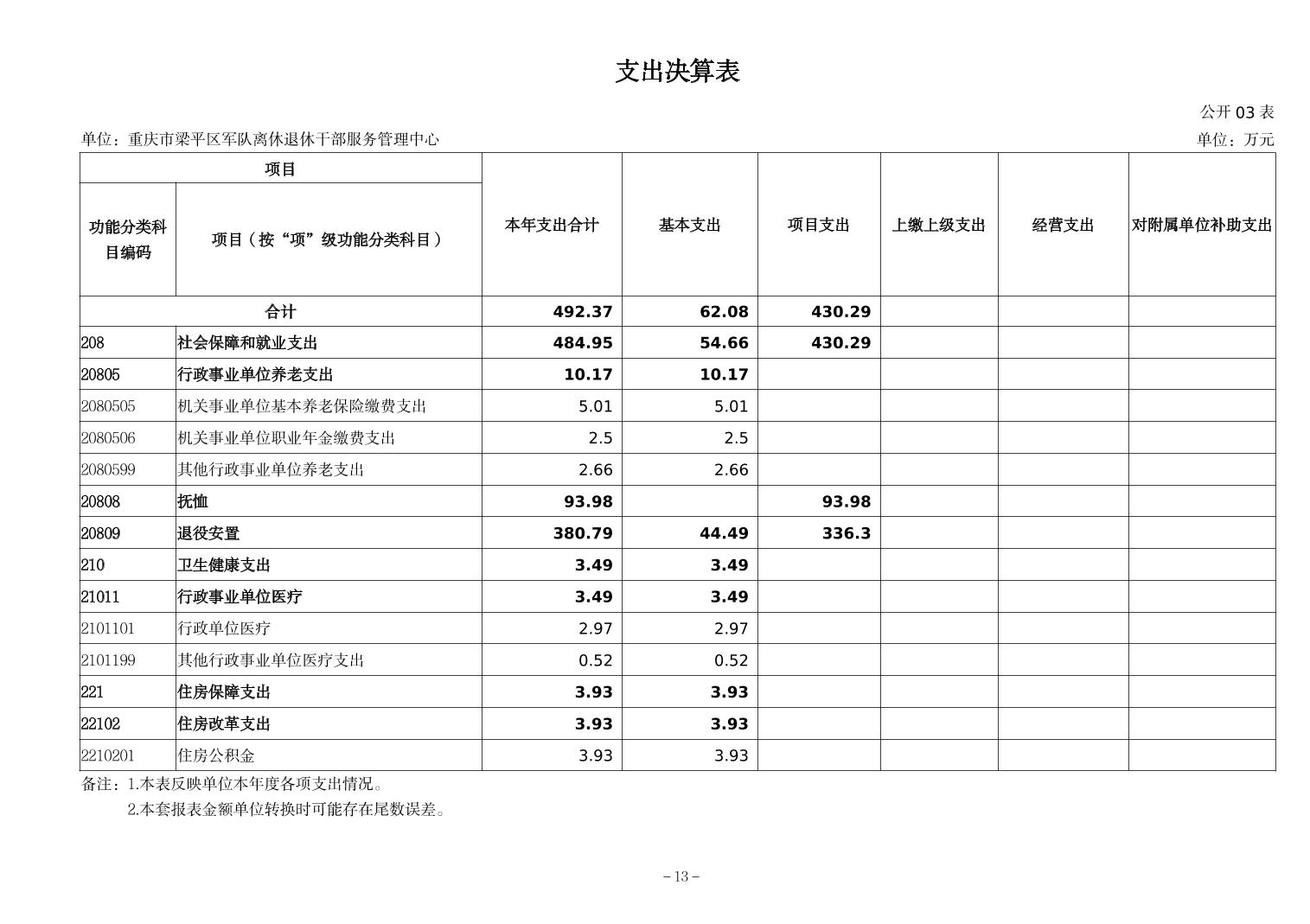 标题 | 重庆市梁平区军队离休退休干部服务管理中心2024年度决算公开说明 |