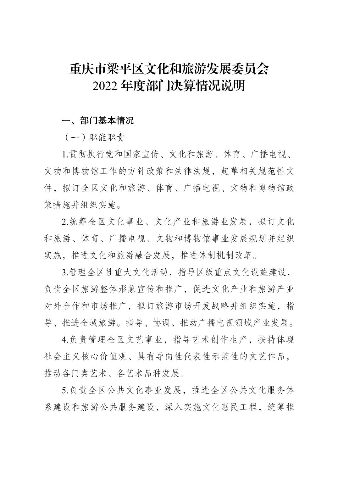 | 标题 | 重庆市梁平区文化和旅游发展委员会2022年度部门决算情况说明 |