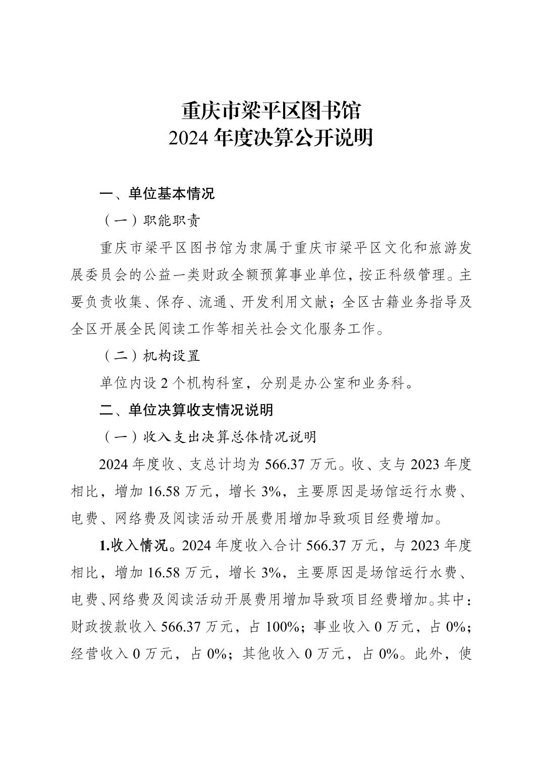 标题 | 重庆市梁平区图书馆2024年决算公开说明 |