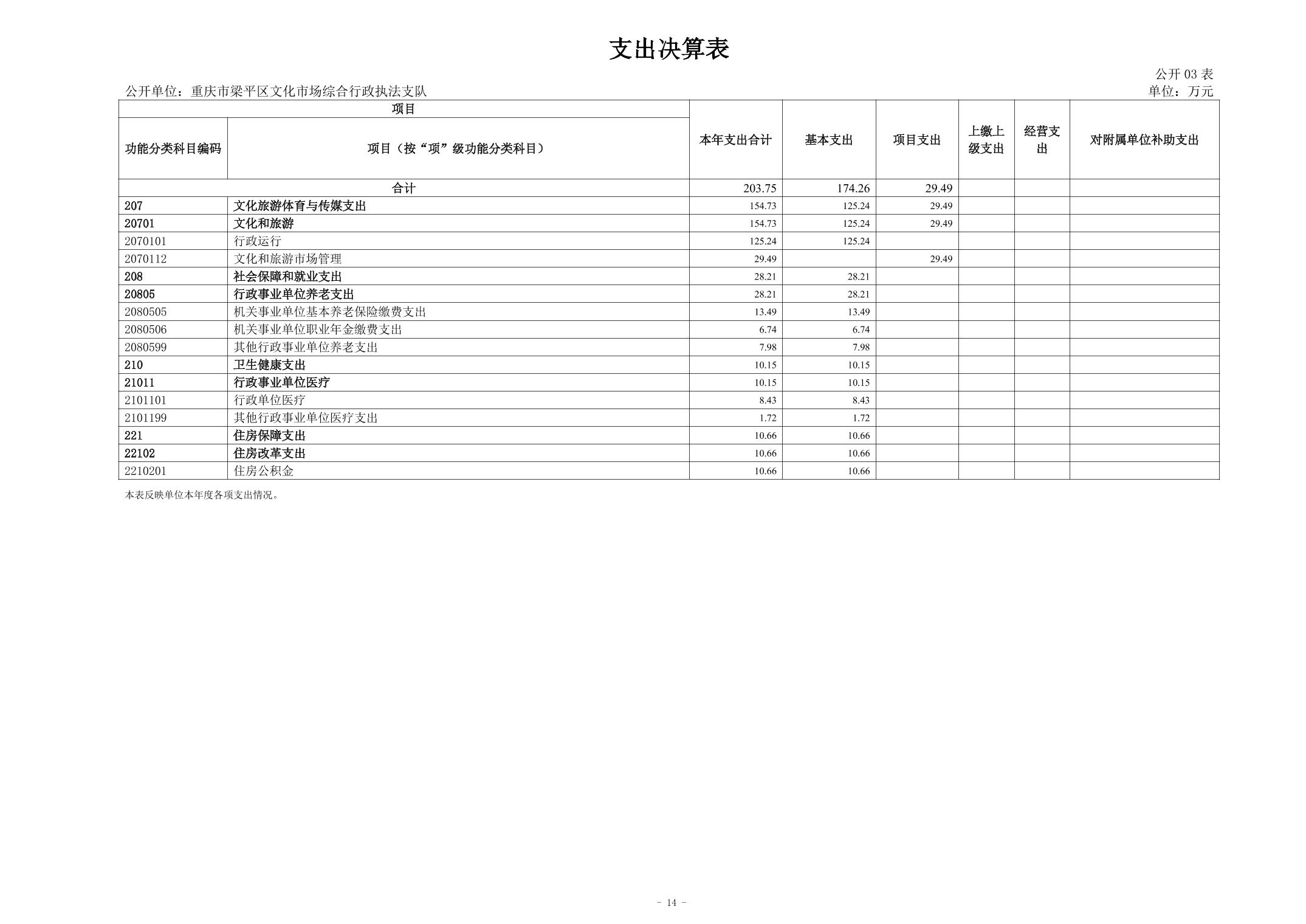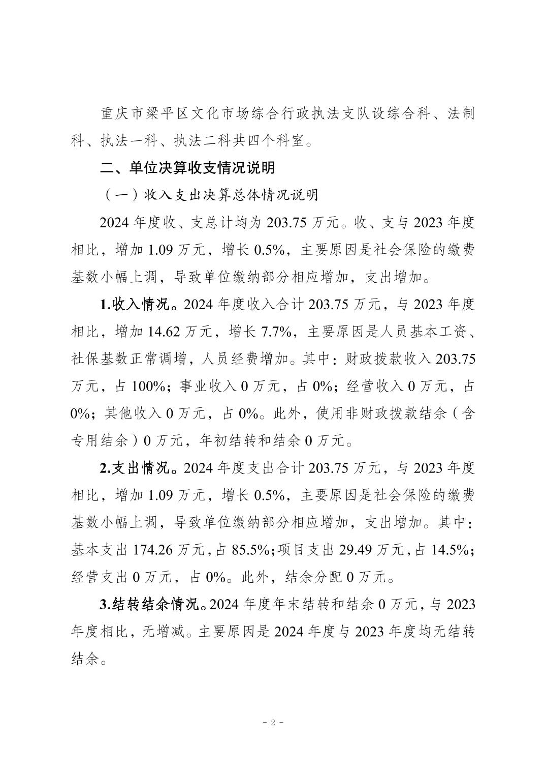 标题 | 重庆市梁平区文化市场综合行政执法支队2024年决算公开说明 |