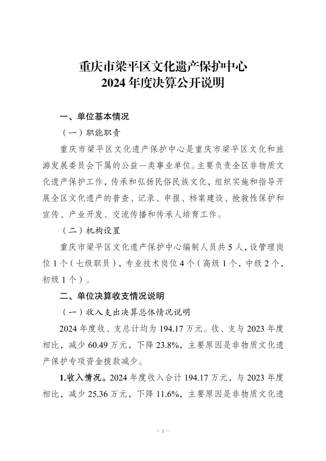 标题 | 重庆市梁平区文化遗产保护中心2024年决算公开说明 |