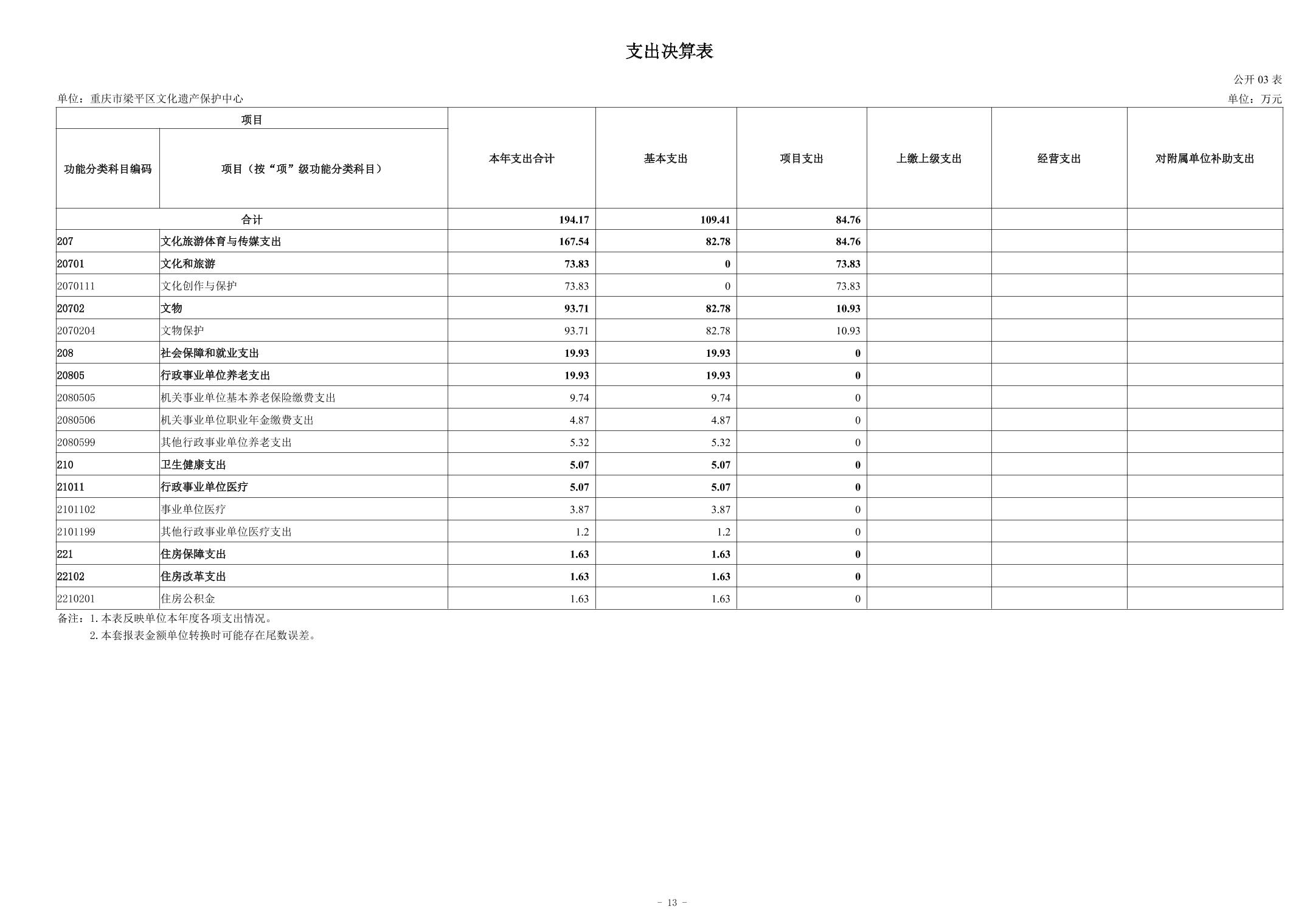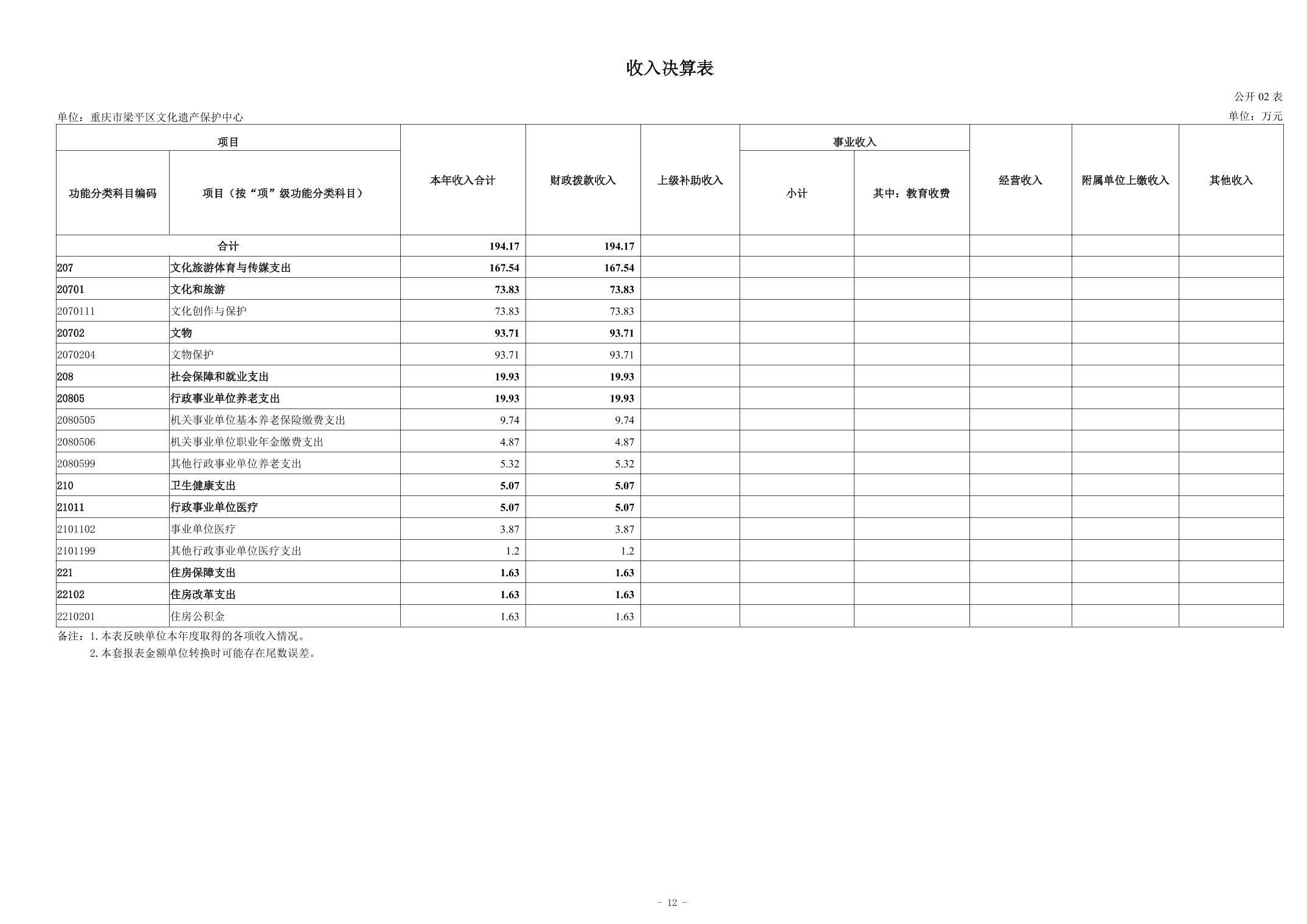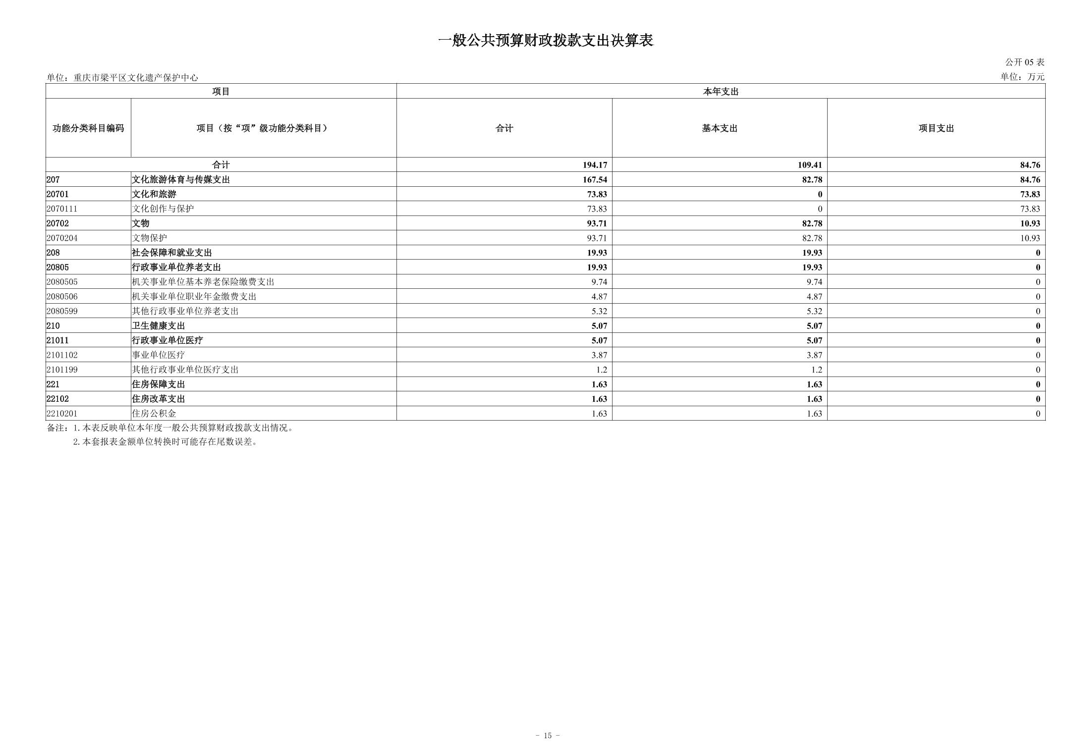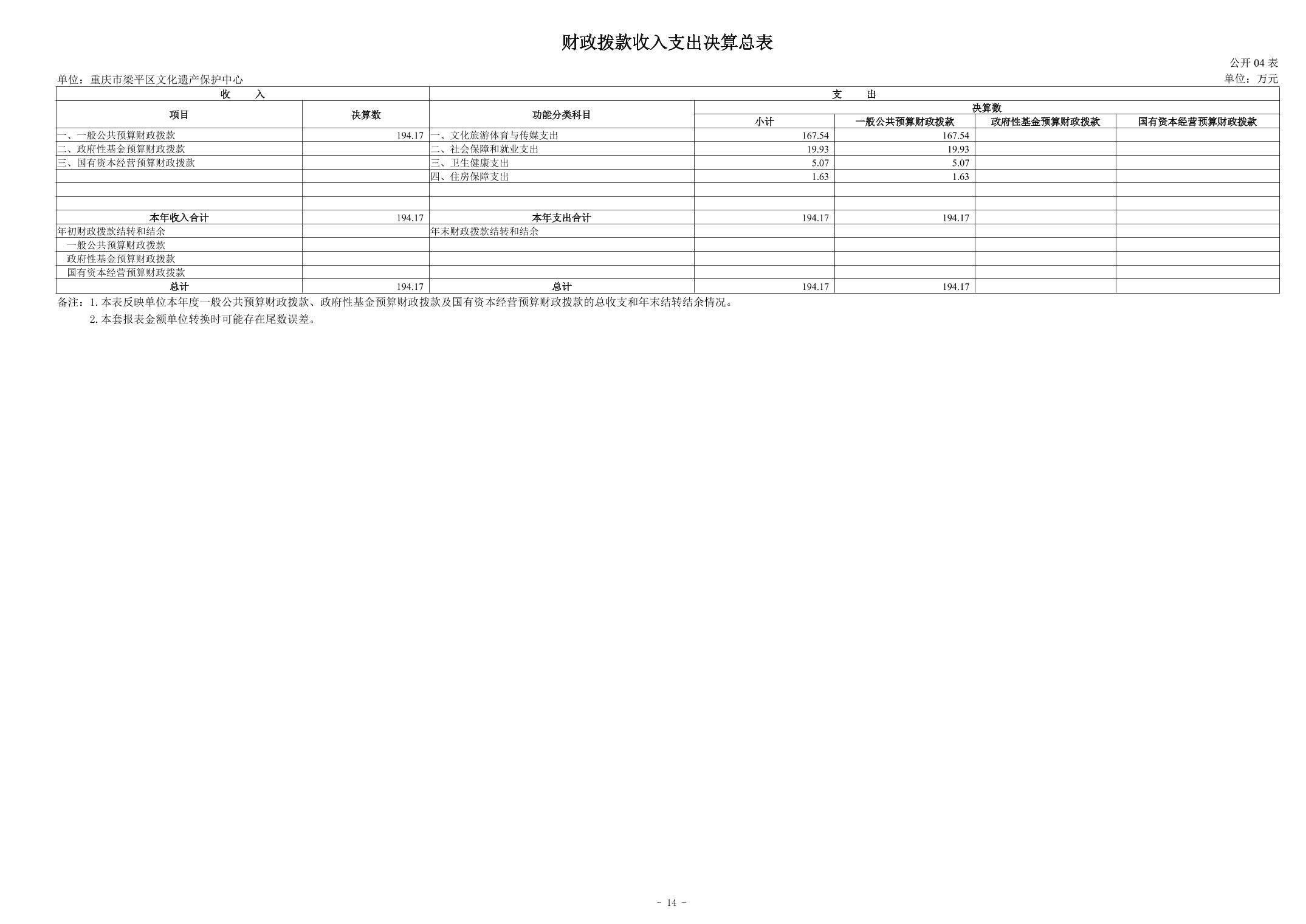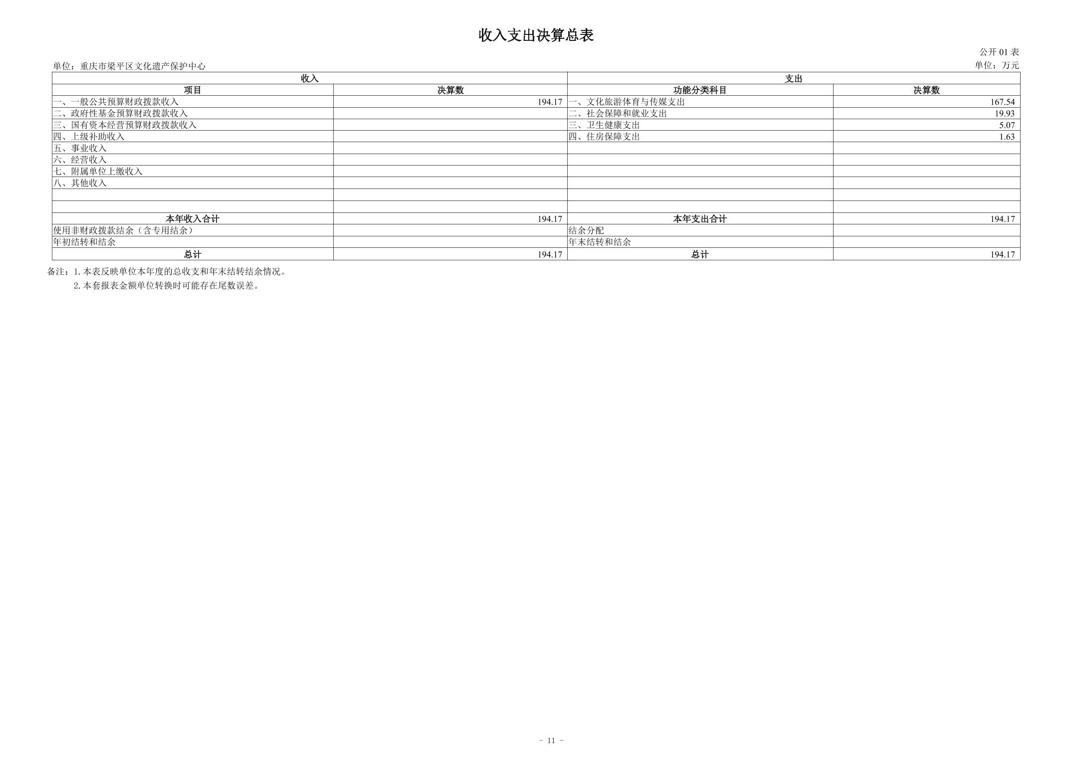标题 | 重庆市梁平区文化遗产保护中心2024年决算公开说明 | ||
