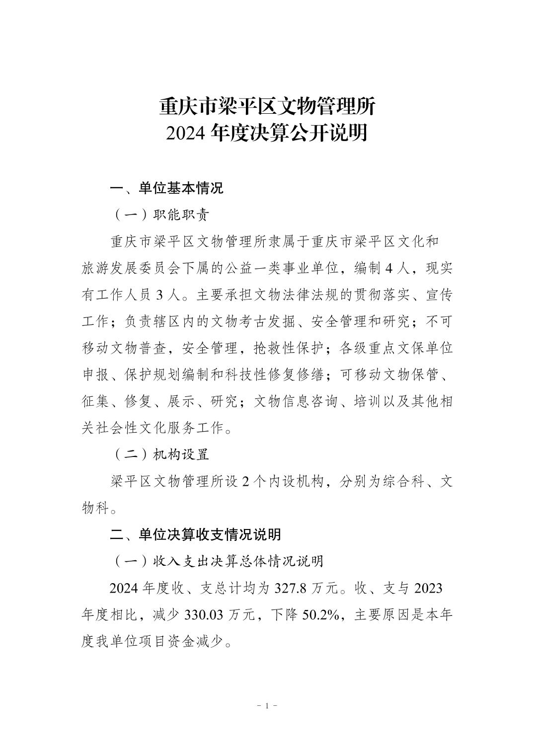 标题 | 重庆市梁平区文物管理所2024年决算公开说明 |
