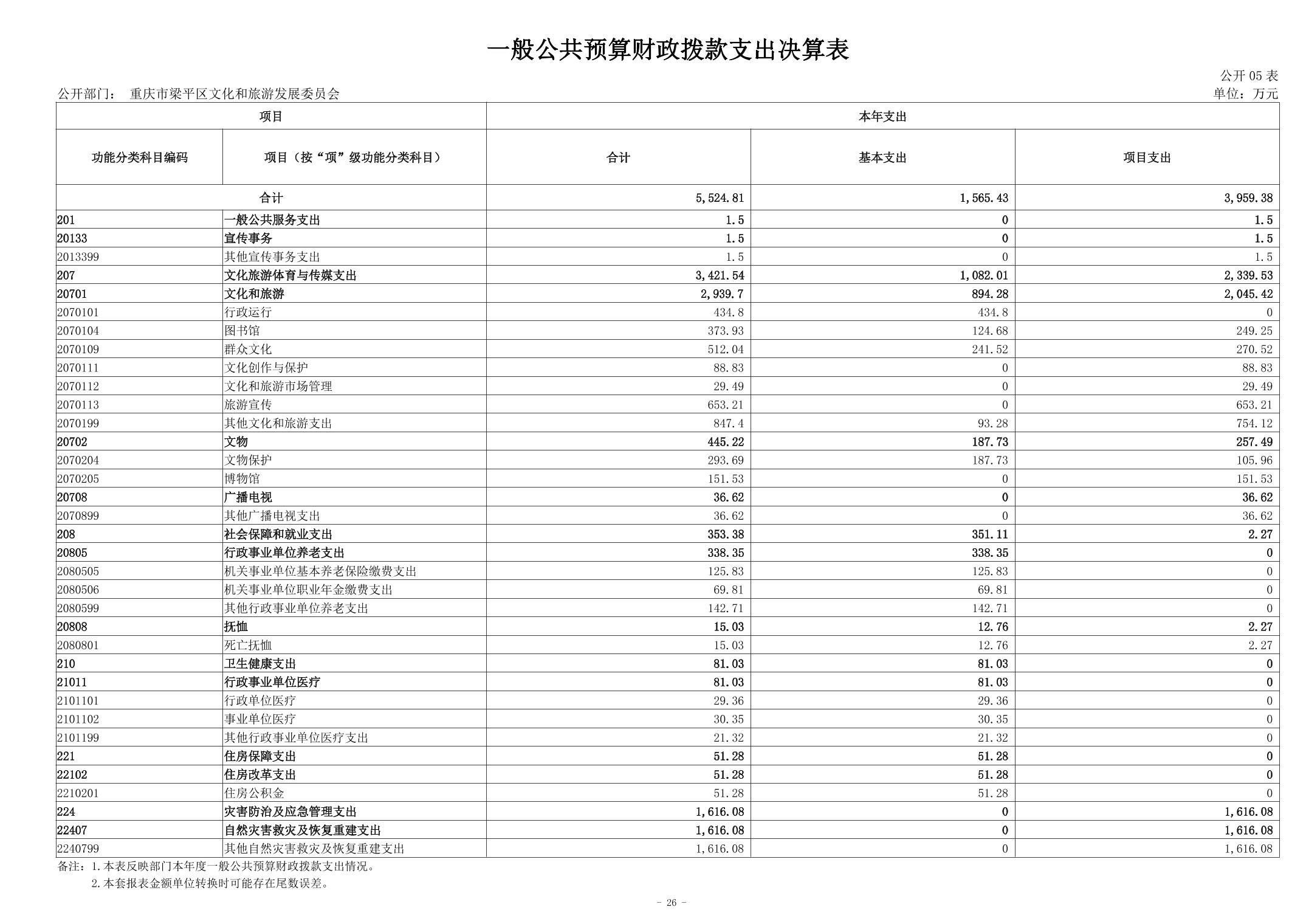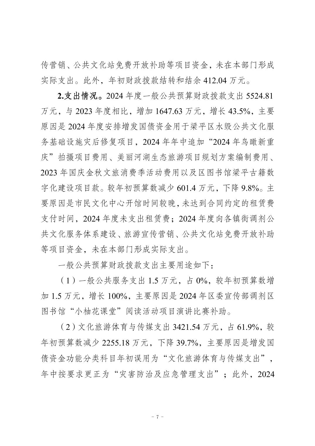 标题 | 重庆市梁平区文化和旅游发展委员会2024年决算公开说明 | ||