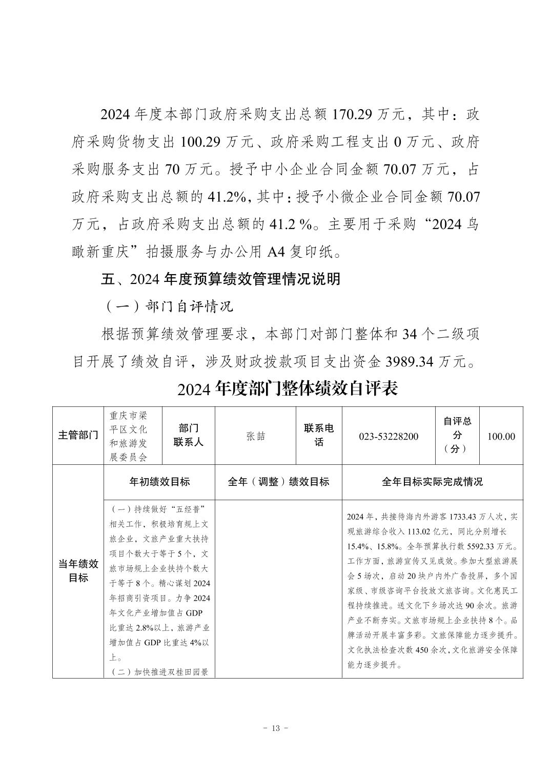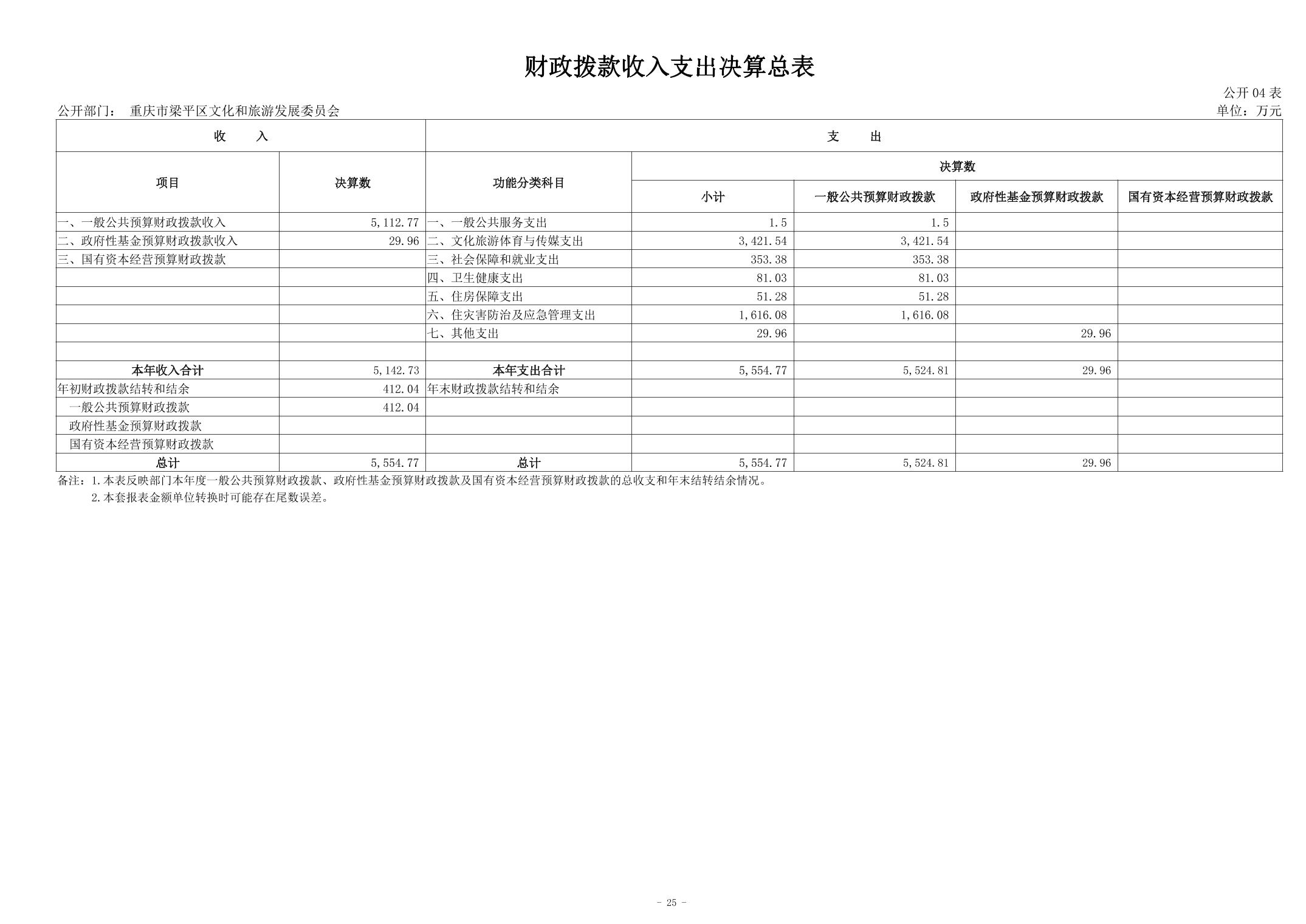 标题 | 重庆市梁平区文化和旅游发展委员会2024年决算公开说明 |