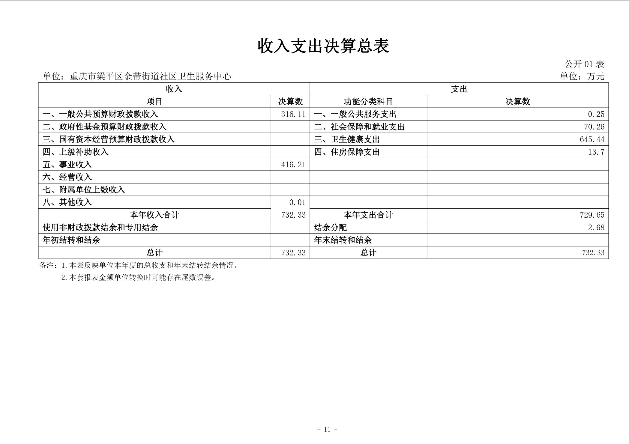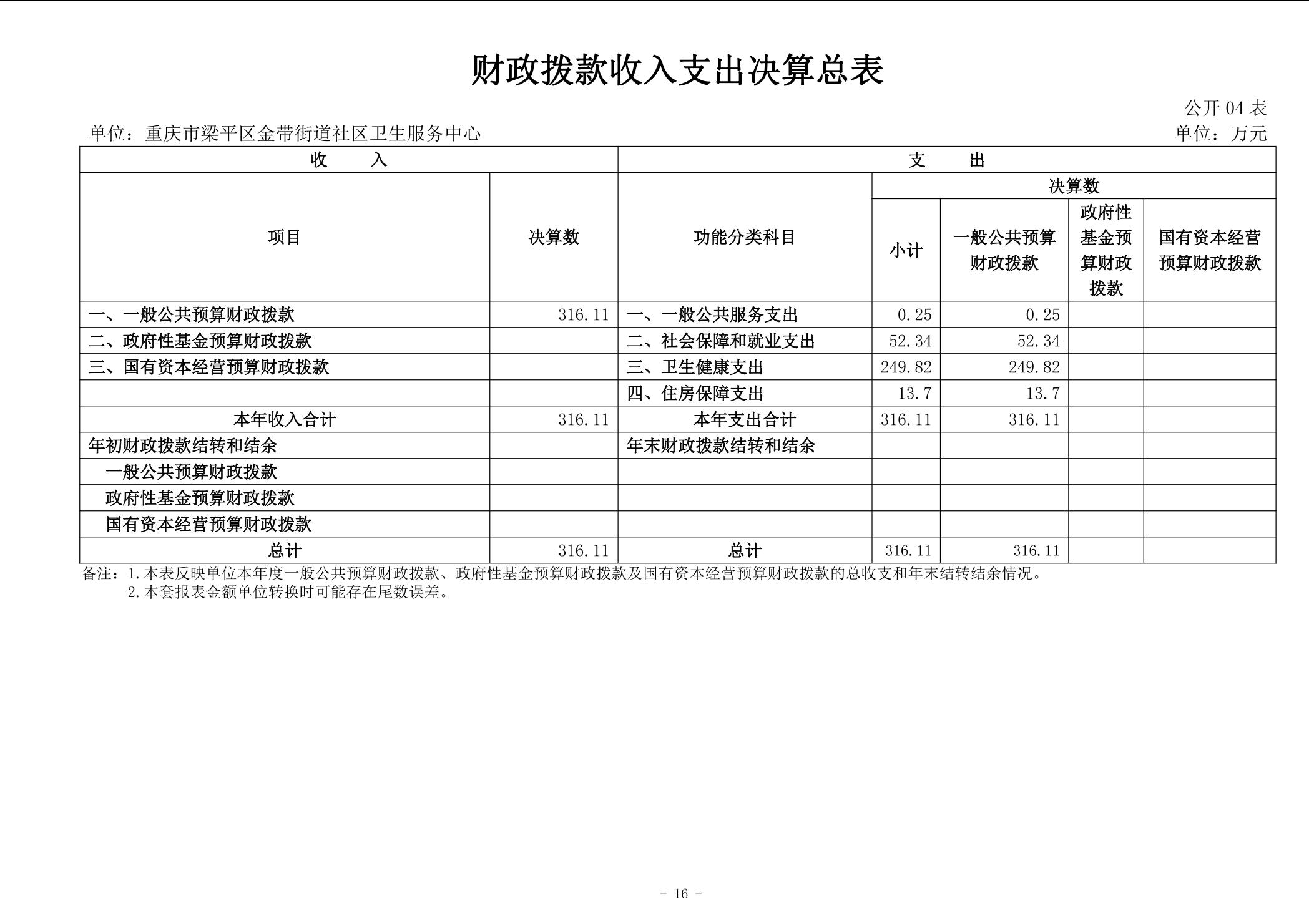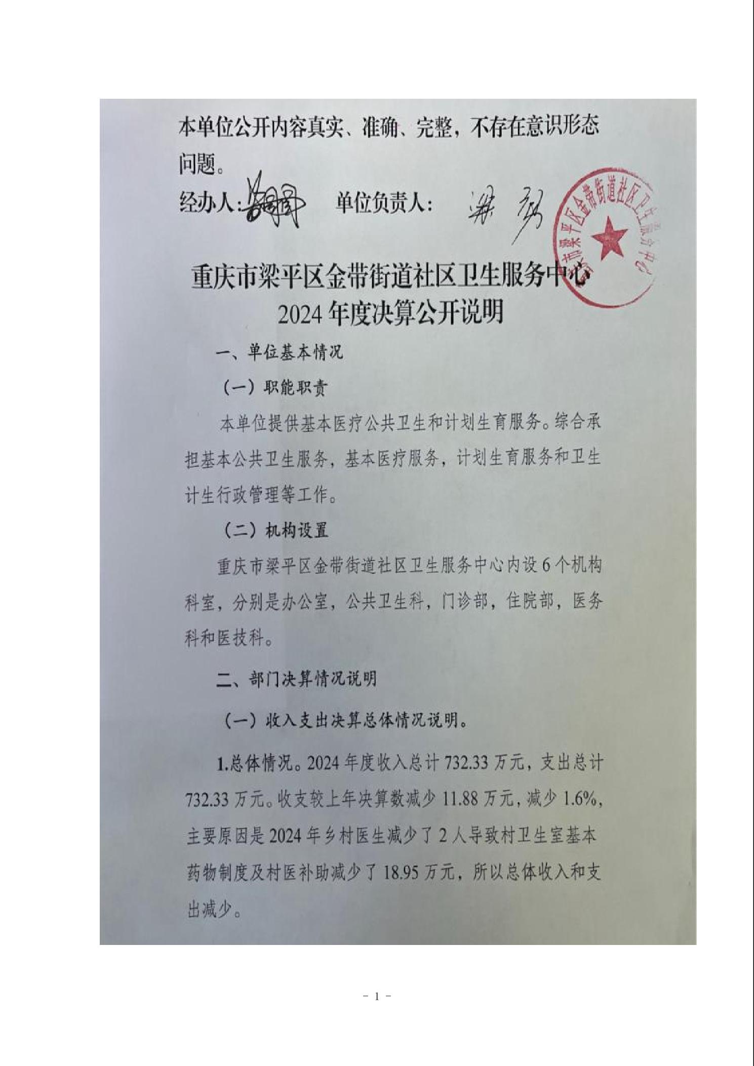 | 标题 | 重庆市梁平区金带街道社区卫生服务中心2024年度决算公开说明 |