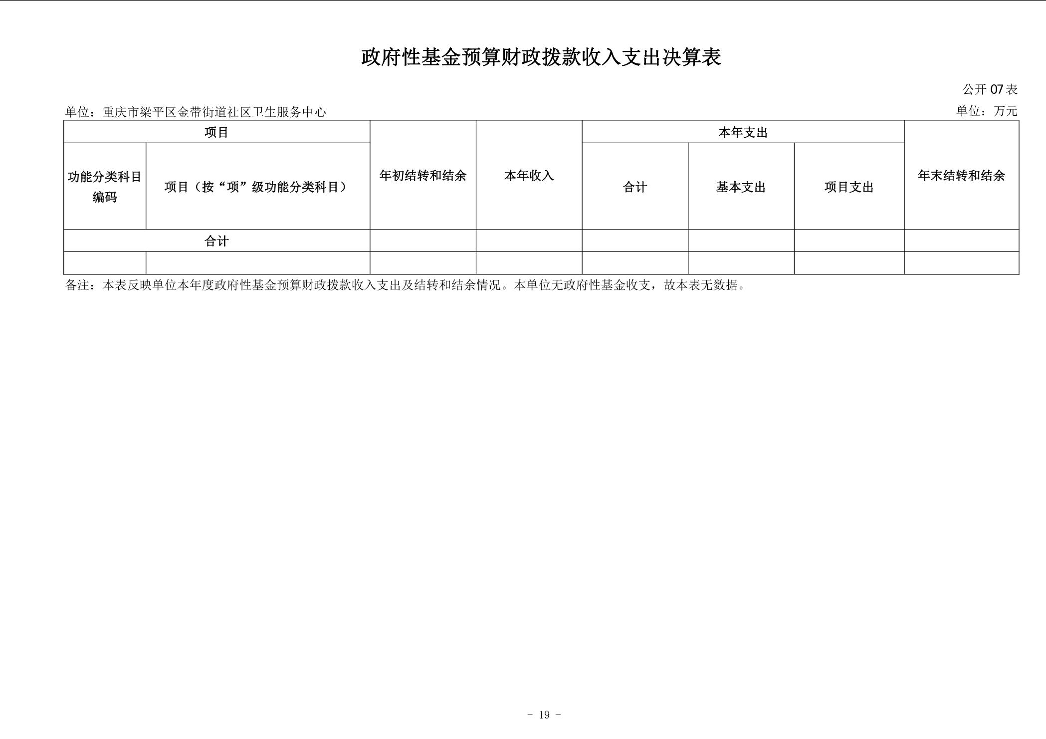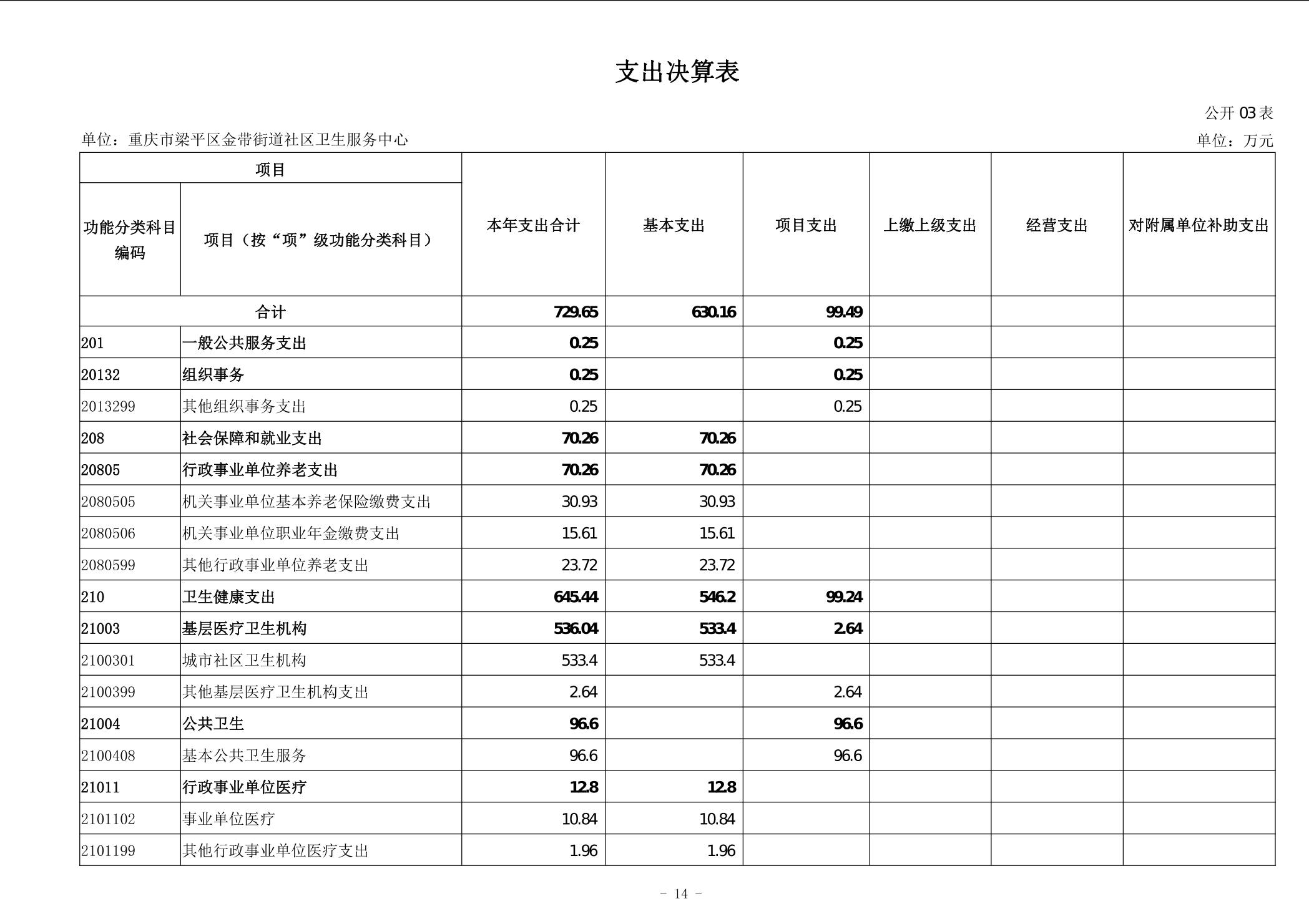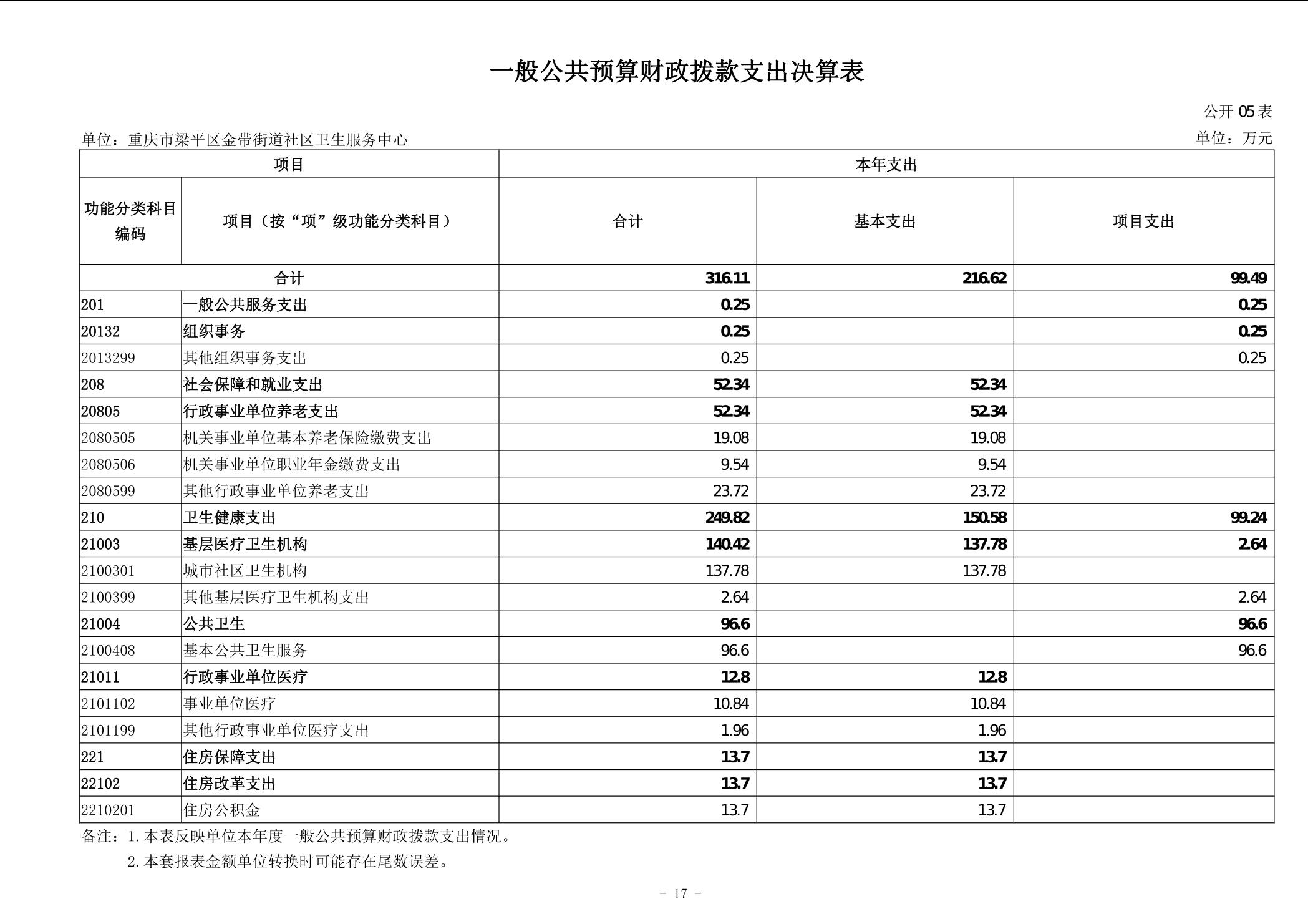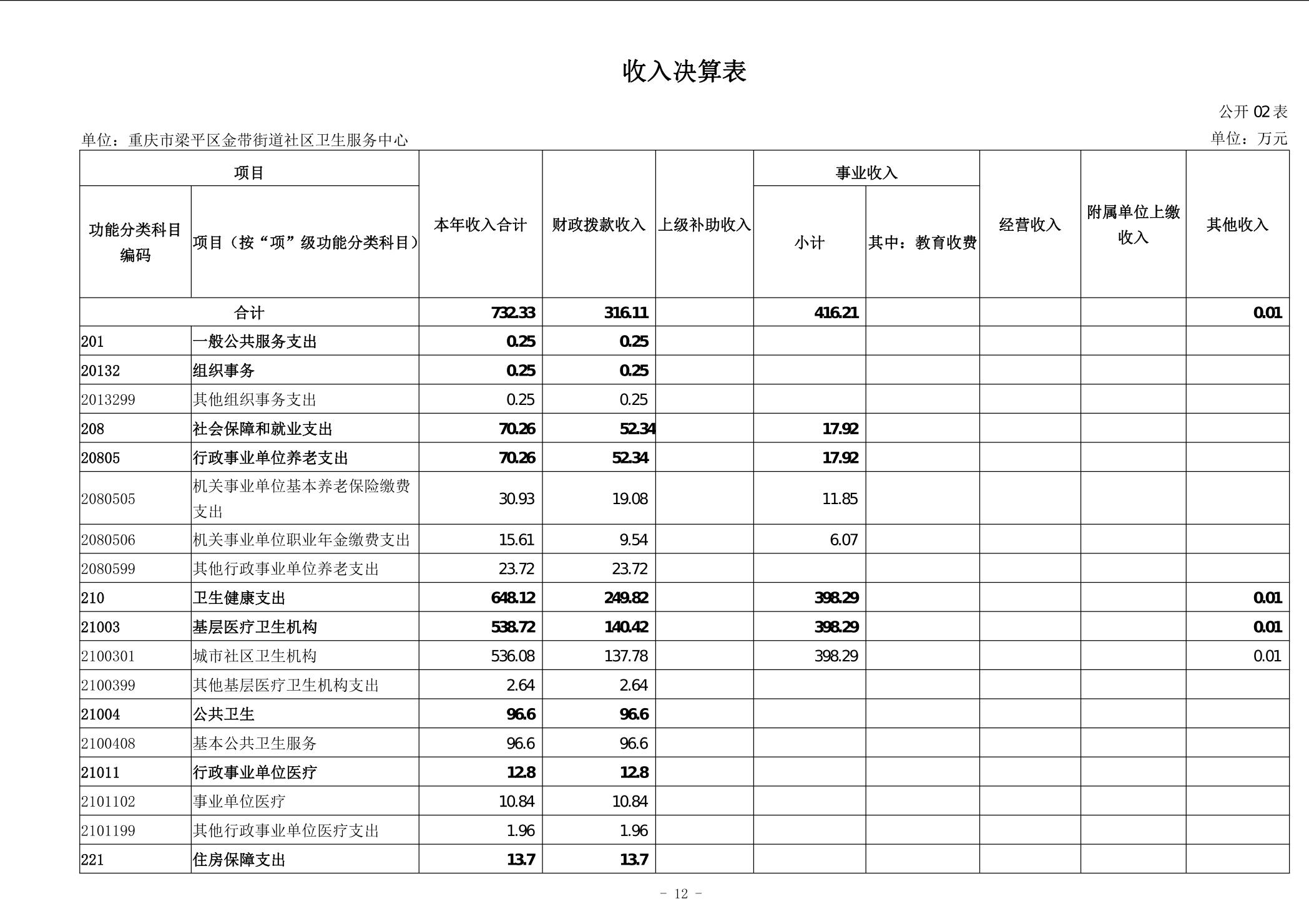 | 标题 | 重庆市梁平区金带街道社区卫生服务中心2024年度决算公开说明 |