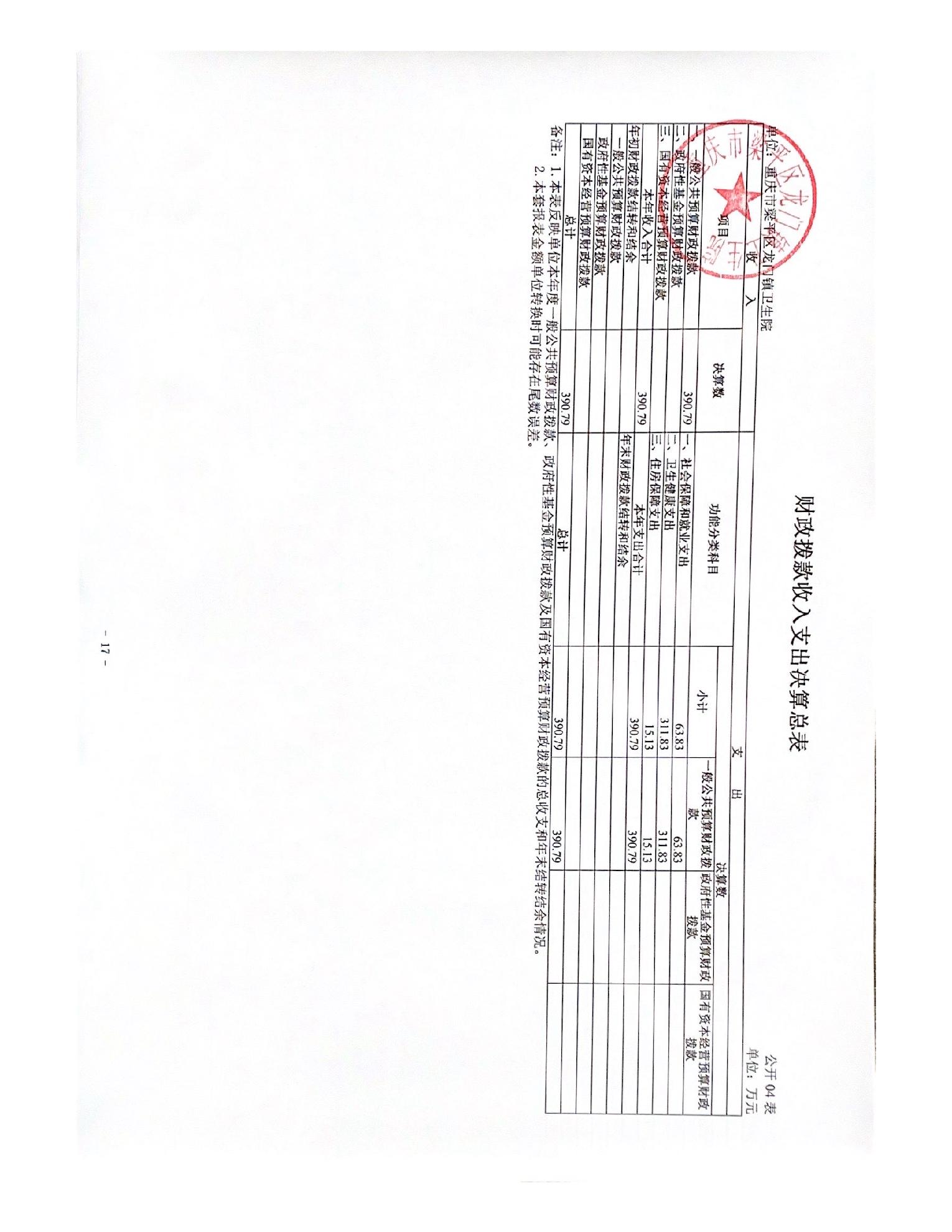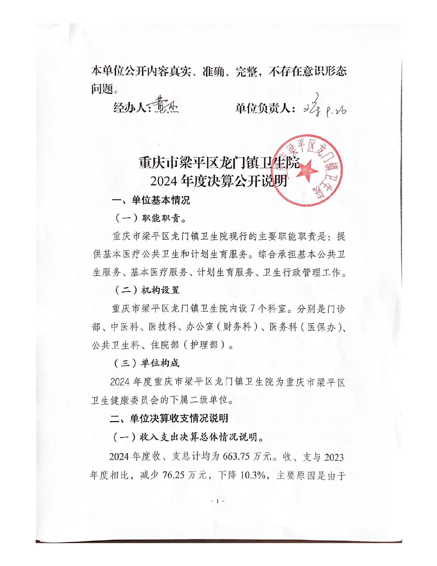 | 标题 | 重庆市梁平区龙门镇卫生院2024年度决算公开说明 |