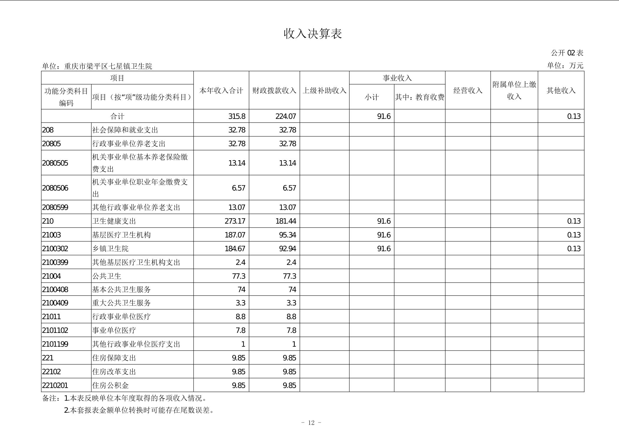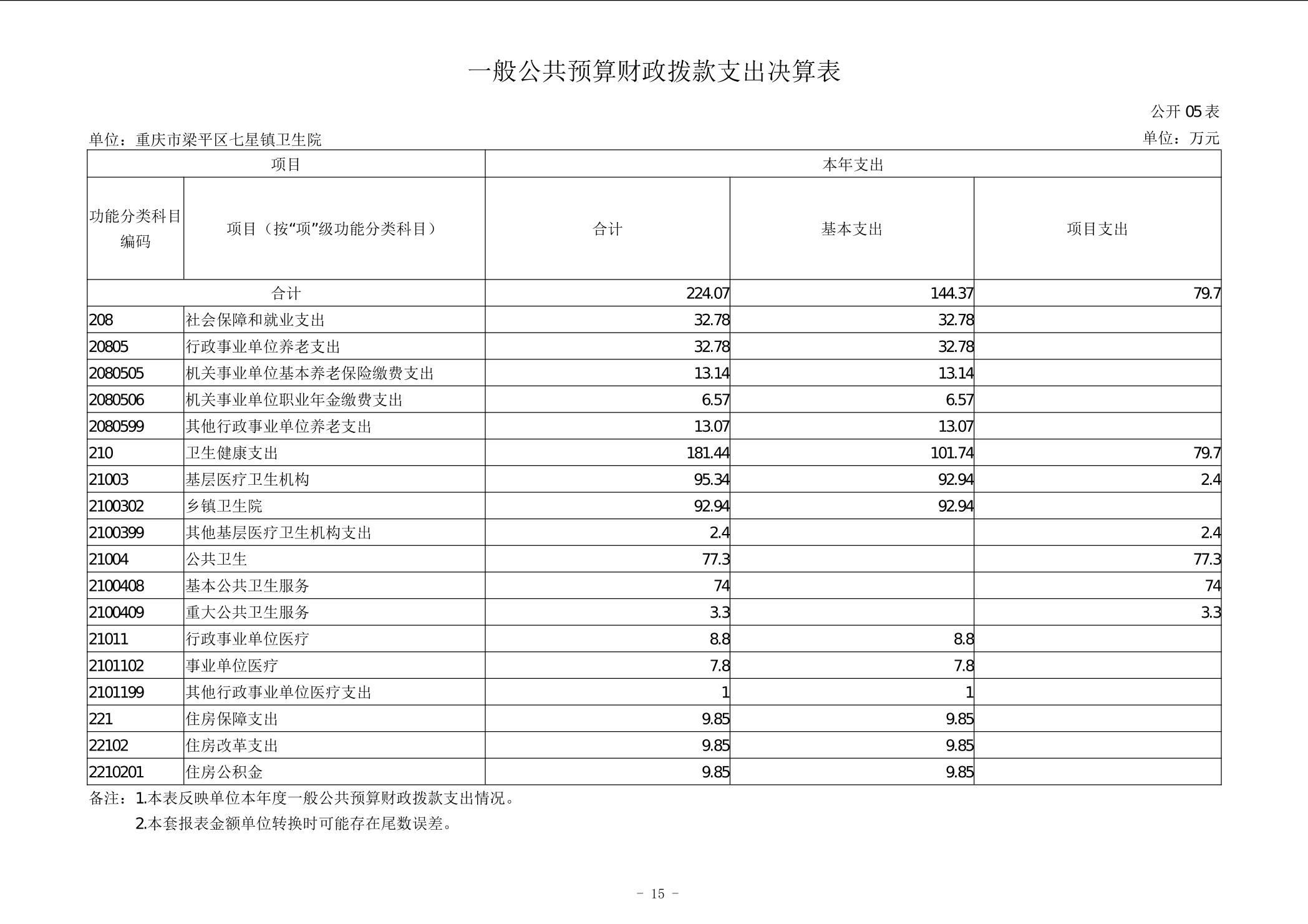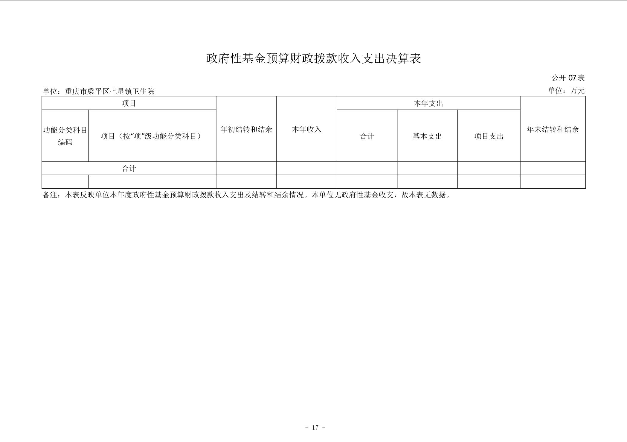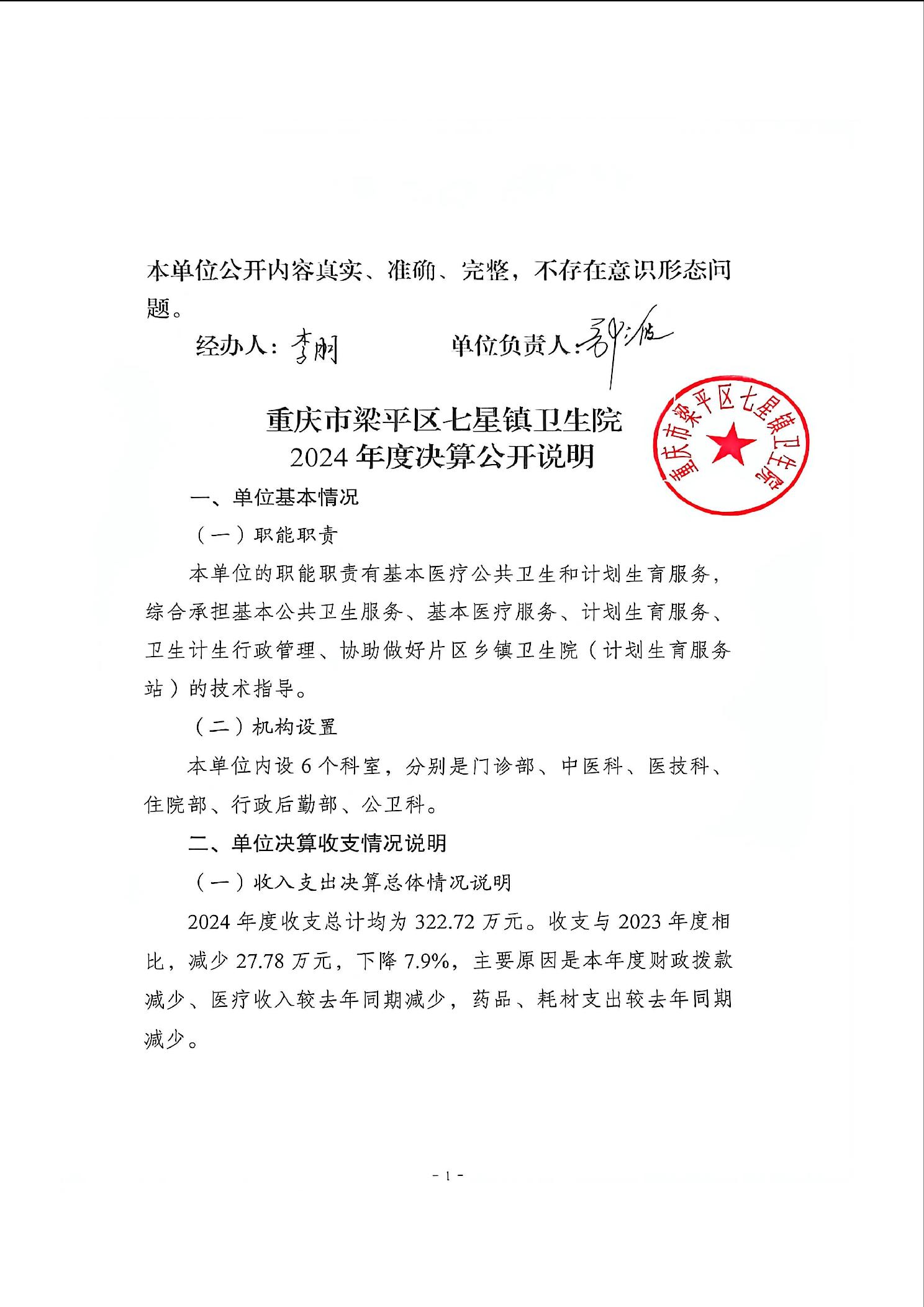 | 标题 | 重庆市梁平区七星镇卫生院2024年度决算公开说明 |
