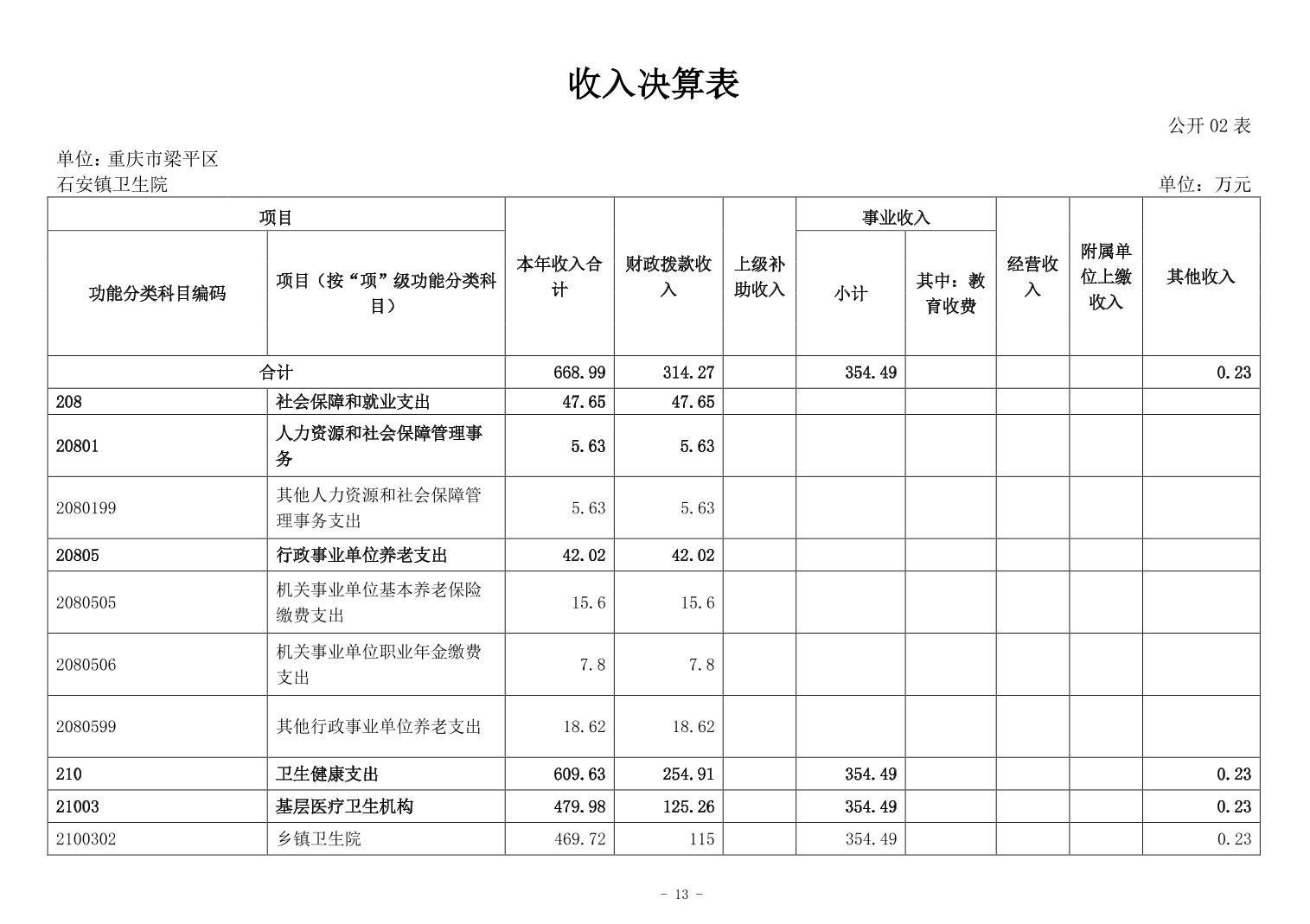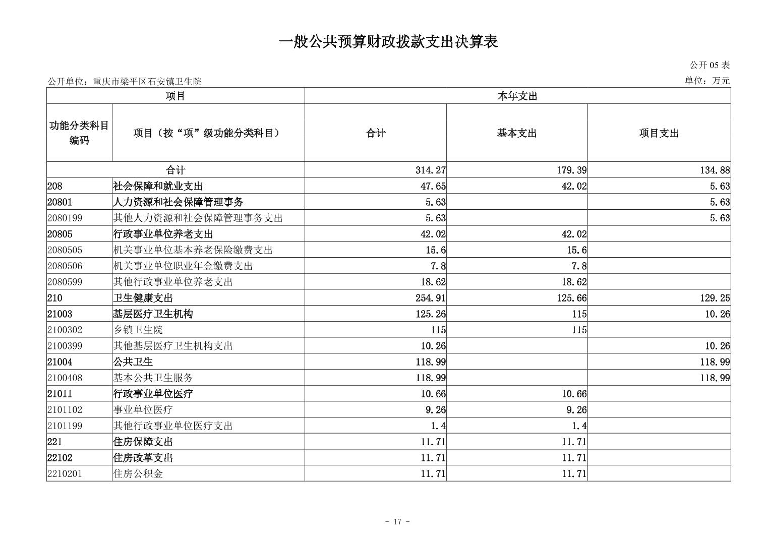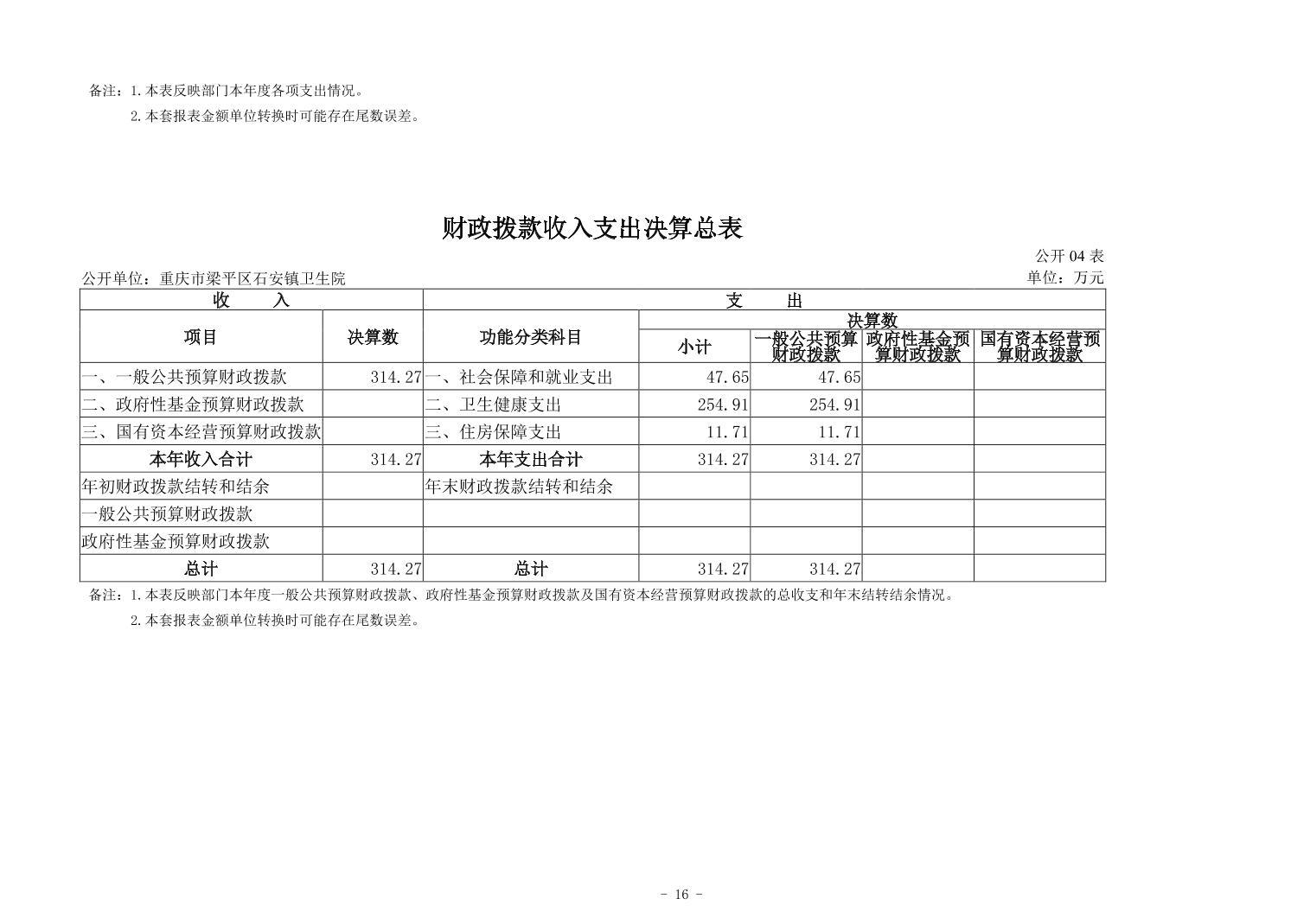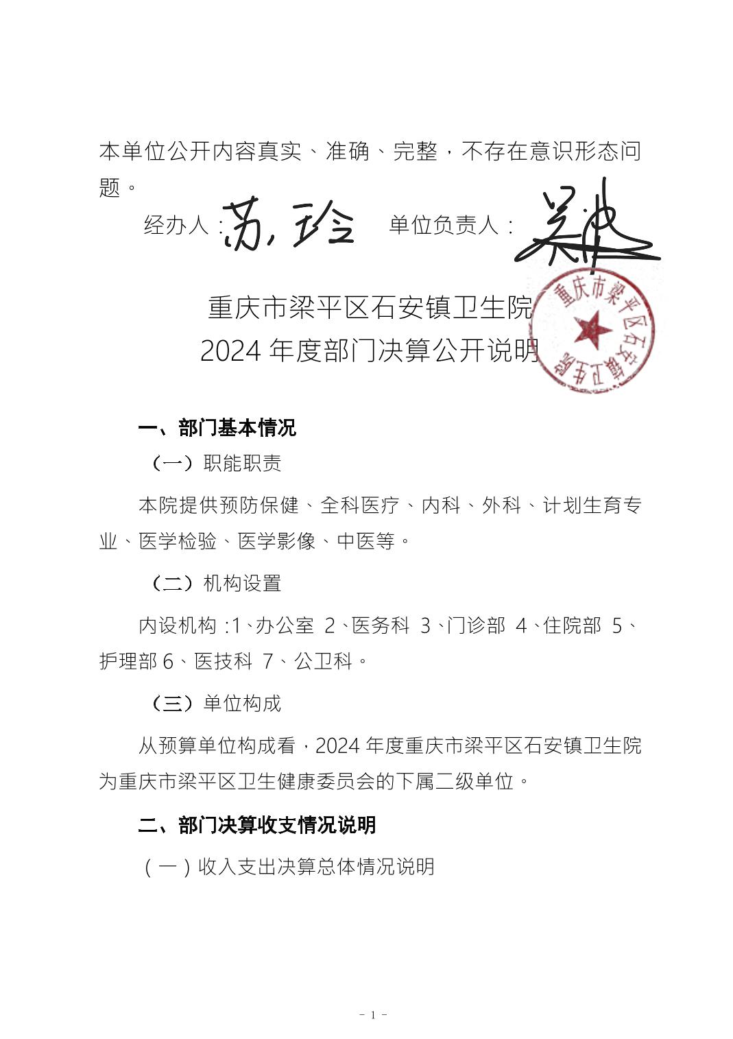 | 标题 | 重庆市梁平区石安镇卫生院2024年度部门决算公开说明 |