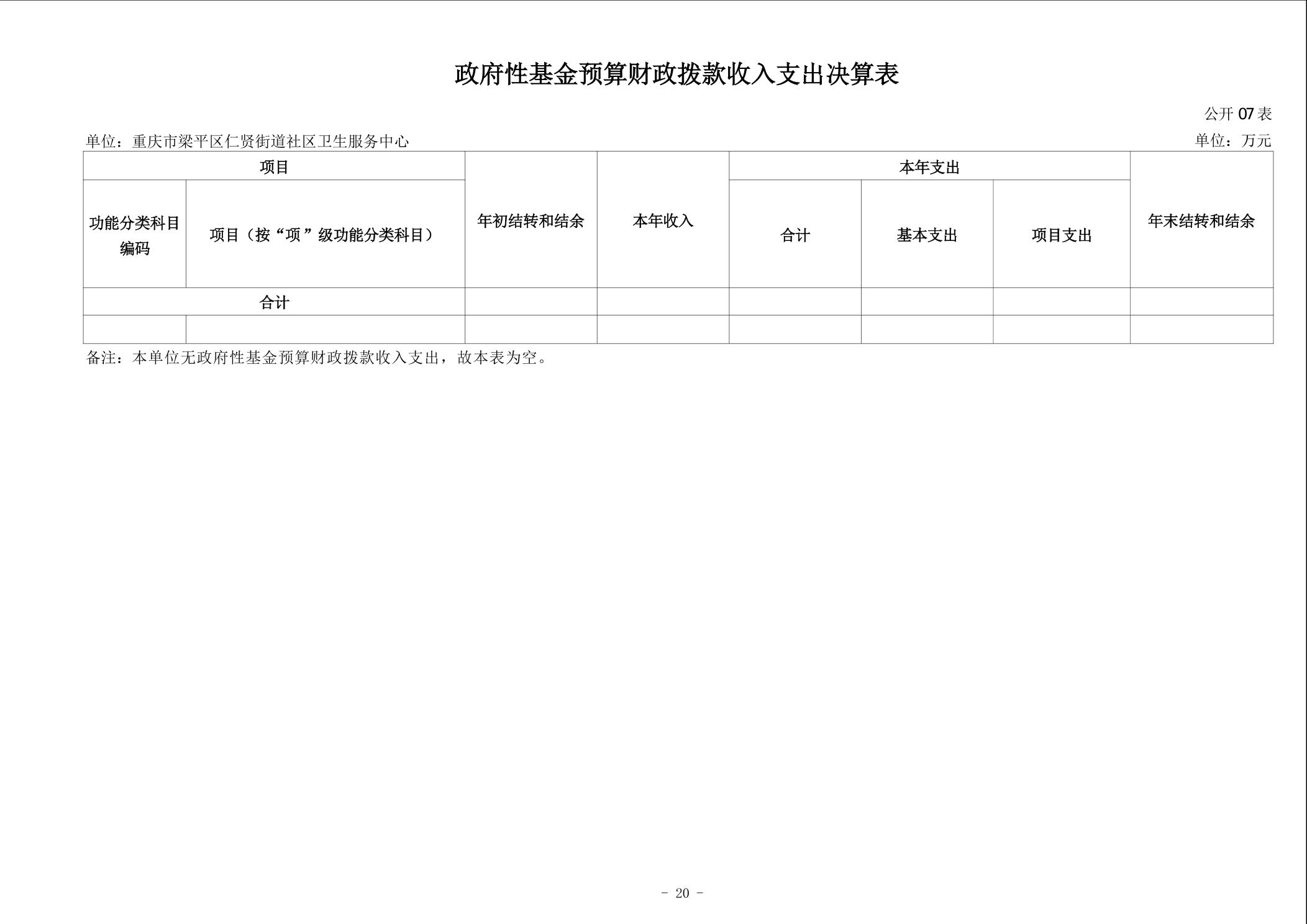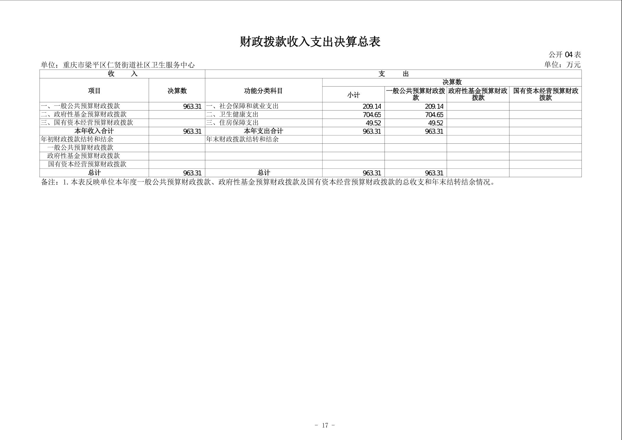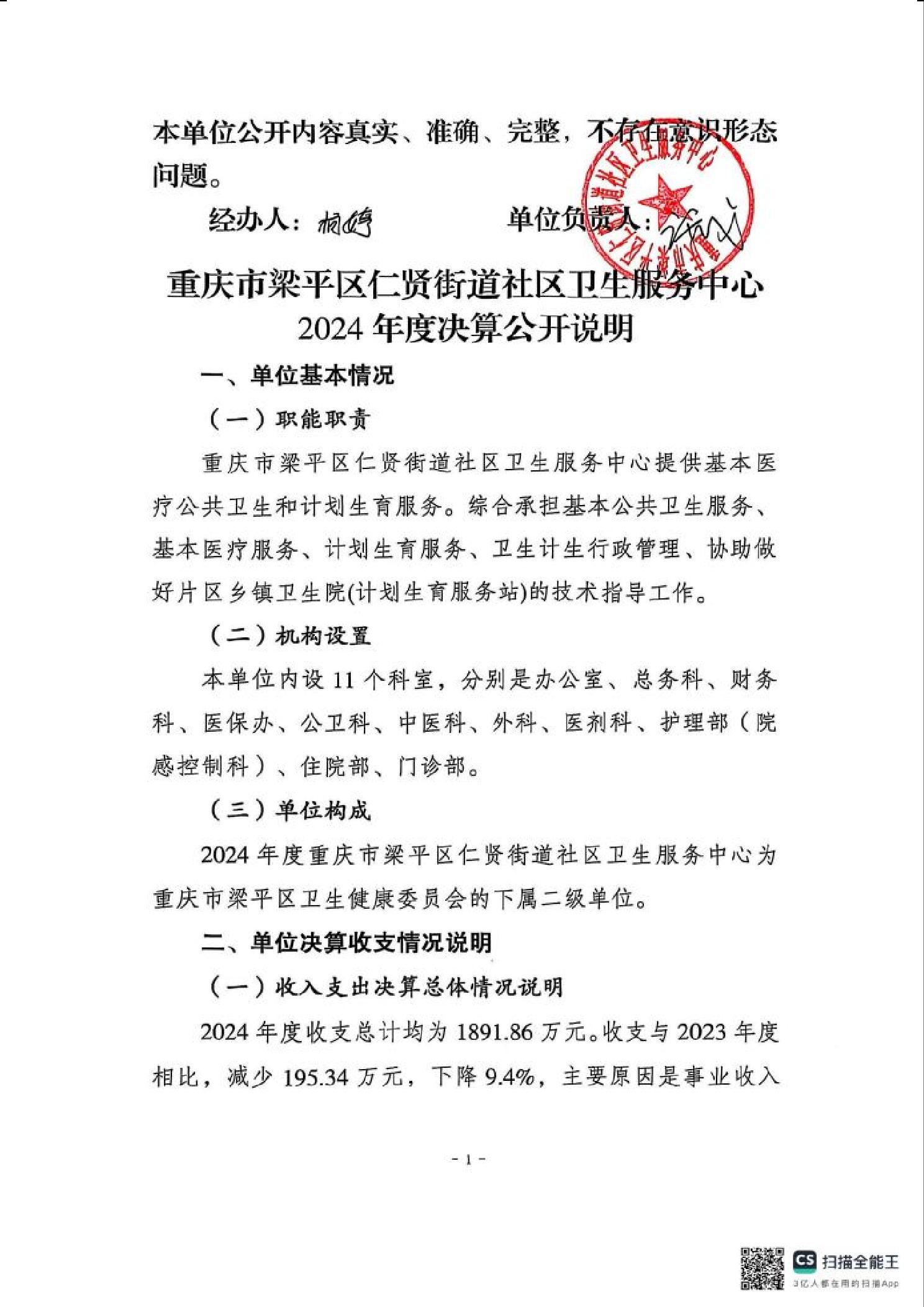 | 标题 | 重庆市梁平区仁贤街道社区卫生服务中心2024年度决算公开说明 |
