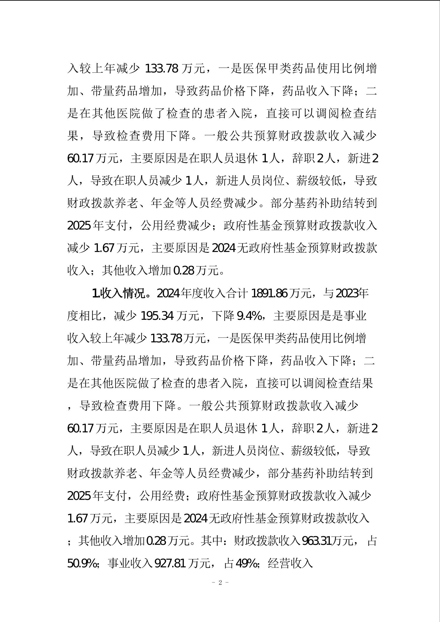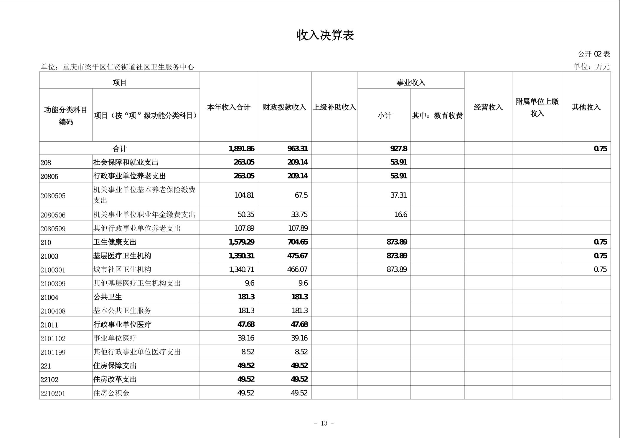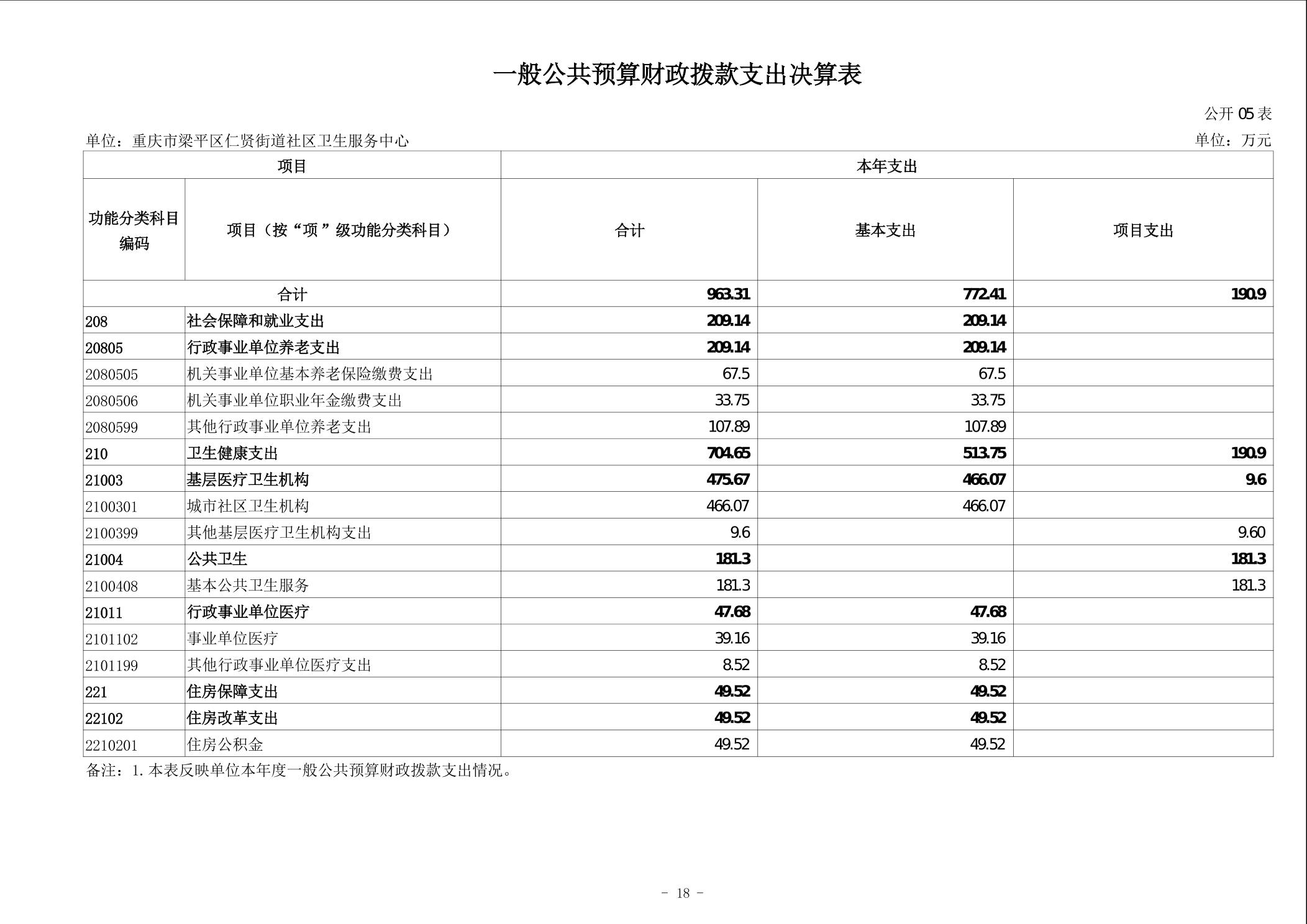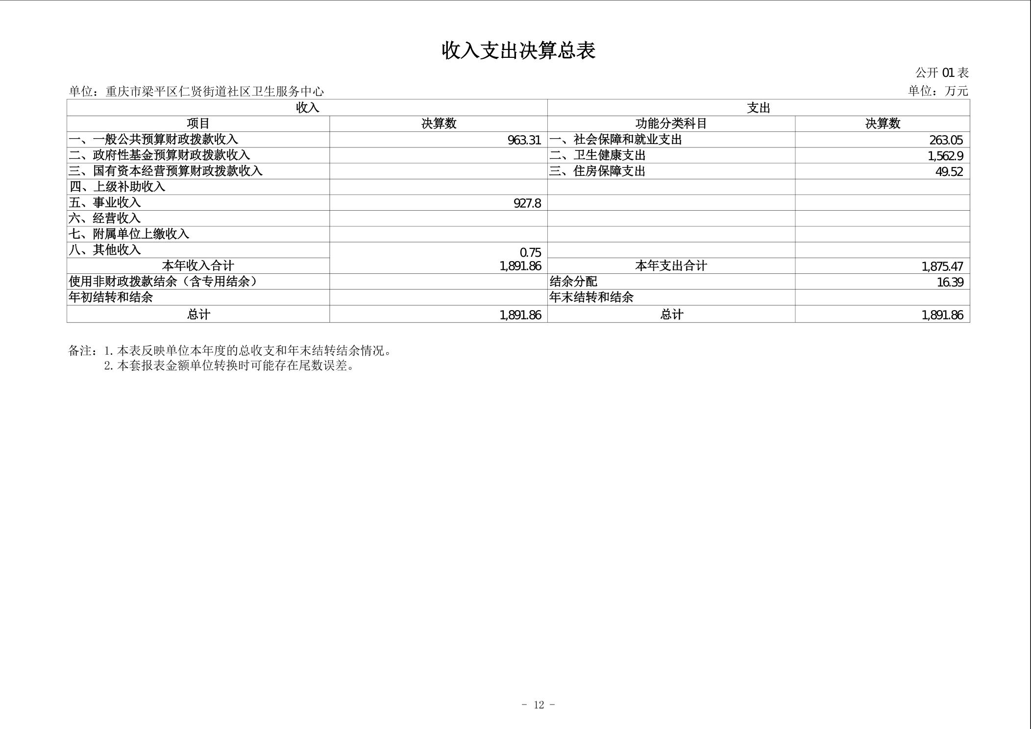 | 标题 | 重庆市梁平区仁贤街道社区卫生服务中心2024年度决算公开说明 |