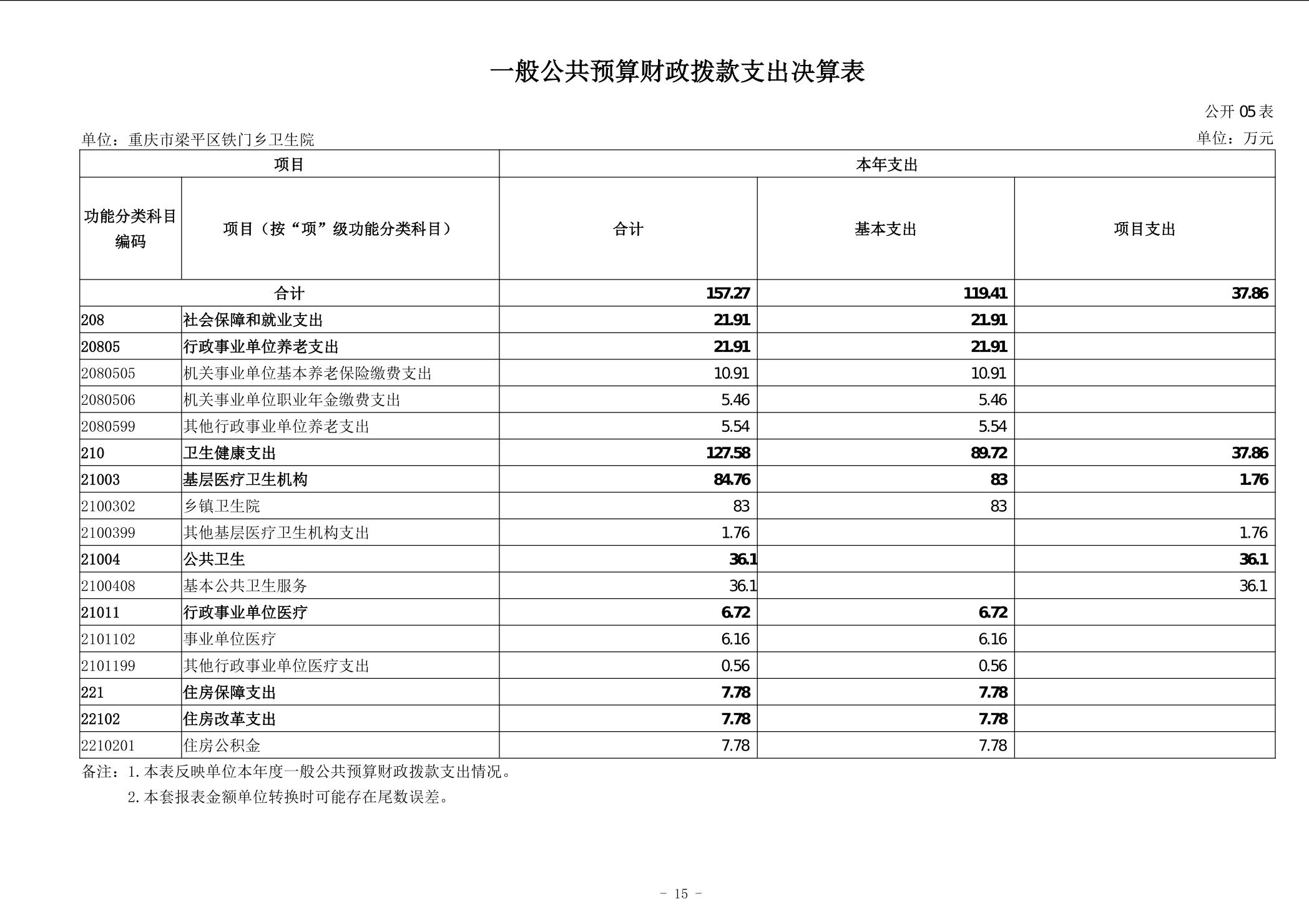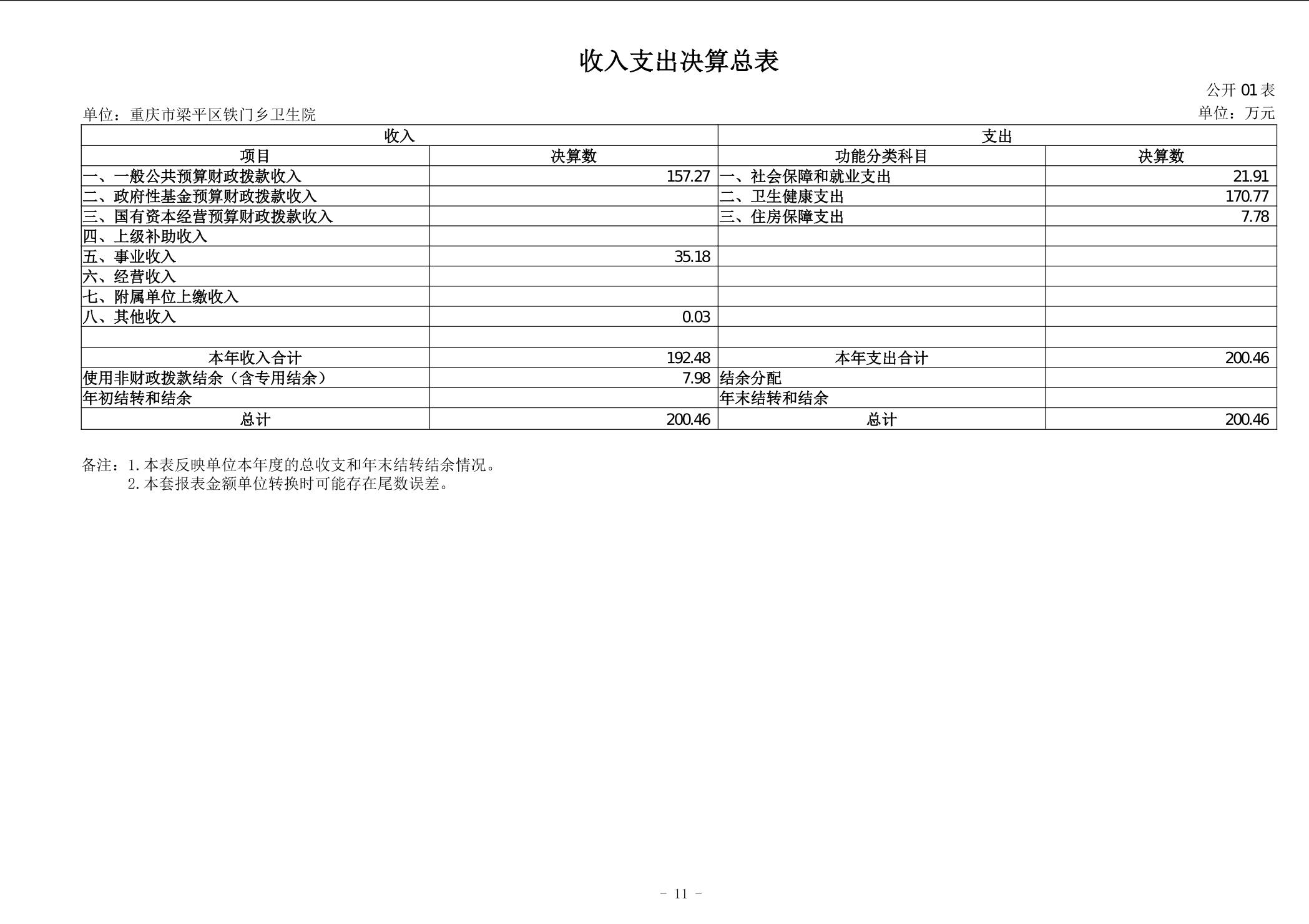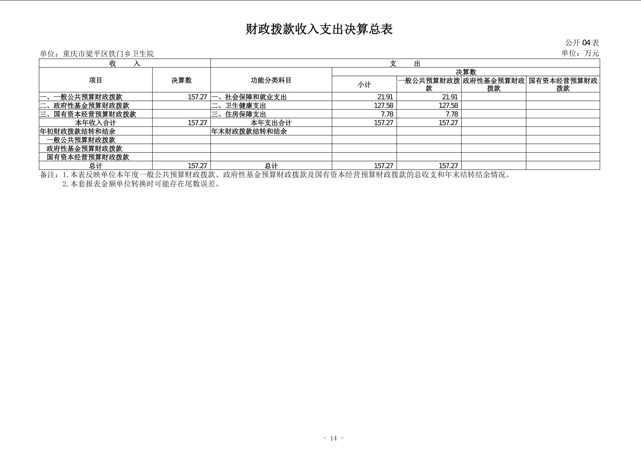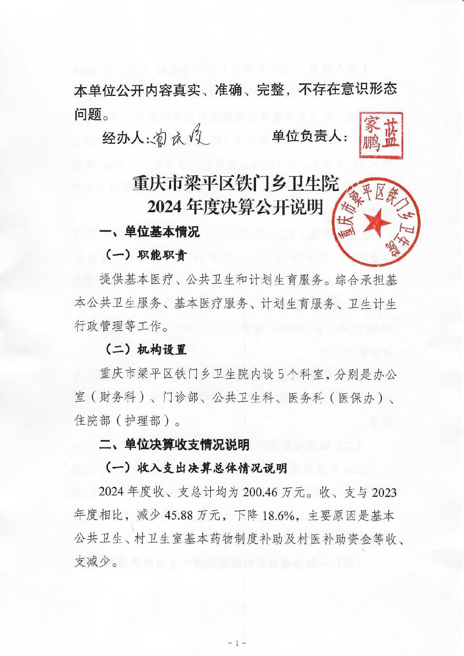 标题 | 重庆市梁平区铁门乡卫生院2024年度决算公开说明 |