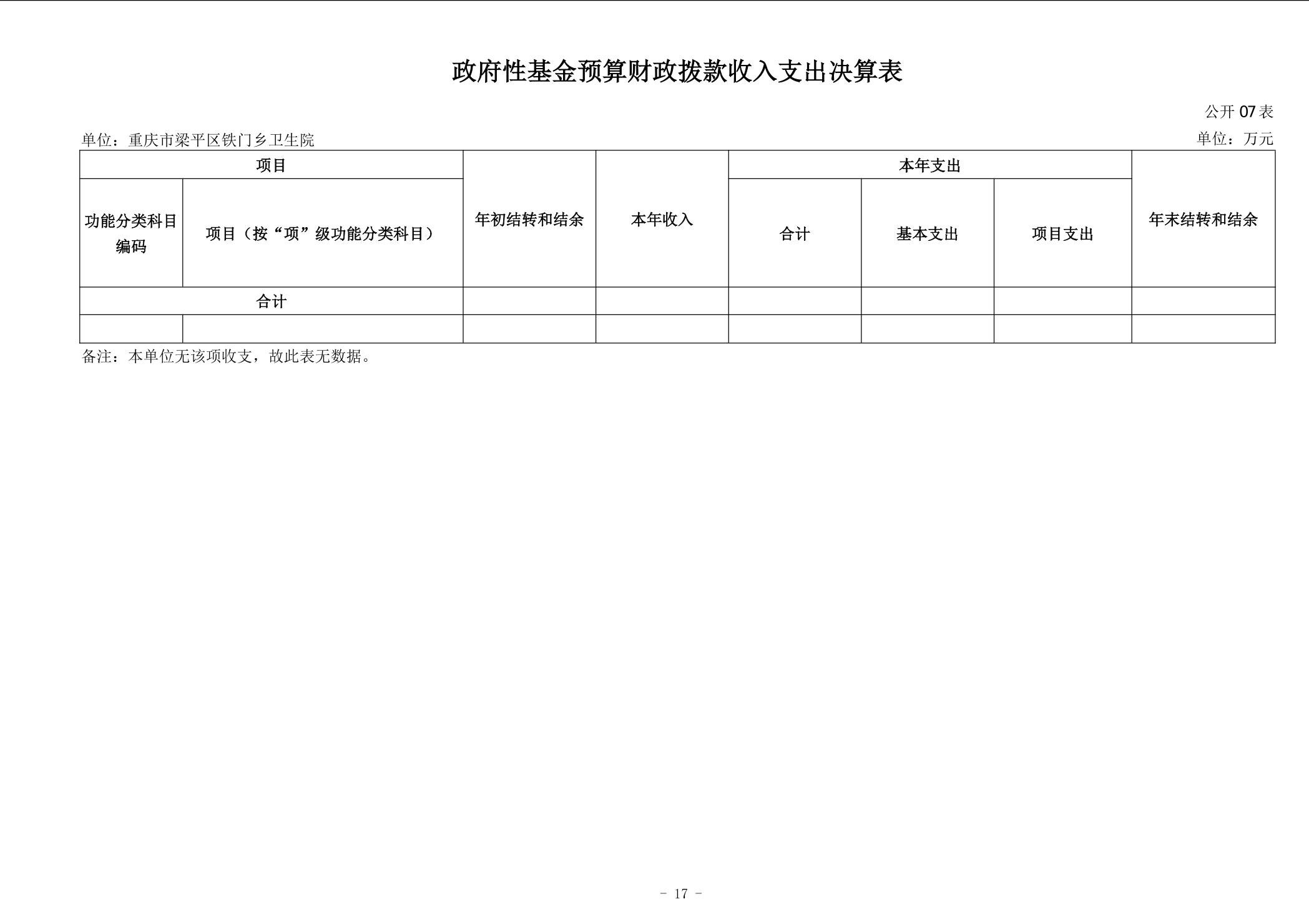 标题 | 重庆市梁平区铁门乡卫生院2024年度决算公开说明 | ||