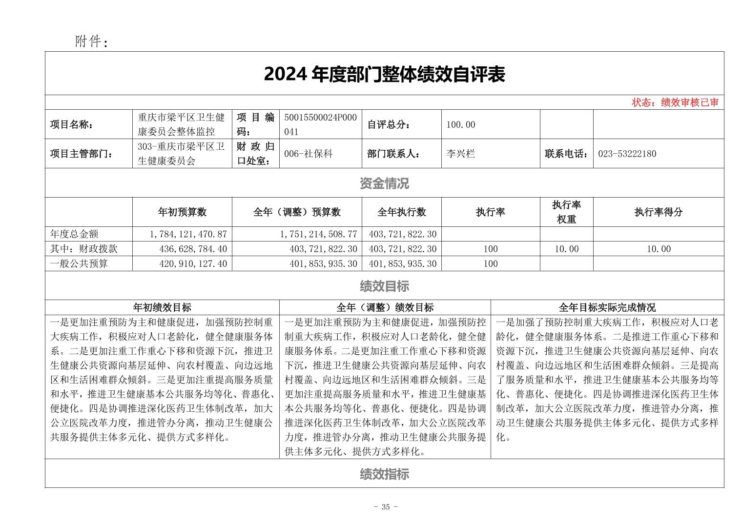 标题 | 重庆市梁平区卫生健康委员会2024年度决算公开说明(部门) |