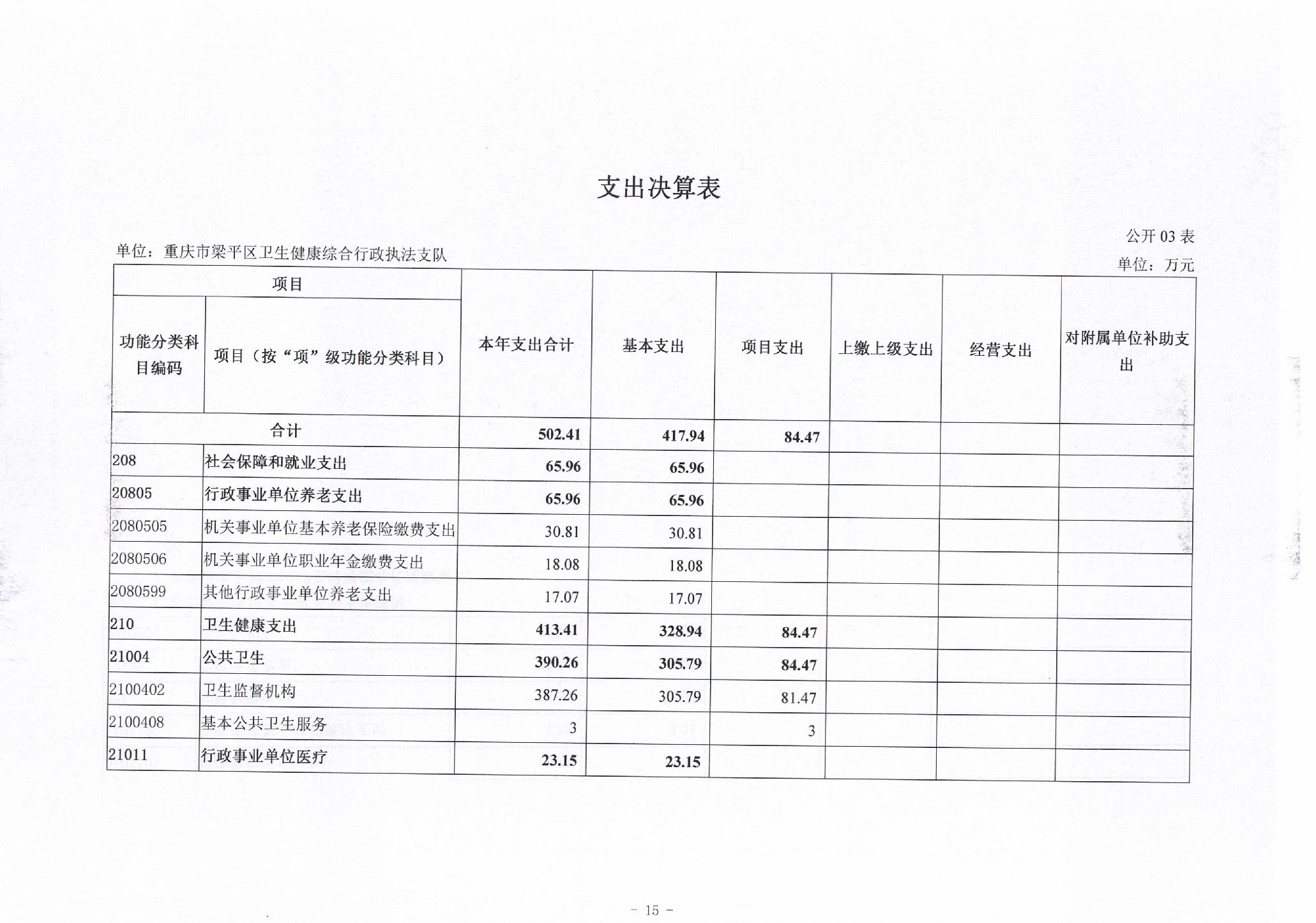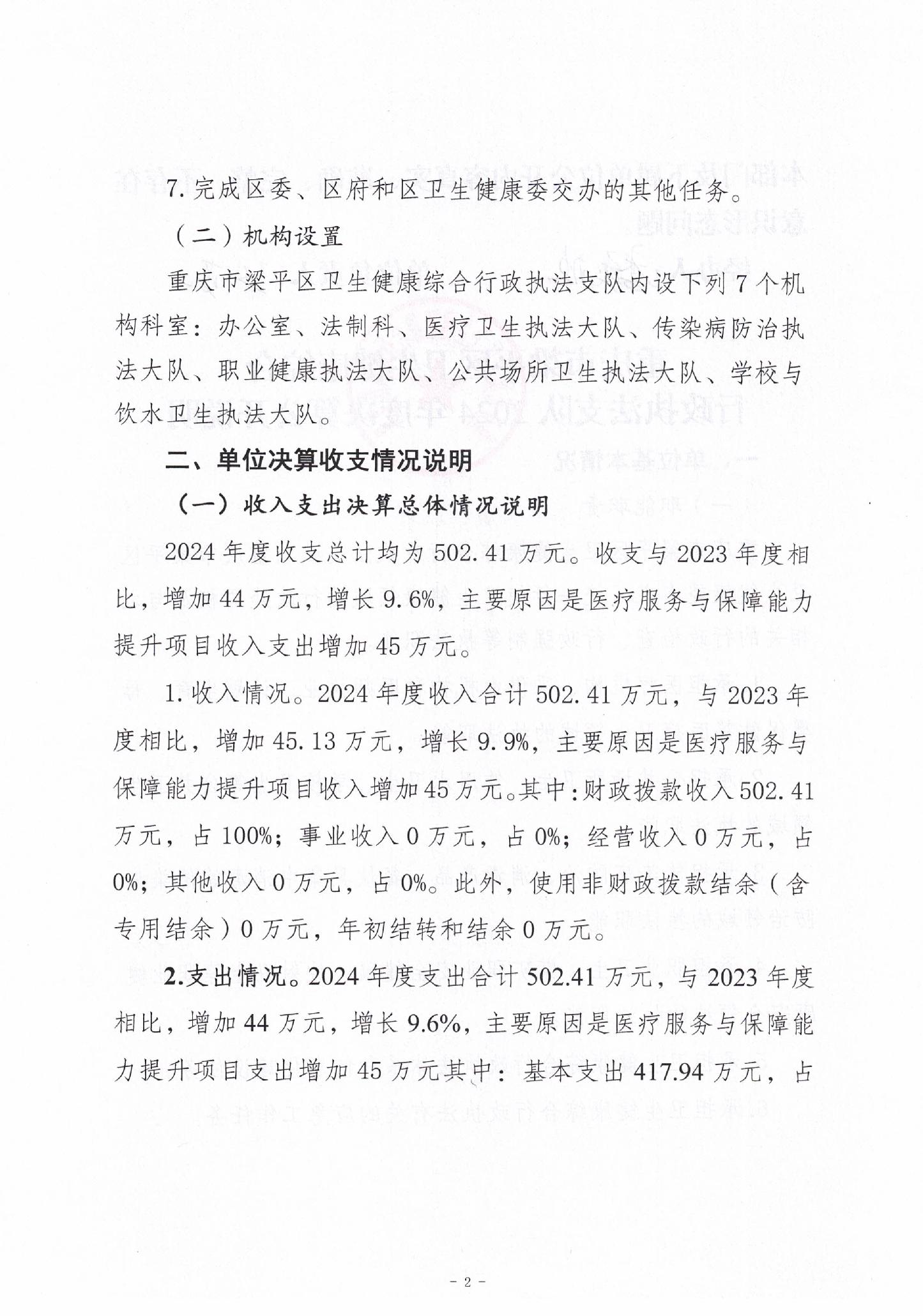 标题 | 重庆市梁平区卫生健康综合行政执法支队2024年度决算公开说明 |