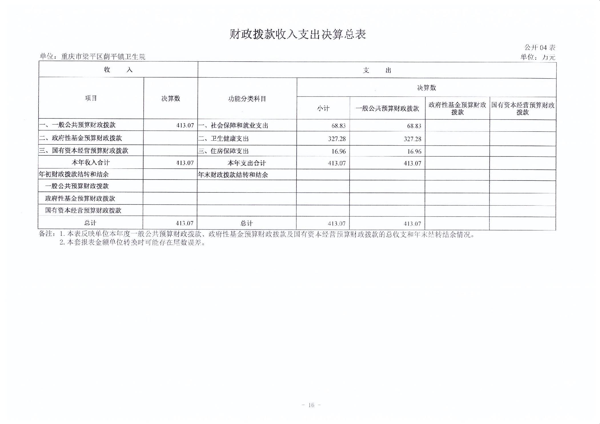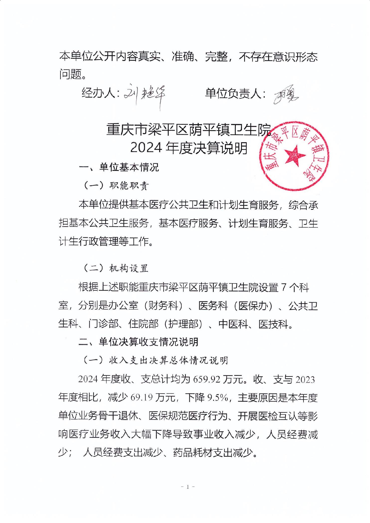 标题 | 重庆市梁平区荫平镇卫生院2024年度决算公开说明 |