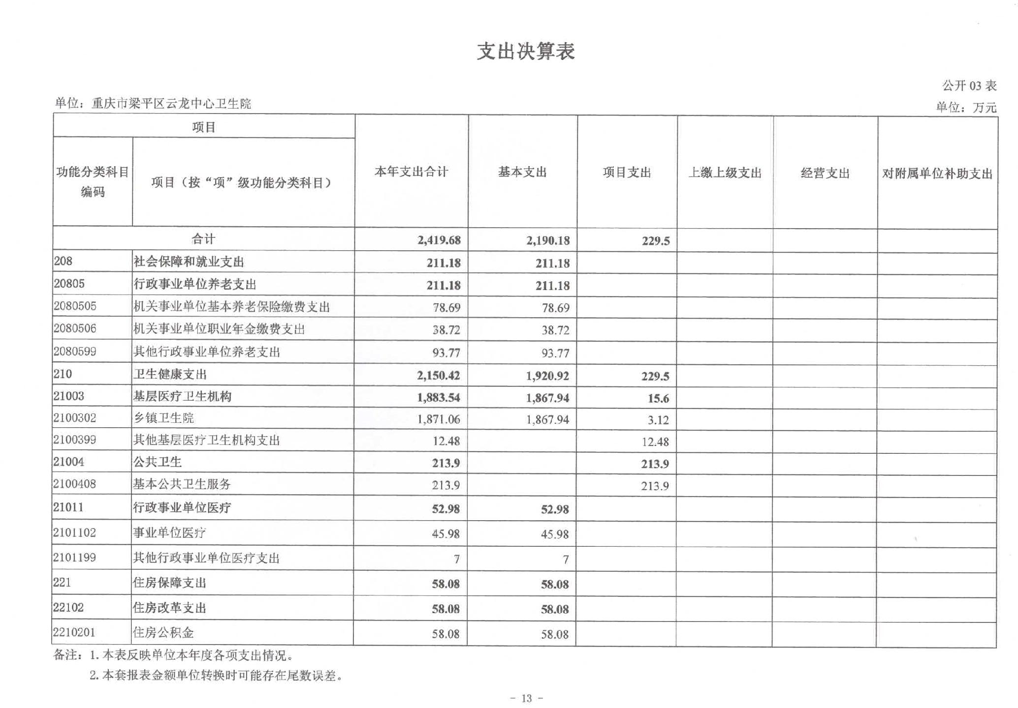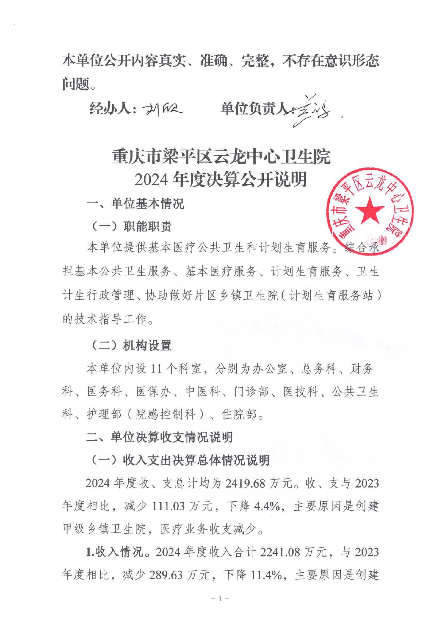 标题 | 重庆市梁平区云龙中心卫生院2024年度决算公开说明 |