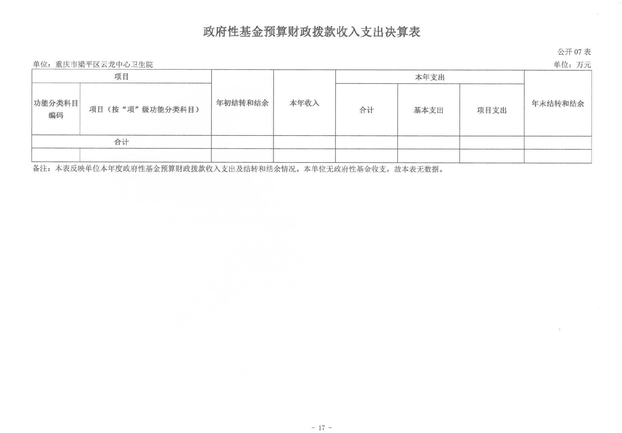 标题 | 重庆市梁平区云龙中心卫生院2024年度决算公开说明 | ||