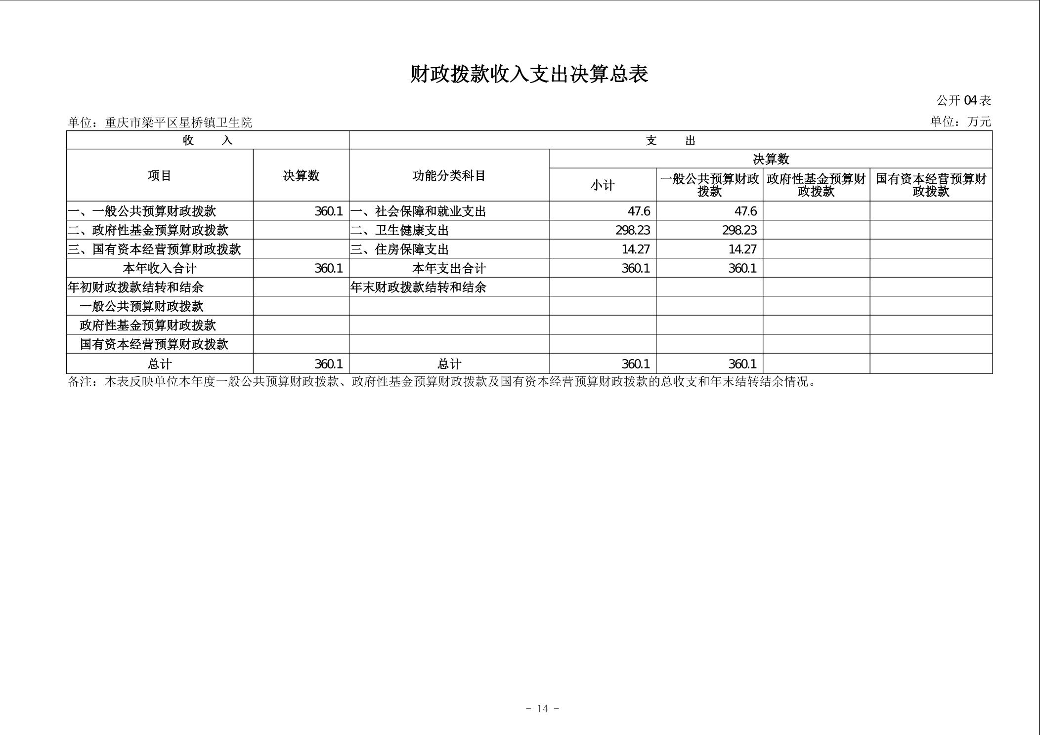 标题 | 重庆市梁平区星桥镇卫生院2024年度决算公开说明 |